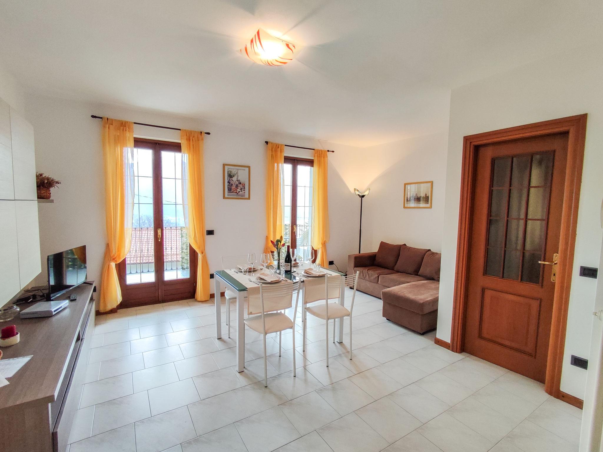 3-room apartment 60 m2 on 1st floor, east facing position. Practical furnishings: living/dining room with dining table and satellite TV. Exit to the balcony. 1 room with 1 french bed (160 cm). 1 room with 2 beds (80 cm). Open kitchen (oven, dishwasher, 4 gas rings, toaster, freezer, electric coffee machine). Bath/WC. Gas heating (extra). Natural stone floors. Balcony. Balcony furniture, deck chairs (2). Marvellous panoramic view of the lake, the mountains and the valley. Facilities: washing machine, iron, children's high chair, baby cot for up to 2 year olds. Internet (WiFi, free). Please note: maximum 1 pet/ dog allowed. Private entrance. IT013218C2OB5G3HRZ