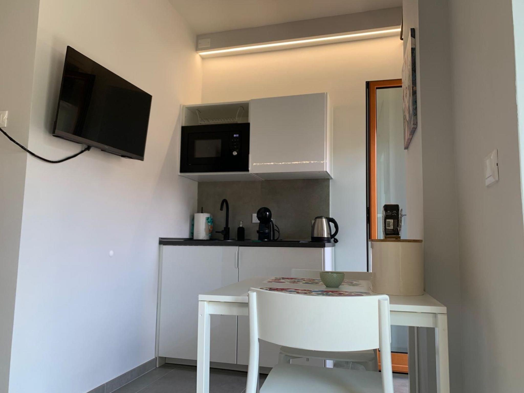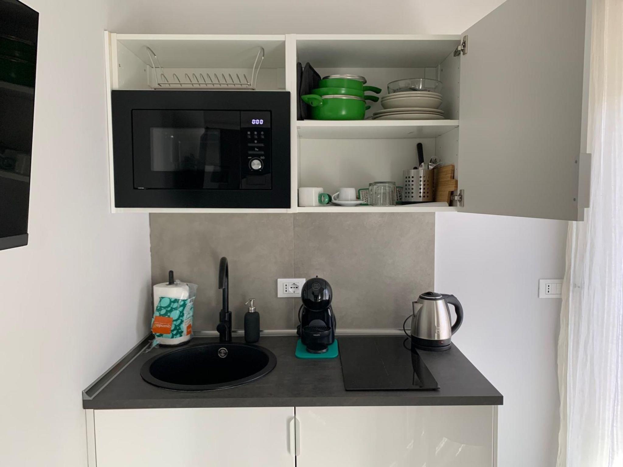 The modern accommodation at Residence Armonia is designed with our guests' needs in mind. With essential furnishings that perfectly combine wood and aluminium, each space is designed to blend in with its surroundings. The flats offer a dining area, a kitchenette complete with induction hob, microwave oven, fridge with freezer, coffee pod machine, kettle and various utensils. You can relax in the comfort of your double room, equipped with a wardrobe, bedside tables, flat-screen TV, desk, private bathroom, bed linen and towels, as well as enjoy modern conveniences such as underfloor heating, air conditioning and free WiFi.