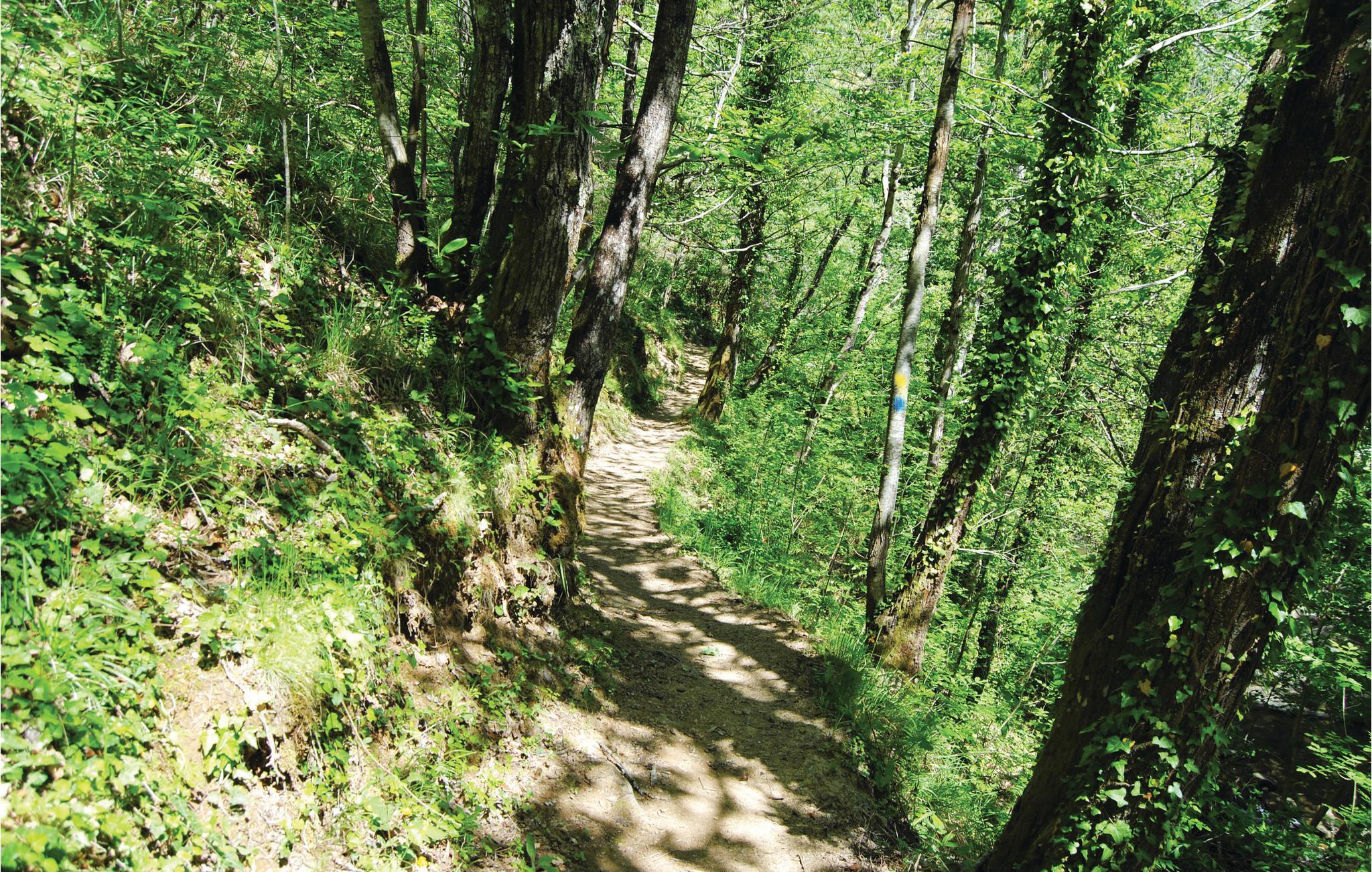 Bemærk: Skovvejen er ikke asfalteret, men brostensbelagt og skrånende med visse fald. Den er ikke egnet til lave biler, autocampere og motorcykler.