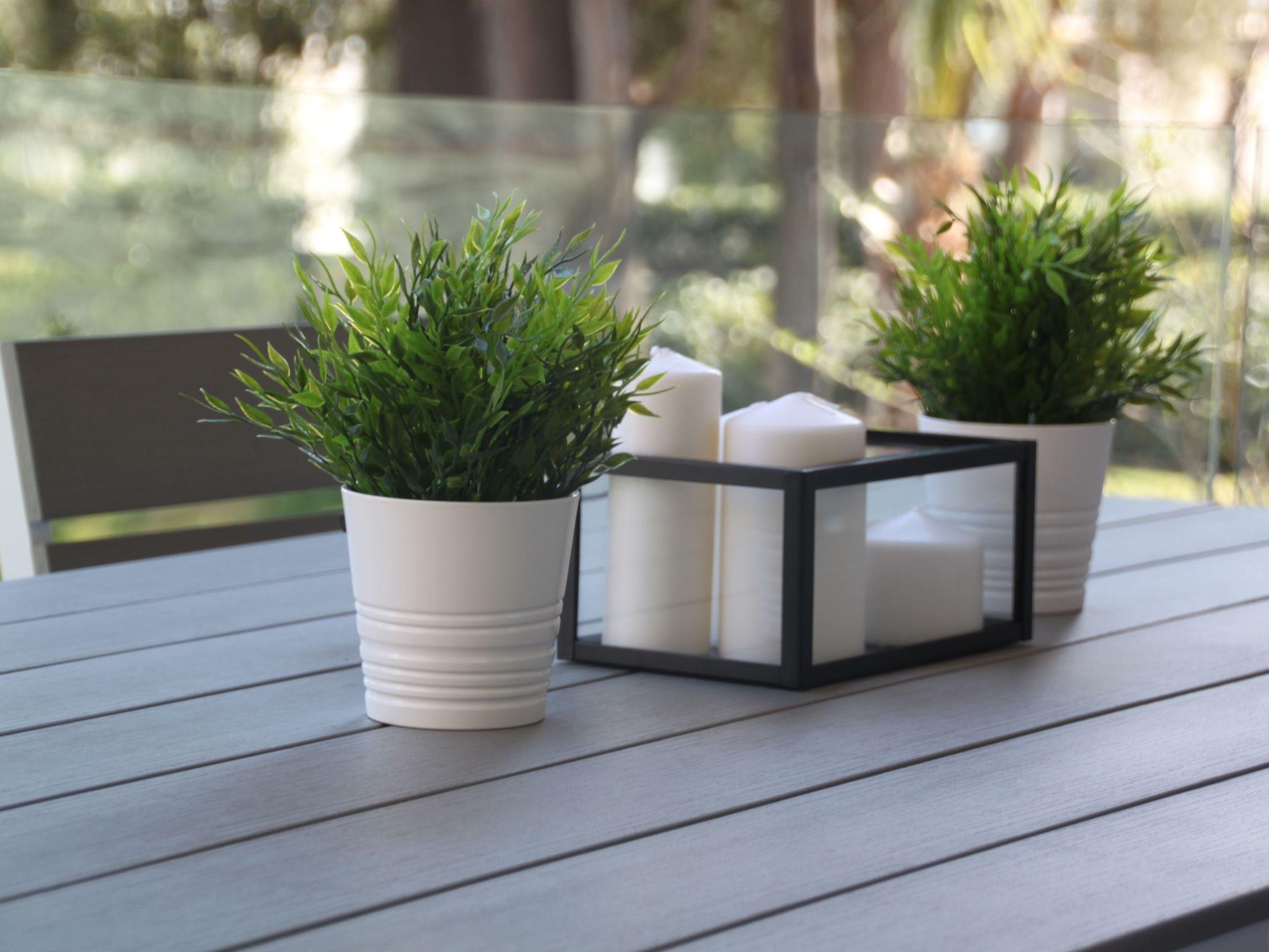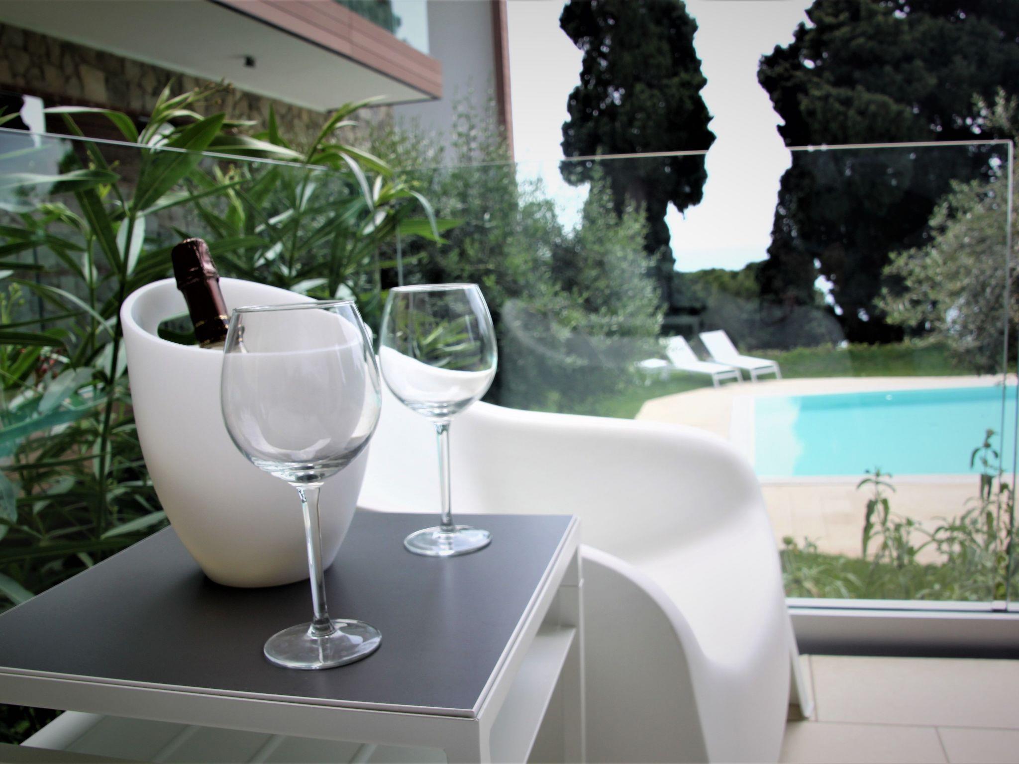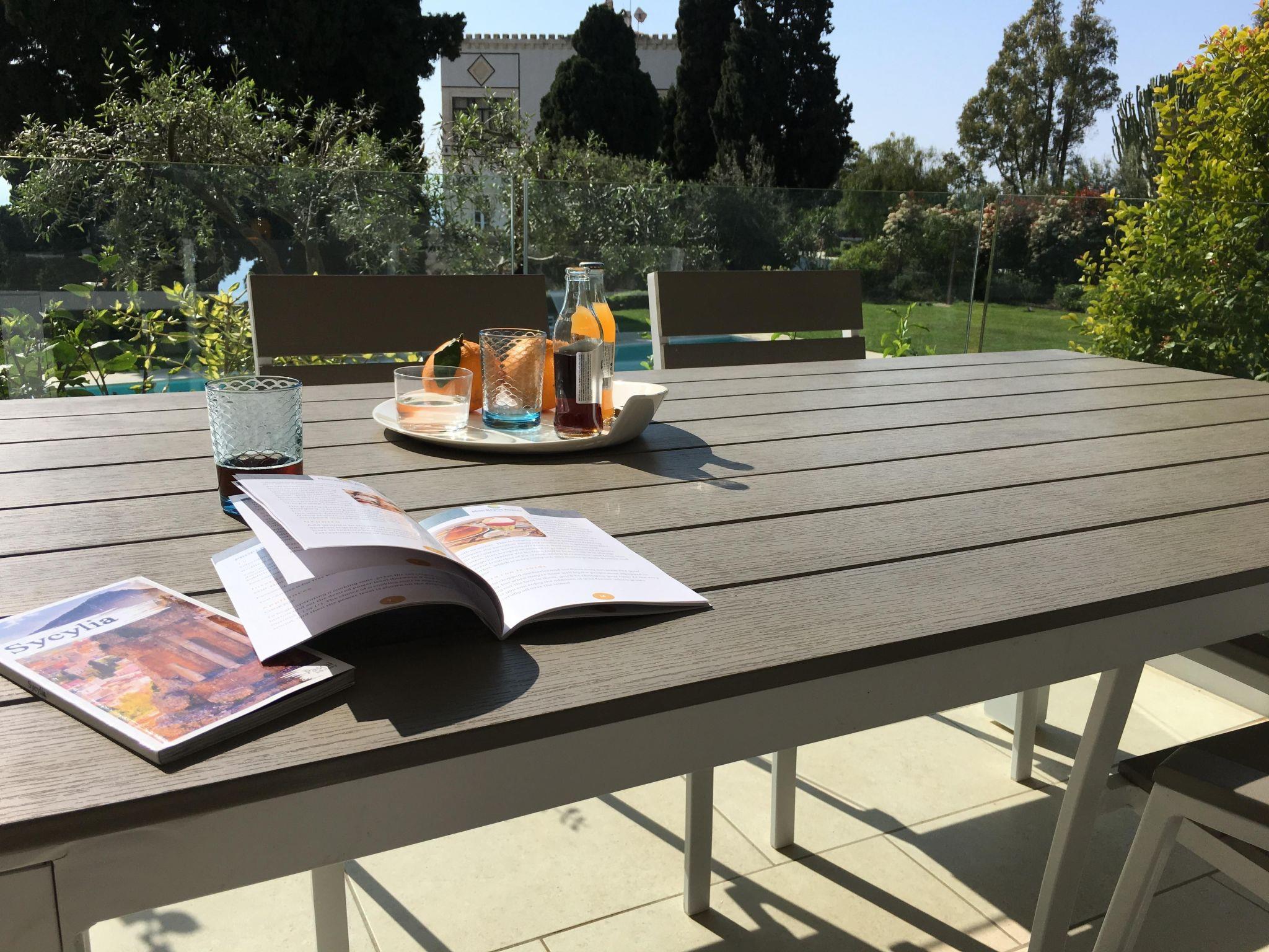 Terrace furnished with table and garden furniture. Private parking is available on site.