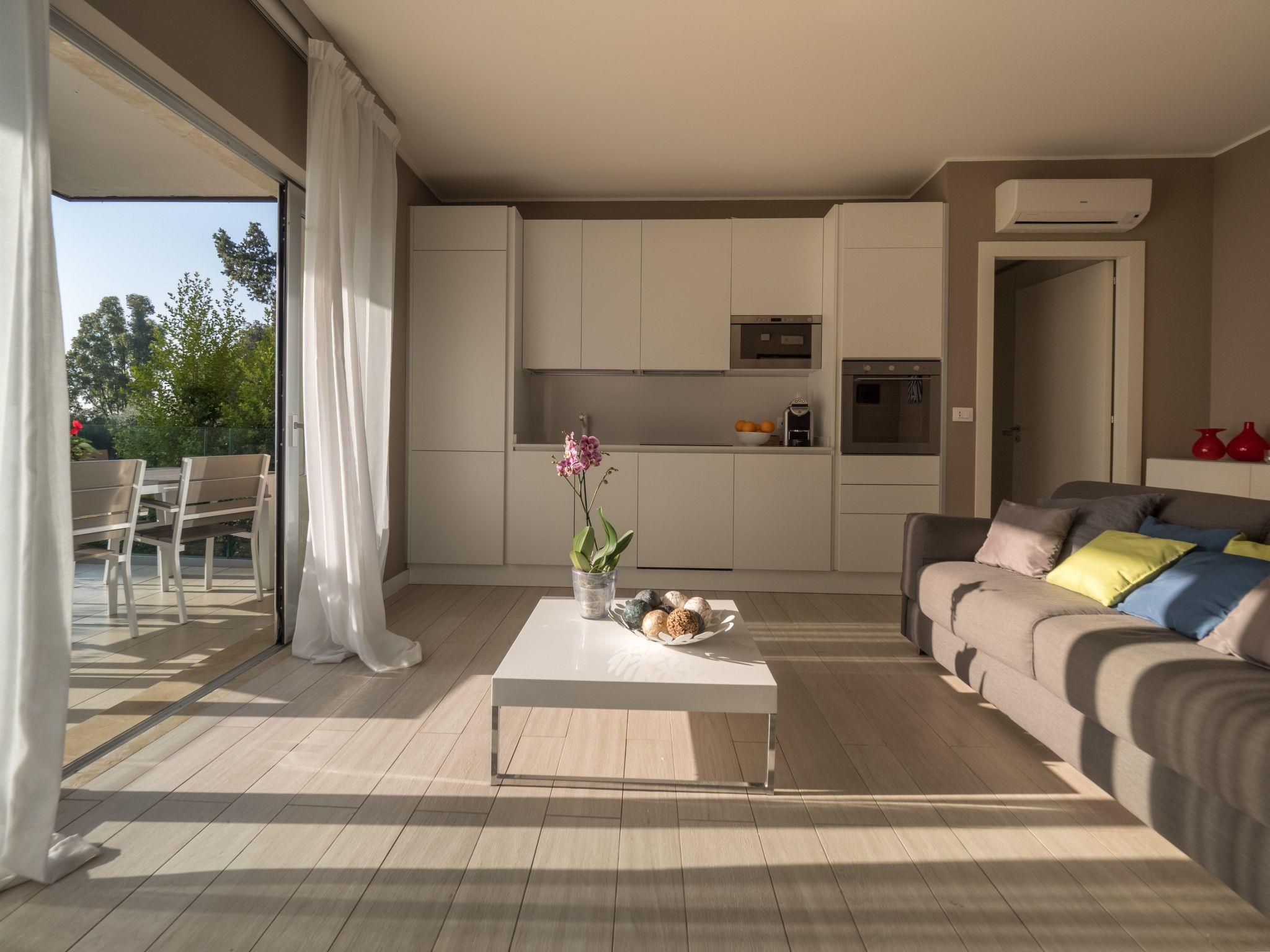 You will find a living room with a double sofa bed, a fully equipped open kitchen (dishwasher, traditional oven, microwave, Nespresso coffee machine and kettle) and a large, comfortable bathroom with shower, washbasin and WC. Free services such as full Wi-Fi coverage, towels and bed linen are provided.