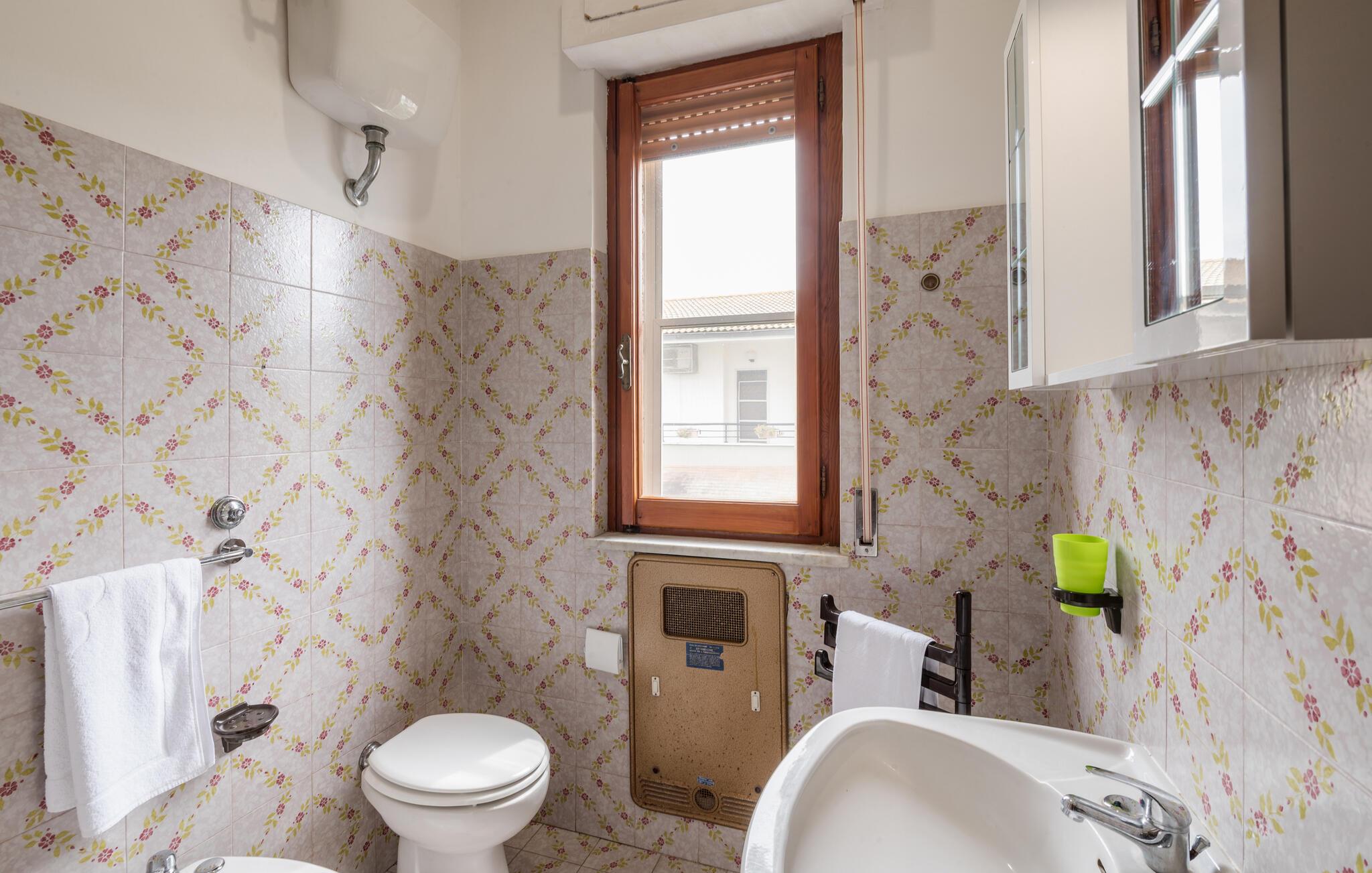 Kun 300 m væk er der et afsnit af stranden hvor hunden må tages med. Der er ca. 7,6 km til Tarquinia med etruskiske museer. Der er ca. tre km til banegården, hvorfra det kun tager 45 min at køre til Rom (100 km). Huset er fordelt på to etager, alle soveværelser på første sal har myggenet for vinduerne.