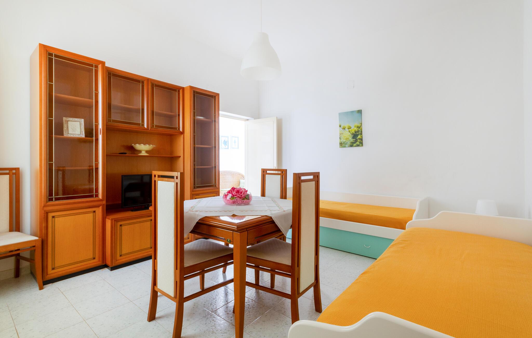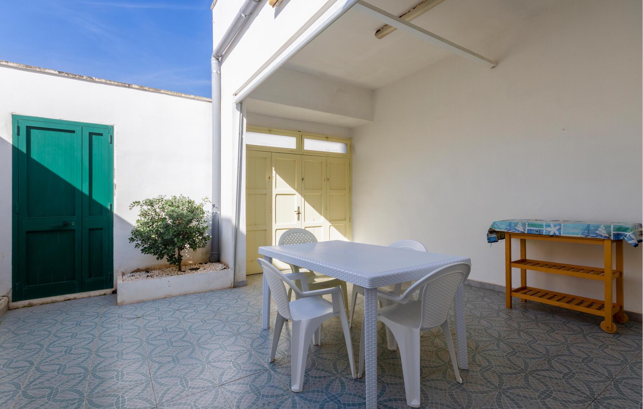 I bor i et dejligt område i Taviano, der bare venter på at blive opdaget. Stranden er kun få minutters gang væk, så fyld dagene op med friske dukkerter og gåture langs vandet. Spadsér gennem de charmerende gader i byen, bestil bord på en restaurant og nyd den rolige atmosfære, der hersker her.