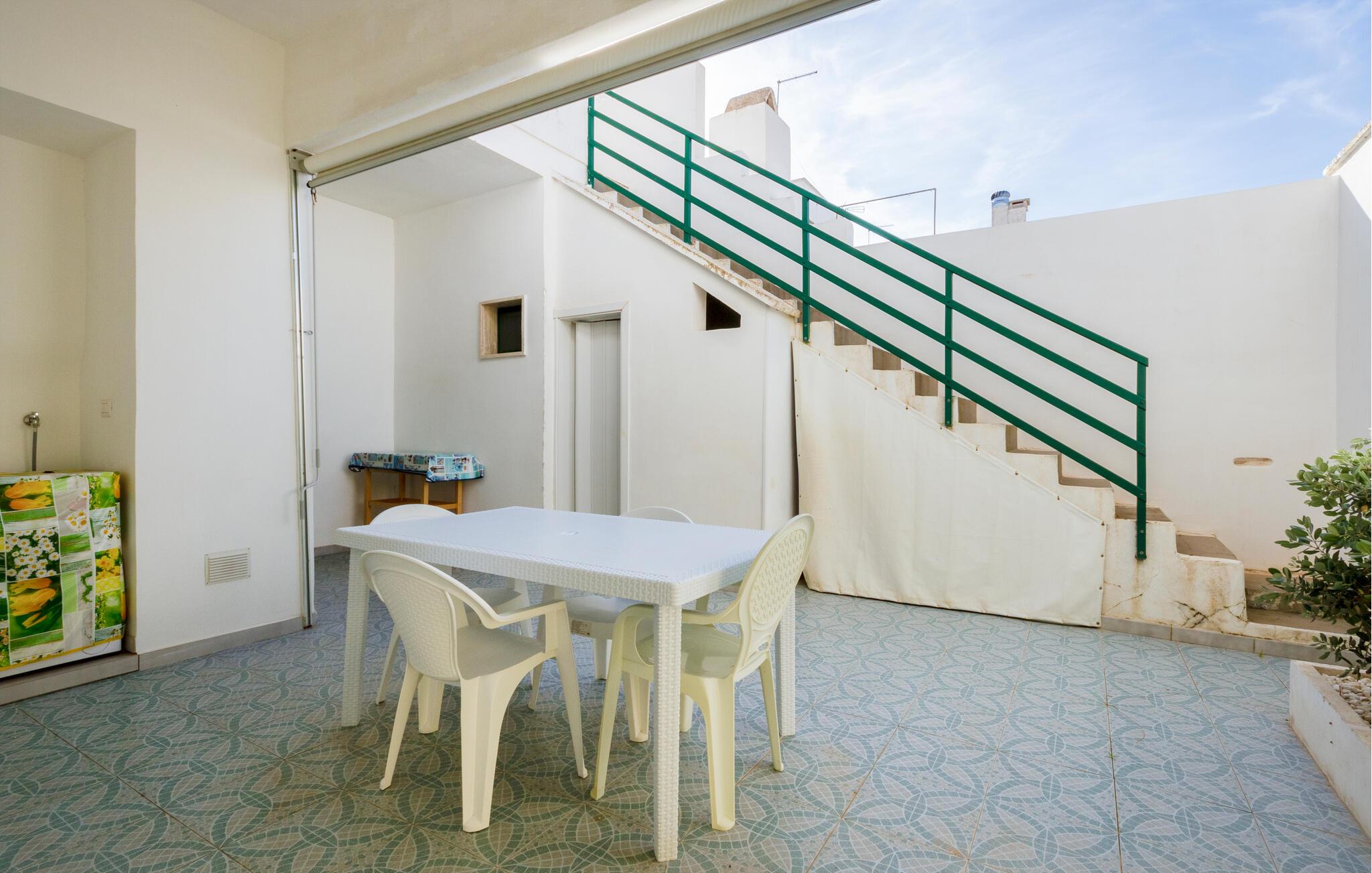 Velkommen til dette skønne hus, der ligger i Marina di Mancaversa tæt på Taviano med en malerisk udsigt over byens tage ud til havet. Huset er pænt indrettet med maritim kunst på væggene, velholdte flisegulve og gode faciliteter, der gør det nemt for jer at slappe af og hygge før og efter dagens udflugter. Begynd dagen med at tilberede en lækker morgenmad i køkkenet og nyd den på terrassen i solens første stråler, mens I lægger planer for de kommende dage.