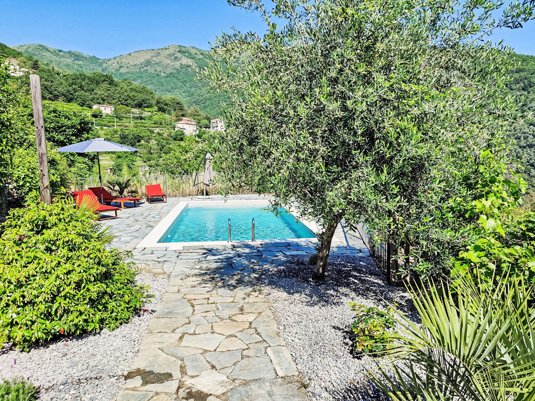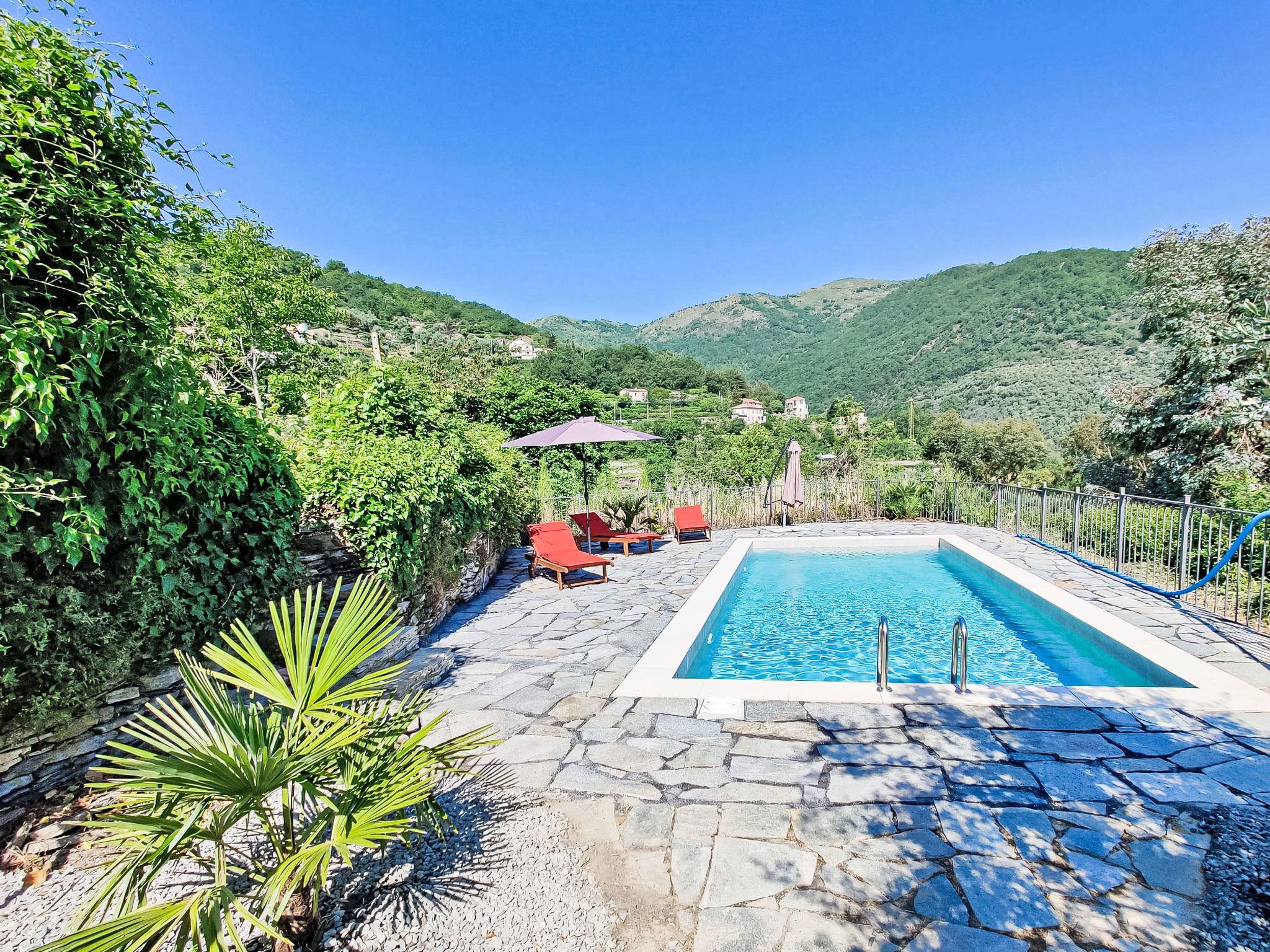 Comfortable cottage "Casa Oreggi", 2 storeys, renovated. 14 km from the centre of Imperia, 200 m from the centre of Tavole, 8 km from the centre of Dolcedo, in a quiet, sunny position on top of a hill, in the residential district, 15 km from the sea. For shared use: well-kept garden, swimming pool secured, fenced (8 x 4 m, seasonal availability: 01.Apr. - 31.Oct.). Outdoor shower. In the house: roof terrace, washing machine (for shared use). Parking (for 2 cars) on the premises. Grocery 5 km, supermarket 14 km, restaurant 200 m, bar 300 m, café 200 m, bicycle rental 14 km, bus stop 200 m, railway station "Imperia Oneglia" 20 km, sandy beach 14 km pebble beach 14 km, bathing lake "laghetti di Tavole" 2 km. Walking paths from the house 10 m, cycle lane 14 km, children's playground 4 km. Nearby attractions: Dorf Valloria(160 bemalte Türen) 3 km, Porto Maurizio Altstadt Parasio 15 km, Lavendeldestilation in Pantasina 10 km. Hiking paths: Monte Faudo (1149 m) Mountainbike Trails 15 km, Laghetti di Lecchiore (Wanderweg) 10 km, Kapellen Wanderung ab Haus. Please note: car recommended.