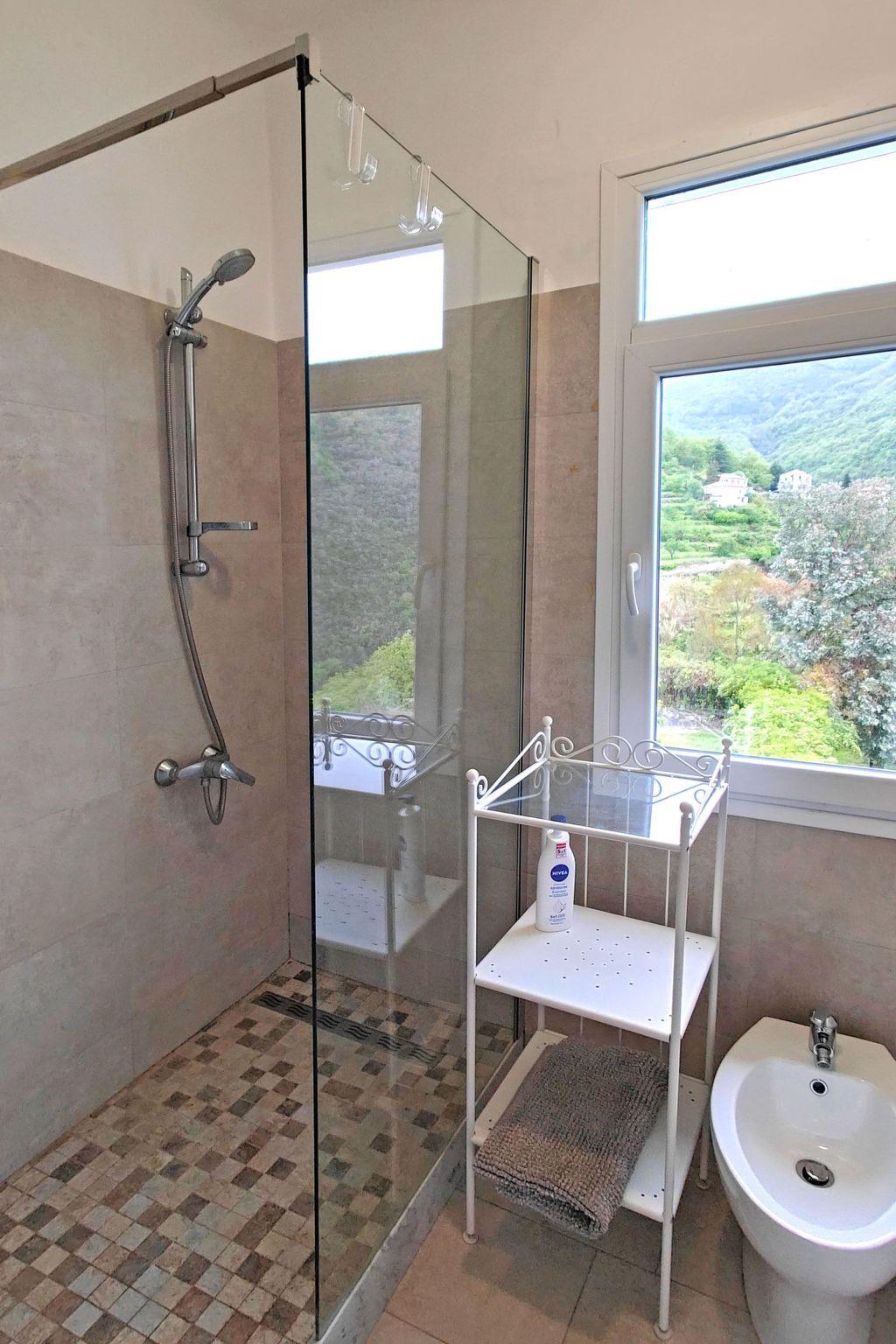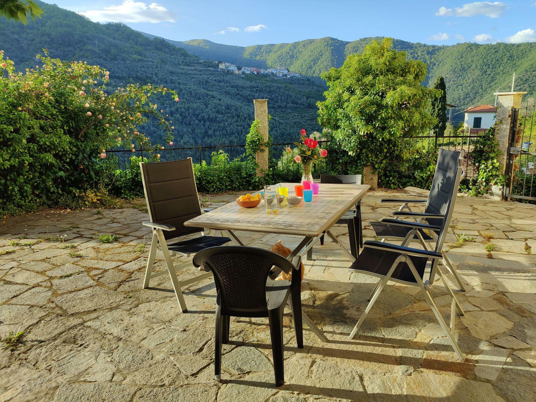 Casa Amica has recently been extensively renovated and now offers a beautiful setting for a relaxing holiday in Liguria for 2-5 people with its three bedrooms, bright and airy living room and eat-in kitchen with pellet stove. The house also has a bright bathroom with shower, a separate WC and a second solar shower on the upper floor. The furnishings are modern and emphasise the original character of this 18th century village house. The original flooring on the upper floor is particularly beautiful with its pattern typical of the period.