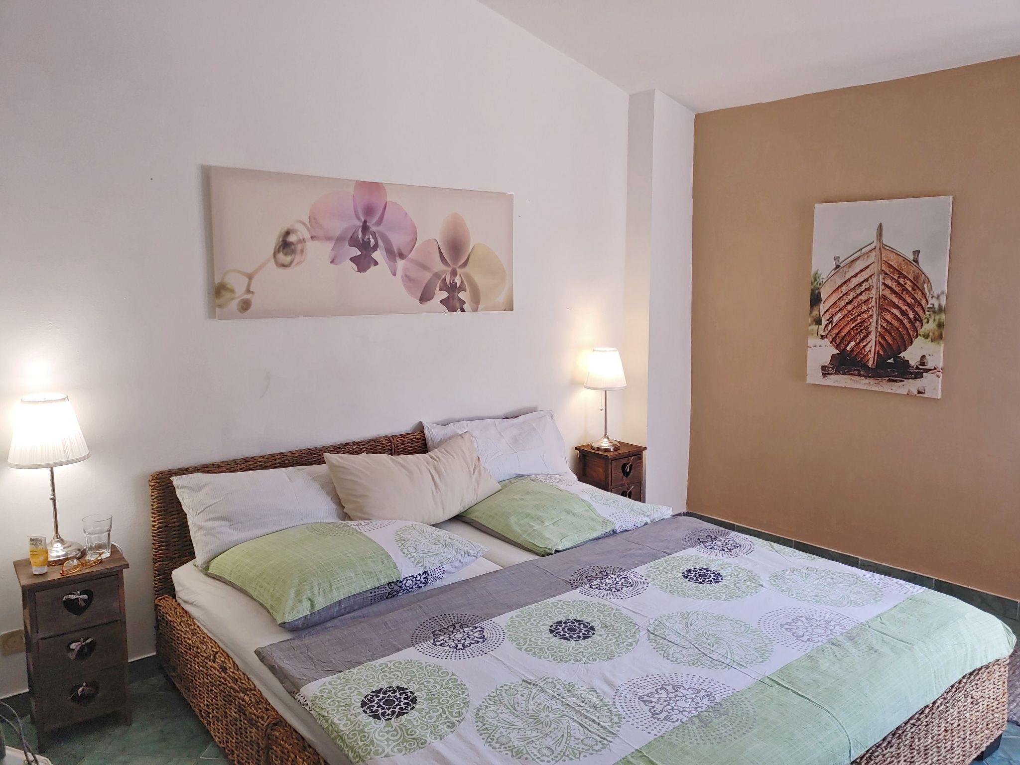 Tavole is a charming Ligurian village with a lot of tradition. Casa Oreggi is located in a village street, in the neighbourhood there are other private houses and gardens. The location is quiet, no car traffic within earshot. There is a very good restaurant in the village, the nearest shops, post office etc. are in Molino di Prela, 5 minutes away. You can reach the house either via a narrow road below the house and then drive directly onto the property. Or you can park at the beginning of the road and walk the rest (approx. 100 metres). There are many beautiful walks nearby, including to idyllic swimming pools, which can be reached on foot in 15 minutes.
