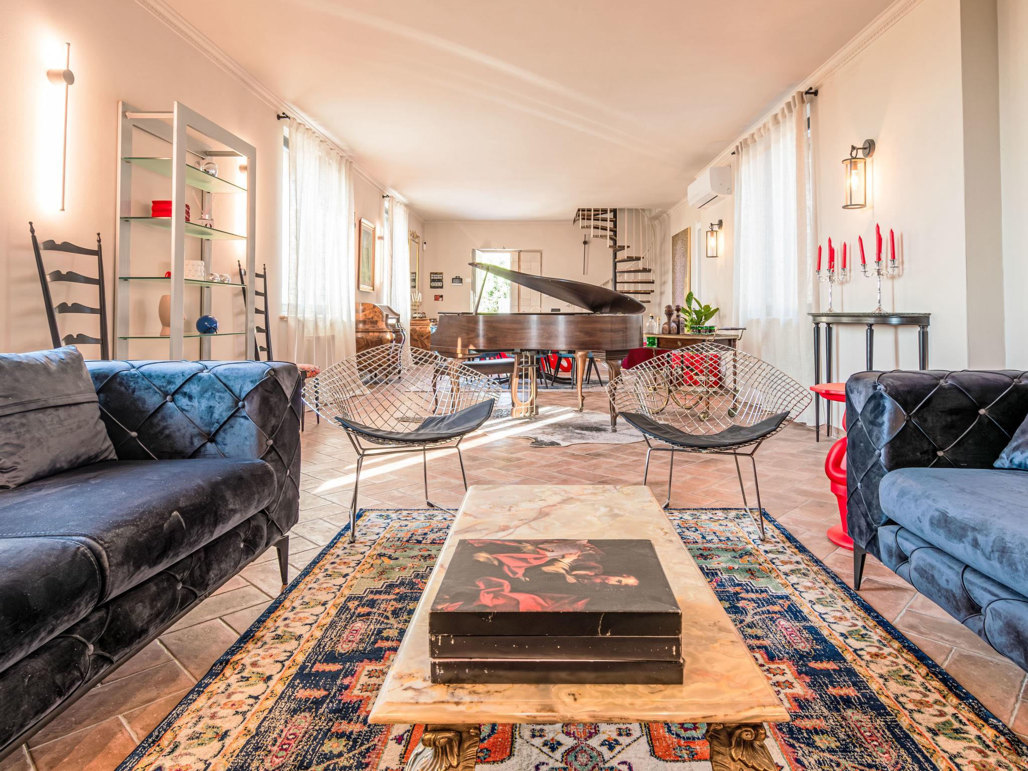 12-room villa 600 m2 on 3 levels. Modern and stylish furnishings: billiard room with open-hearth fireplace, TV and flat screen. Exit to the garden. 1 children's room with 4 beds and shower/bidet/WC. 1 double bedroom with shower/bidet/WC. 1 room with 1 x 2 bunk beds, 1 double bed and shower/bidet/WC. 1 children's room with shower/bidet/WC. Kitchen (4 hot plates, oven, dishwasher, microwave, electric coffee machine) with dining table. Upper floor: living room with open-hearth fireplace. Exit to the garden, to the veranda, to the swimming pool. 1 double bedroom with shower/bidet/WC. 1 large double bedroom. 1 room with 2 beds. 1 double bedroom with shower/bidet/WC. Kitchen (4 hot plates, oven, dishwasher, microwave, electric coffee machine) with dining nook. Shower/bidet/WC. Gas heating, air-conditioning. 2nd upper floor: 1 double bedroom. Exit to the terrace. Facilities: washing machine, mosquito net, hair dryer. Internet (WiFi). IT055031B901034211