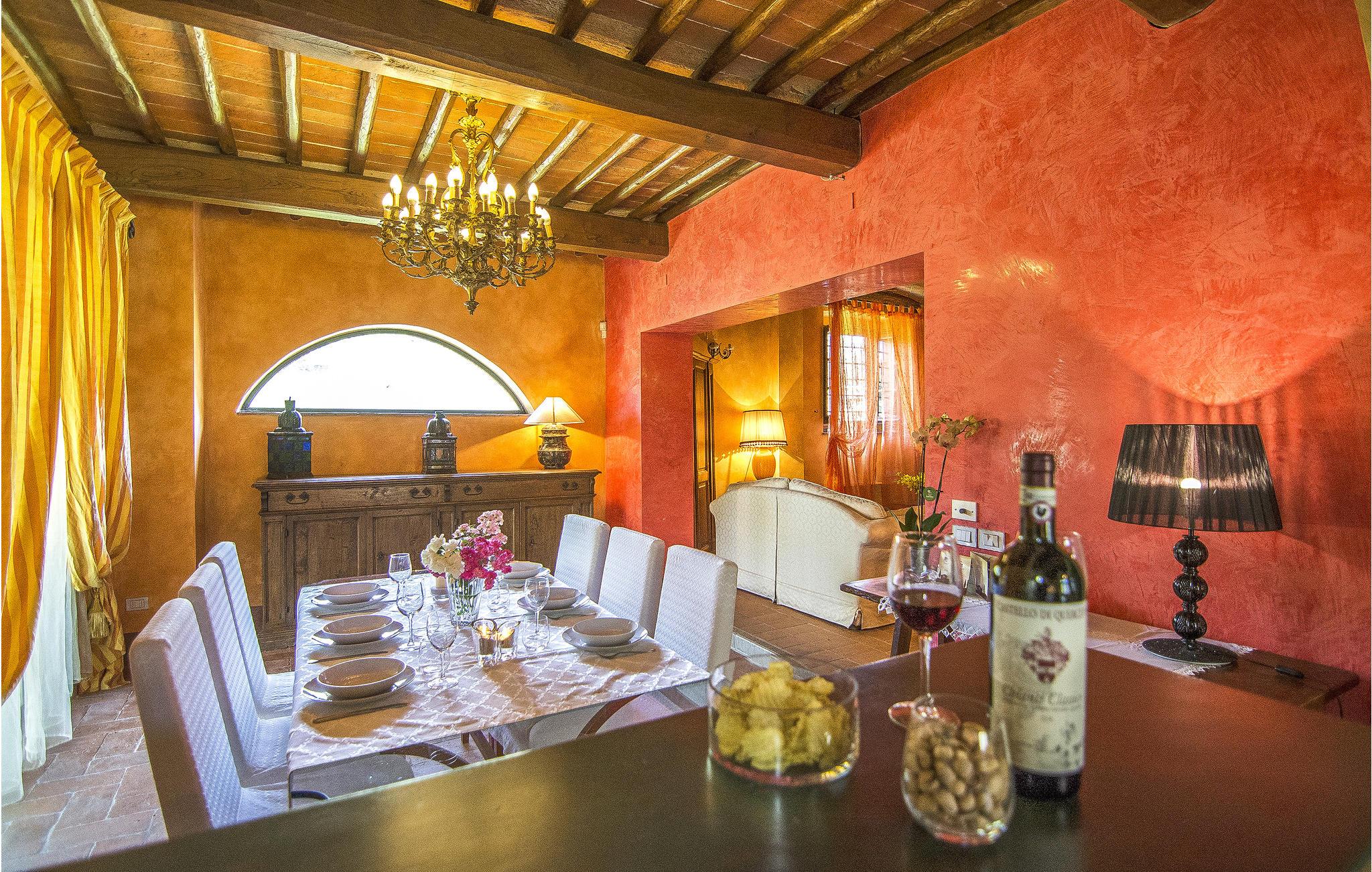 Hold ferie i hjertet af naturparken Bandella på grænsen til Chianti-regionen. Dette gamle landsted består af et hovedhus og et anneks. Ejendommen er omgivet af et indhegnet udendørsareal på 5.000 m², hvor der er en privat pool (indhegnet, dybde 1,40-2,40 m). Dette feriehus er ideelt til familier med børn såvel som en romantisk ferie. Udendørs siddeområde og en møbleret terrasse, som kan tilgås fra stuen. Udflugtstips: Levane (alle slags butikker) 4 km; Montevarchi 9 km, Arezzo 30 km, Firenze 50 km og Siena 50 km. Vaskerum (vaskemaskine og tørretumbler), aircondition i alle værelser undtagen i de to værelser i stueetagen af ??hovedhuset. Privat parkering, børnelegetøj og grill til rådighed. Hovedhuset er fordelt på to etager. I stueetagen: studio-soveværelse med sovesofa, badeværelse med bruser, soveværelse med dobbeltseng, stue med sofaer, pejs, satellit-tv, spisestue med stort bord, køkken. På første sal: Rummelig stue med sofa, pejs, satellit-tv og dobbelt sovesofa, soveværelse med dobbeltseng med en ekstra enkeltseng, badeværelse med bruser, soveværelse med dobbeltseng, badeværelse med bruser og jacuzzi til to personer. Annekset er fordelt over to etager. I stueetagen: åbent køkken (ovn og køleskab), brændeovn, satellit-tv, soveværelse med dobbeltseng, badeværelse med bruser. På første sal (med separat indgang): stue med tekøkken (køleskab, gaskomfur, ovn), satellit-tv, soveværelse med dobbeltseng og badeværelse med bruser.