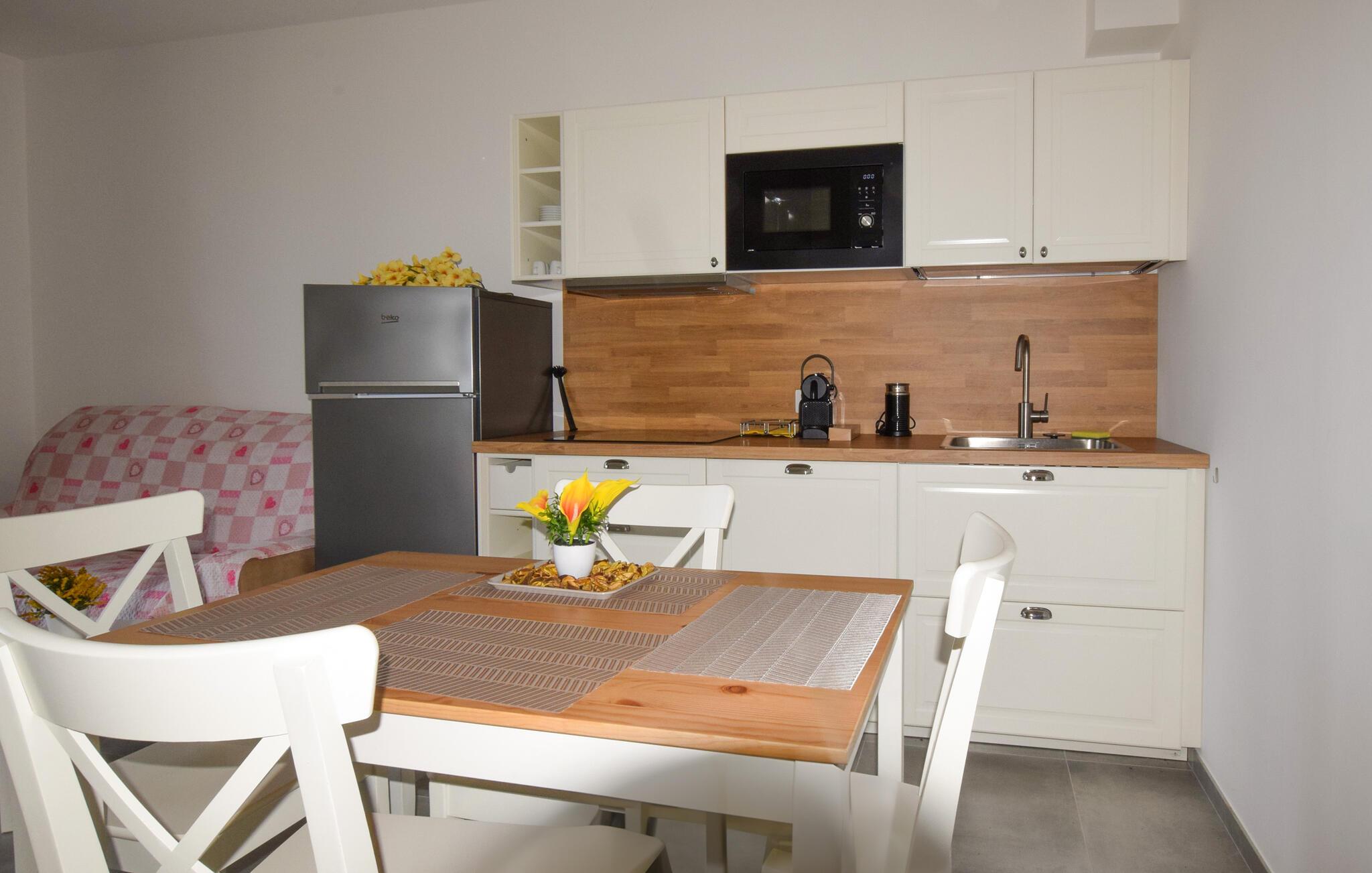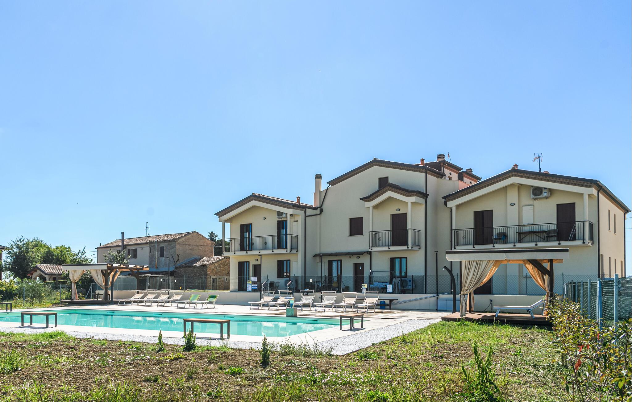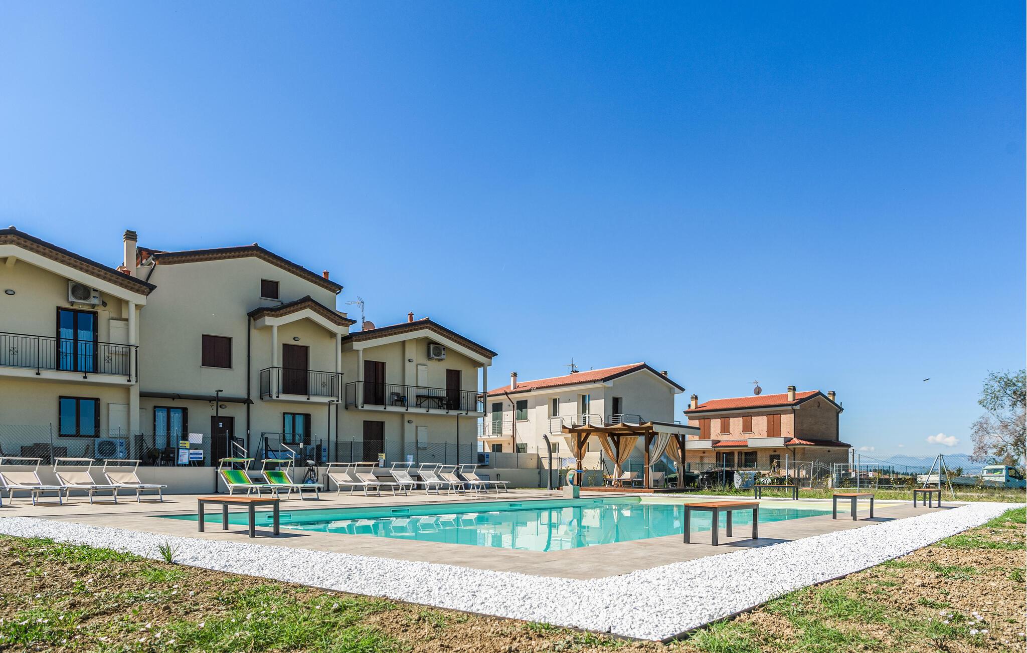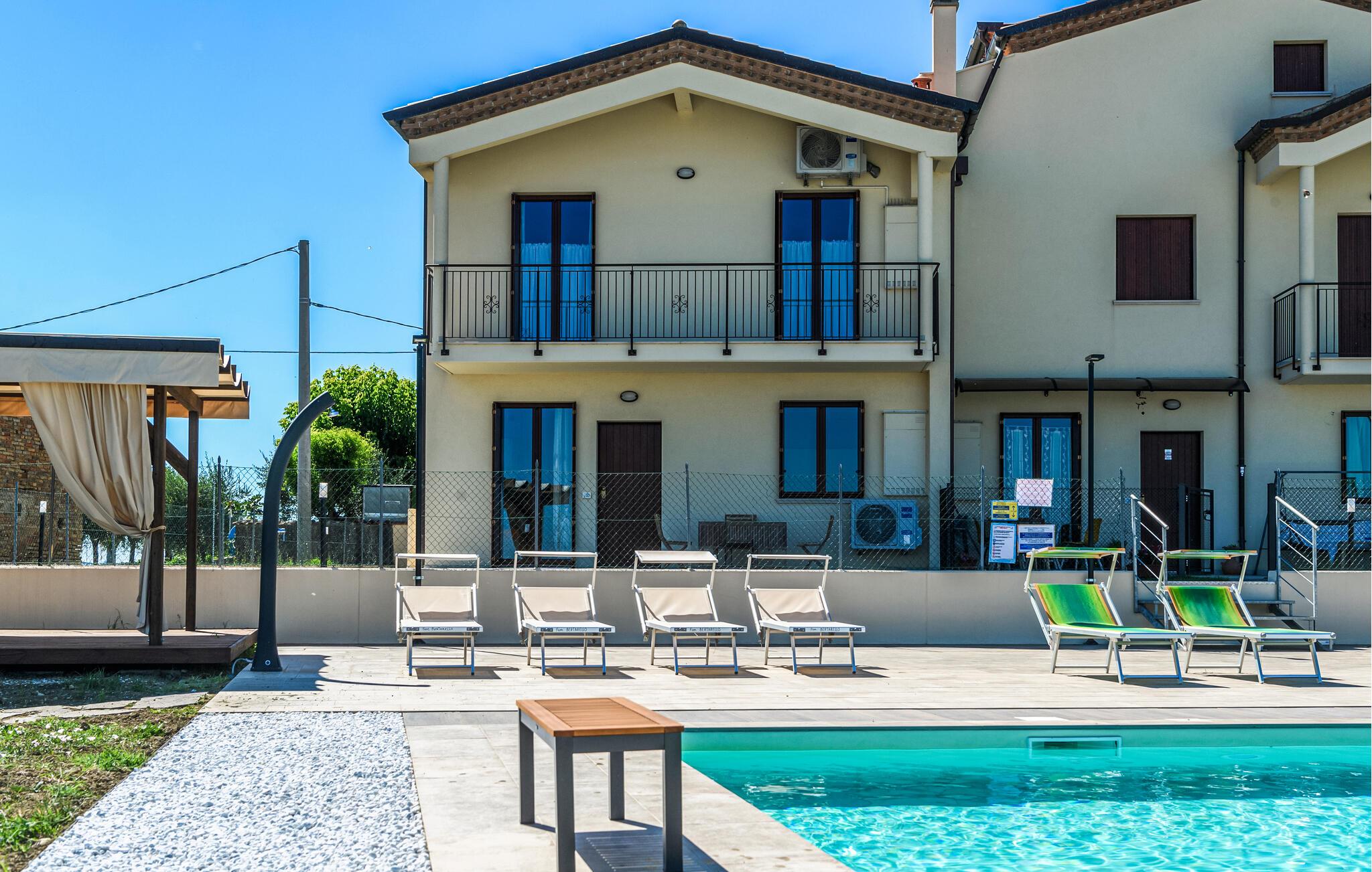 Gør jer klar til et vidunderligt ophold i rolige omgivelser i denne indbydende lejlighed med fælles pool.