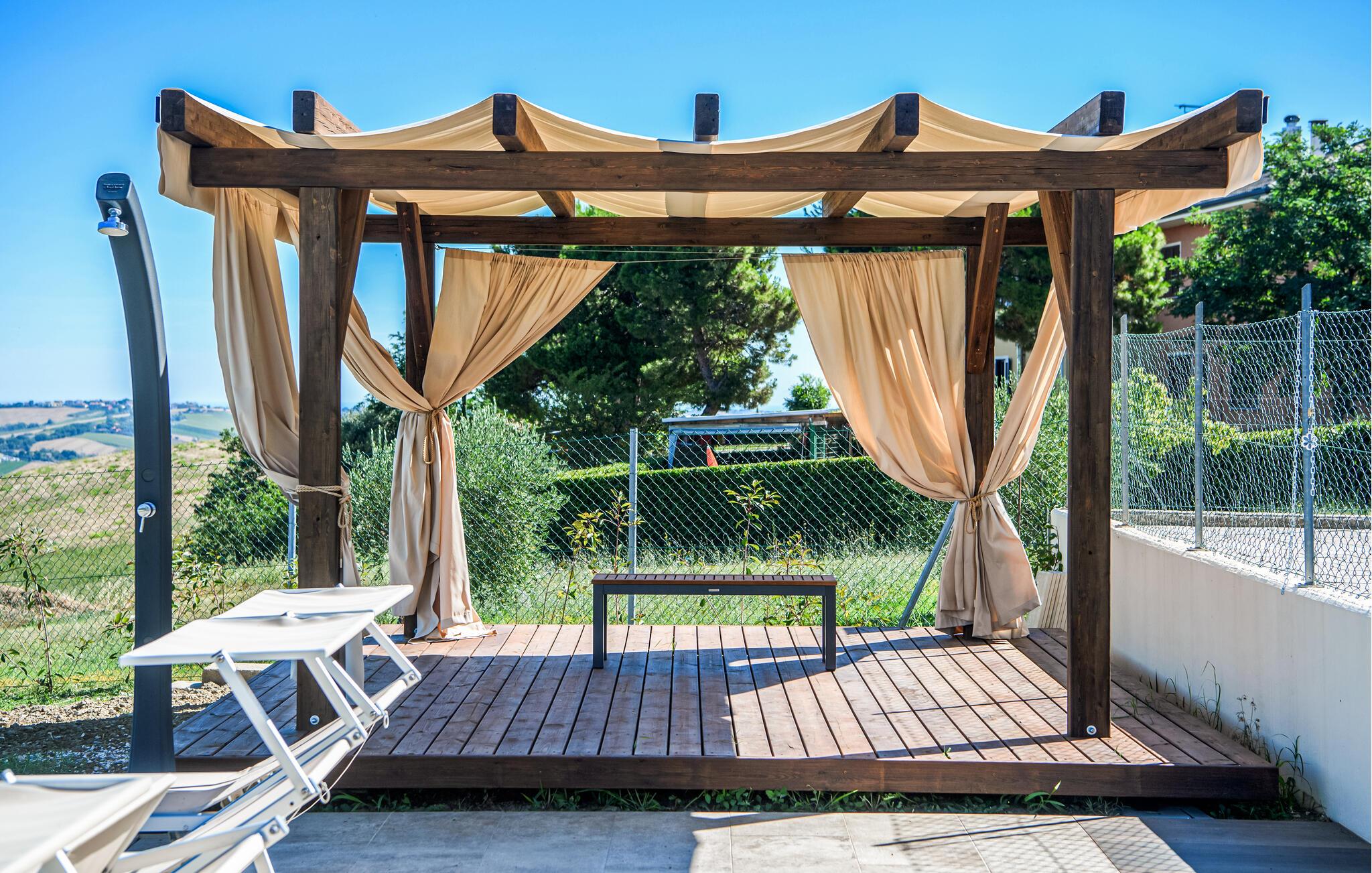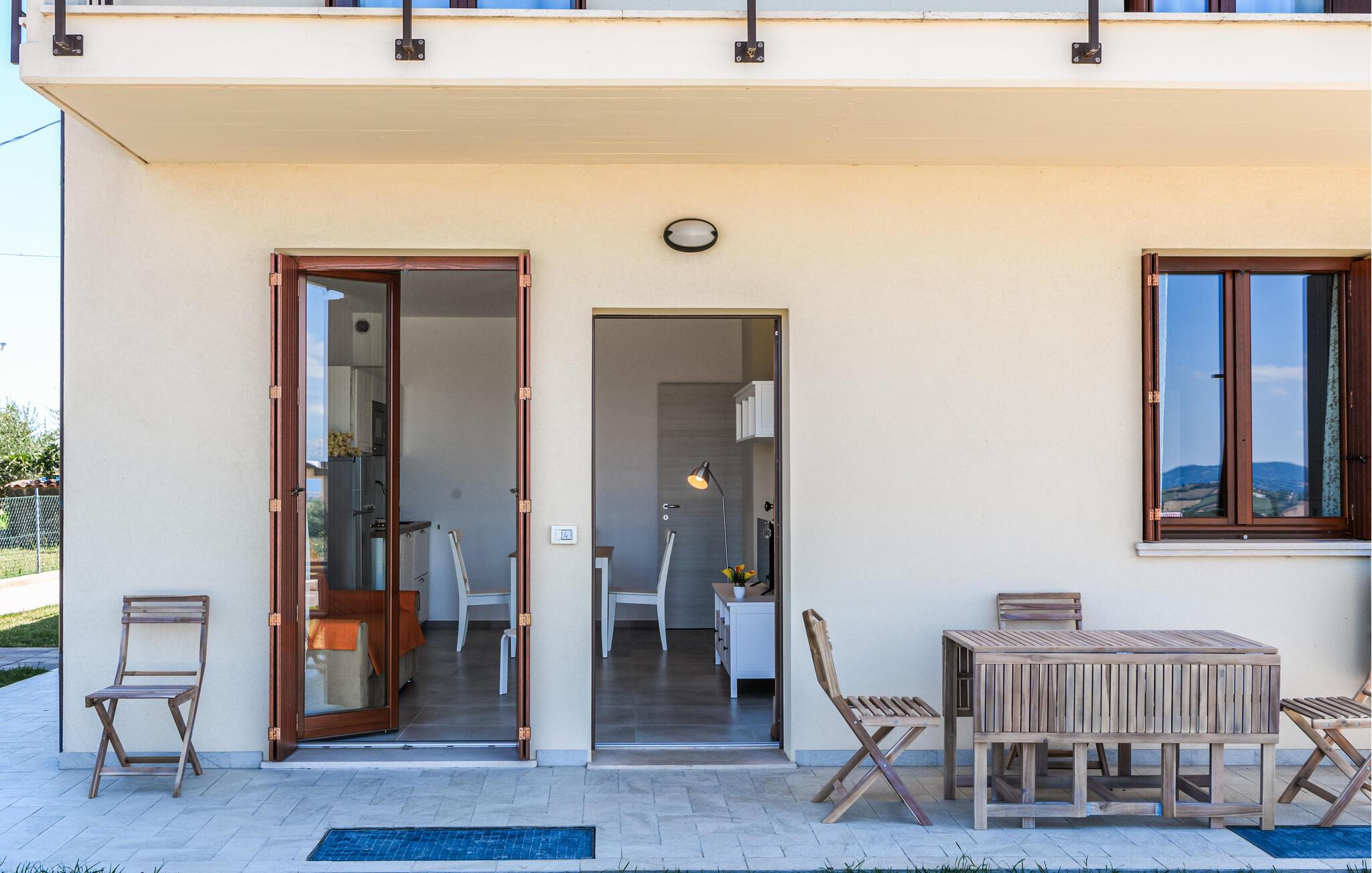 Velkommen til denne komfortable lejlighed, der ligger i et dejligt feriekompleks i Terre Roveresche. Med sin skønne beliggenhed får I her den ideelle base for en afslappende familieferie langt væk fra storbyernes stress og jag. Lejligheden er præget af en lys og moderne indretningsstil, og hjertet er den åbne stue, hvor I kan se frem til mange hyggelige stunder med madlavningen, fællesmåltiderne og brætspilshygge efter en aktiv feriedag.