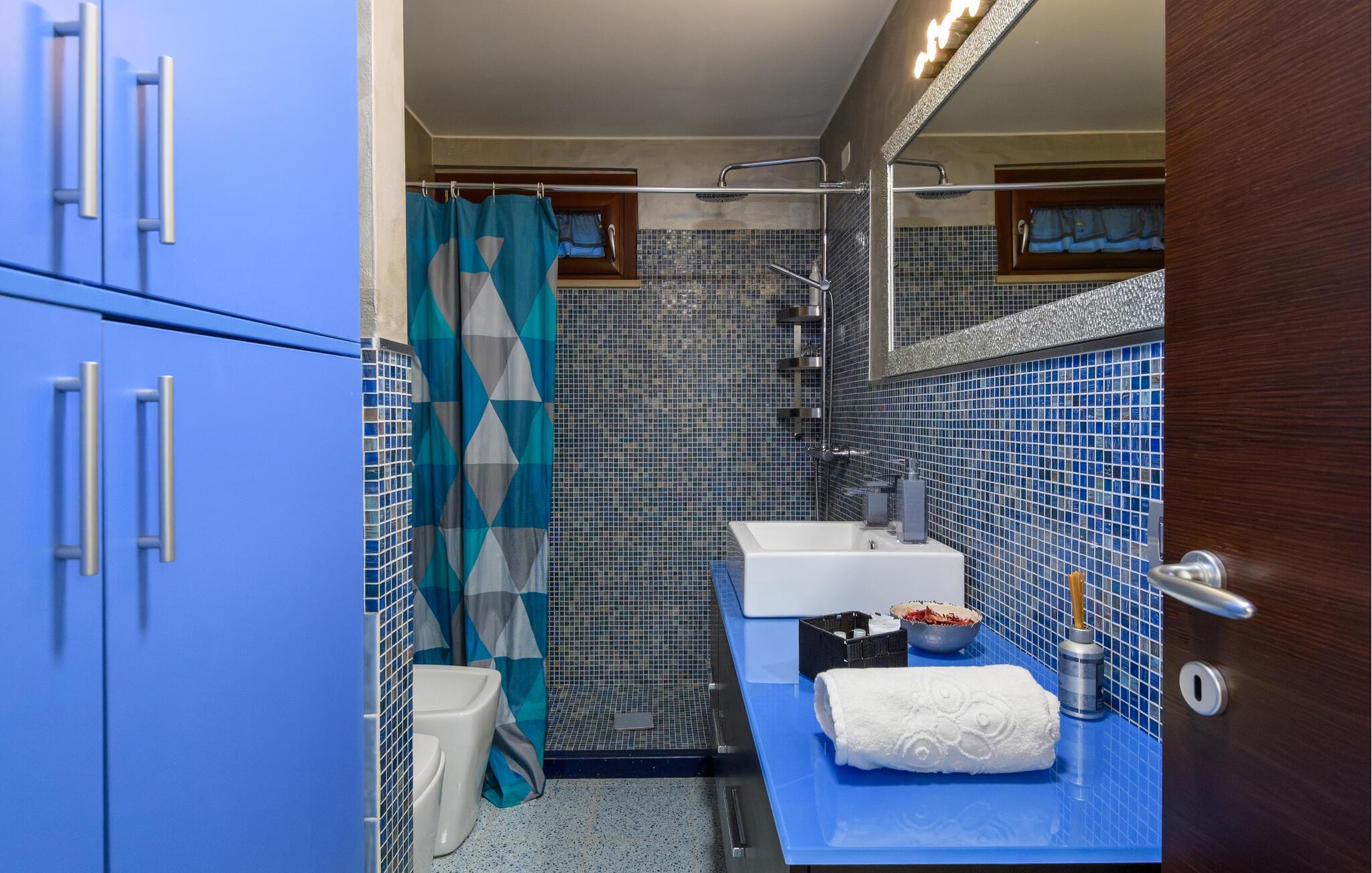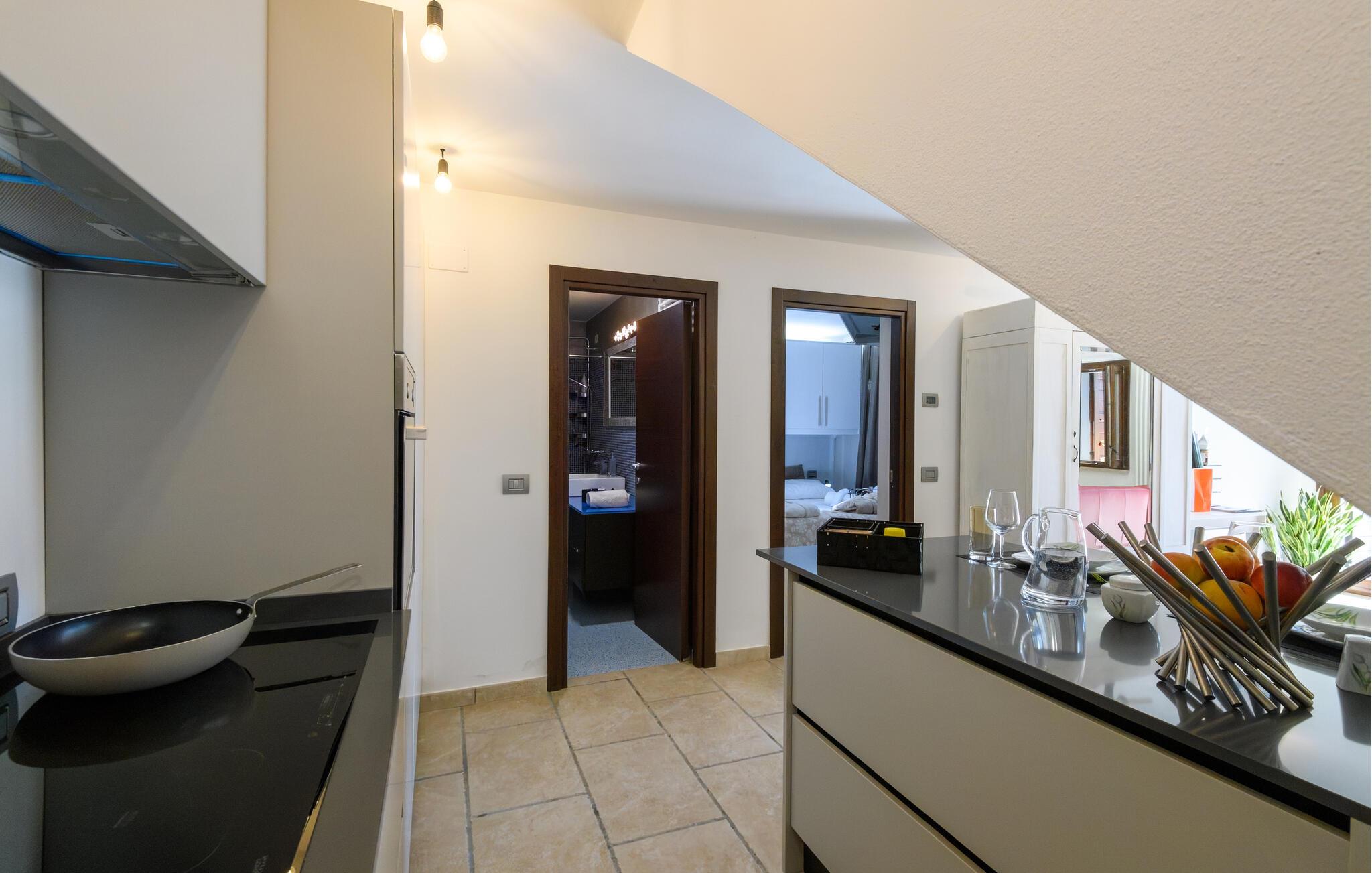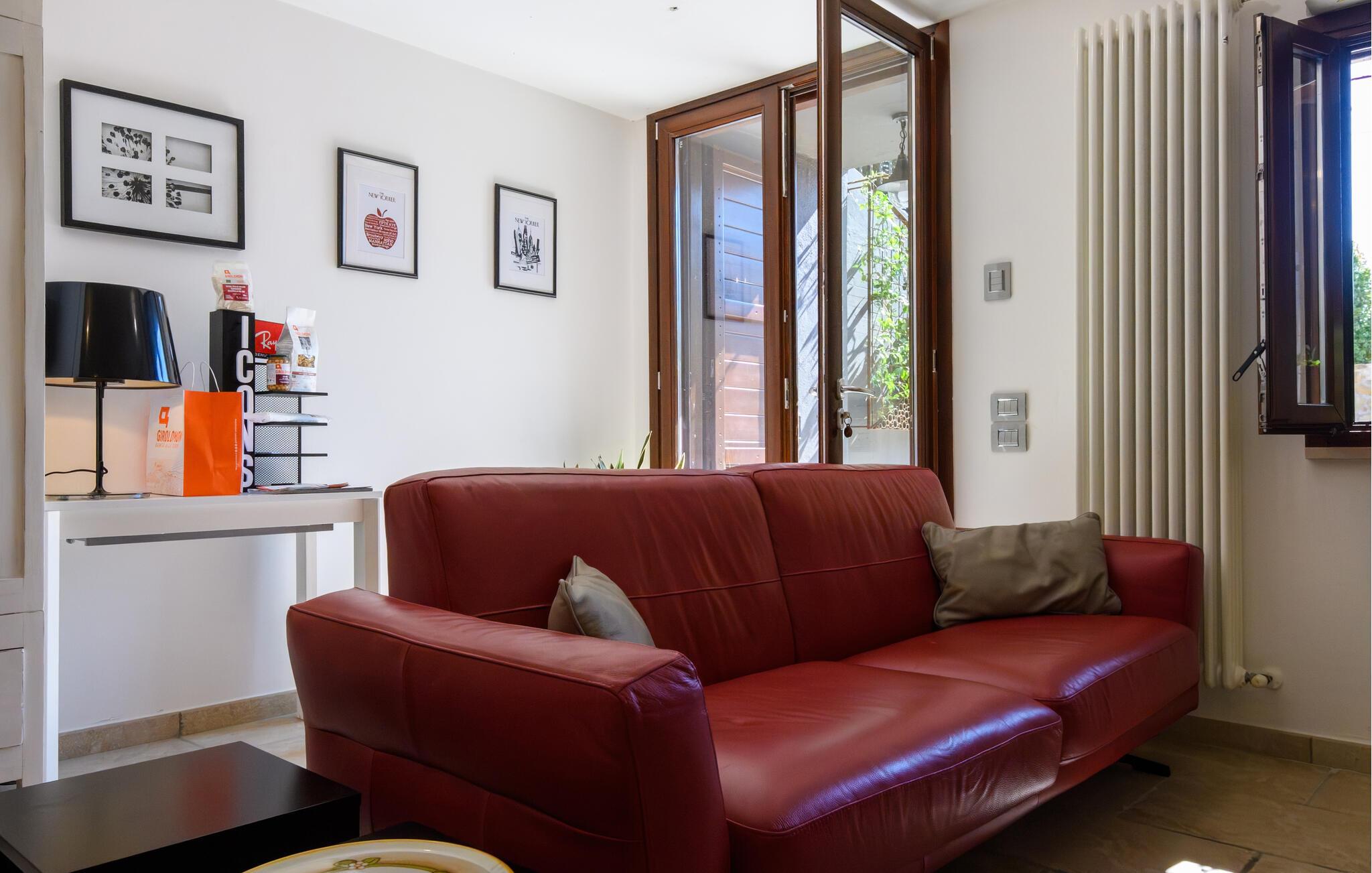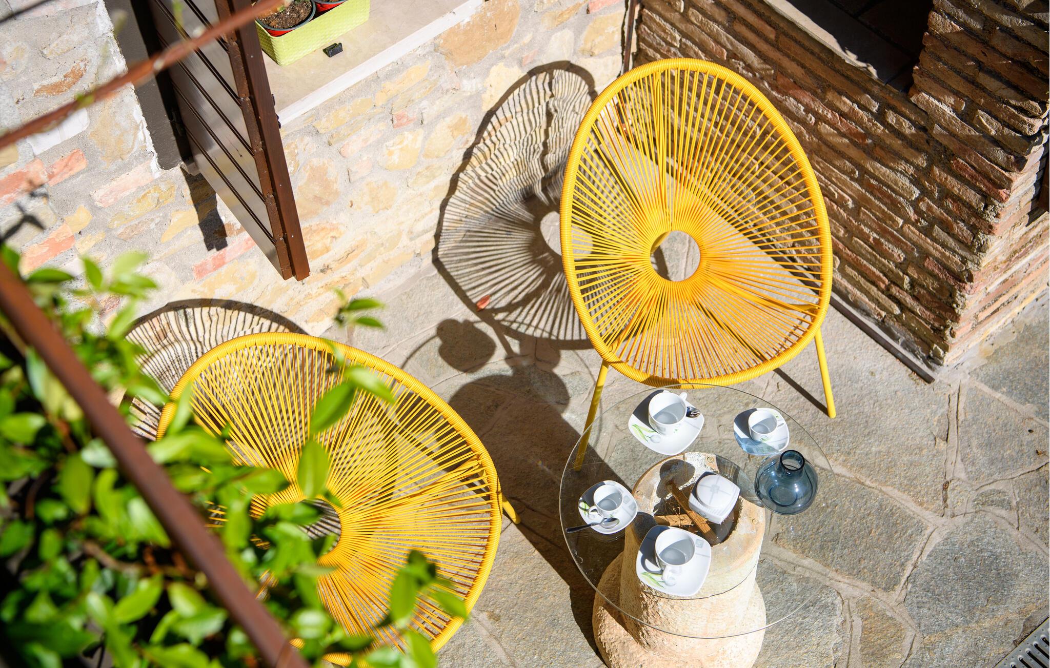 Den hyggelige lejlighed er noget særligt med møbler af høj kvalitet og kærligt designede møbler. Den åbne pejs i opholdsrummet skaber en hyggelig atmosfære, ideel til jeres afslappede ferieaftener. Start dagen på den lille terrasse foran jeres lejlighedsdør eller nyd den rummelige have med pool, som lægger op til solbadning og forfriskning. Udsigten over de omkringliggende bølgende bakker skaber en idyllisk feriefølelse.