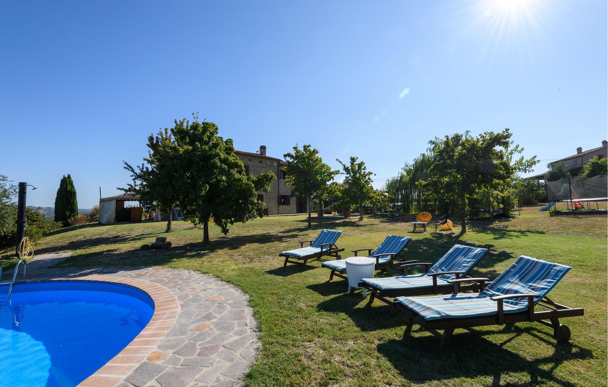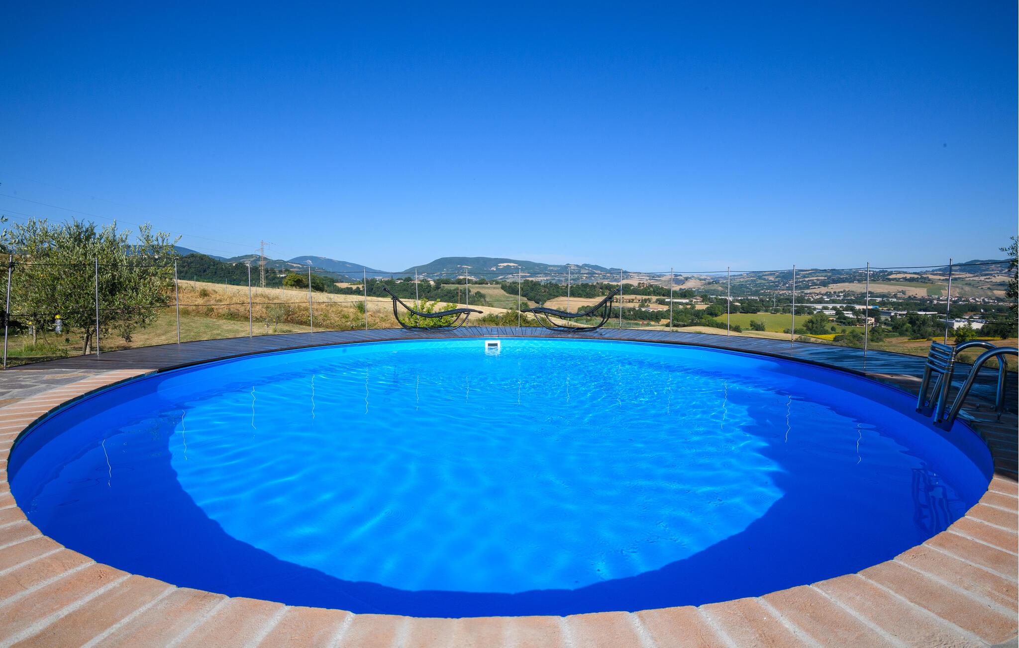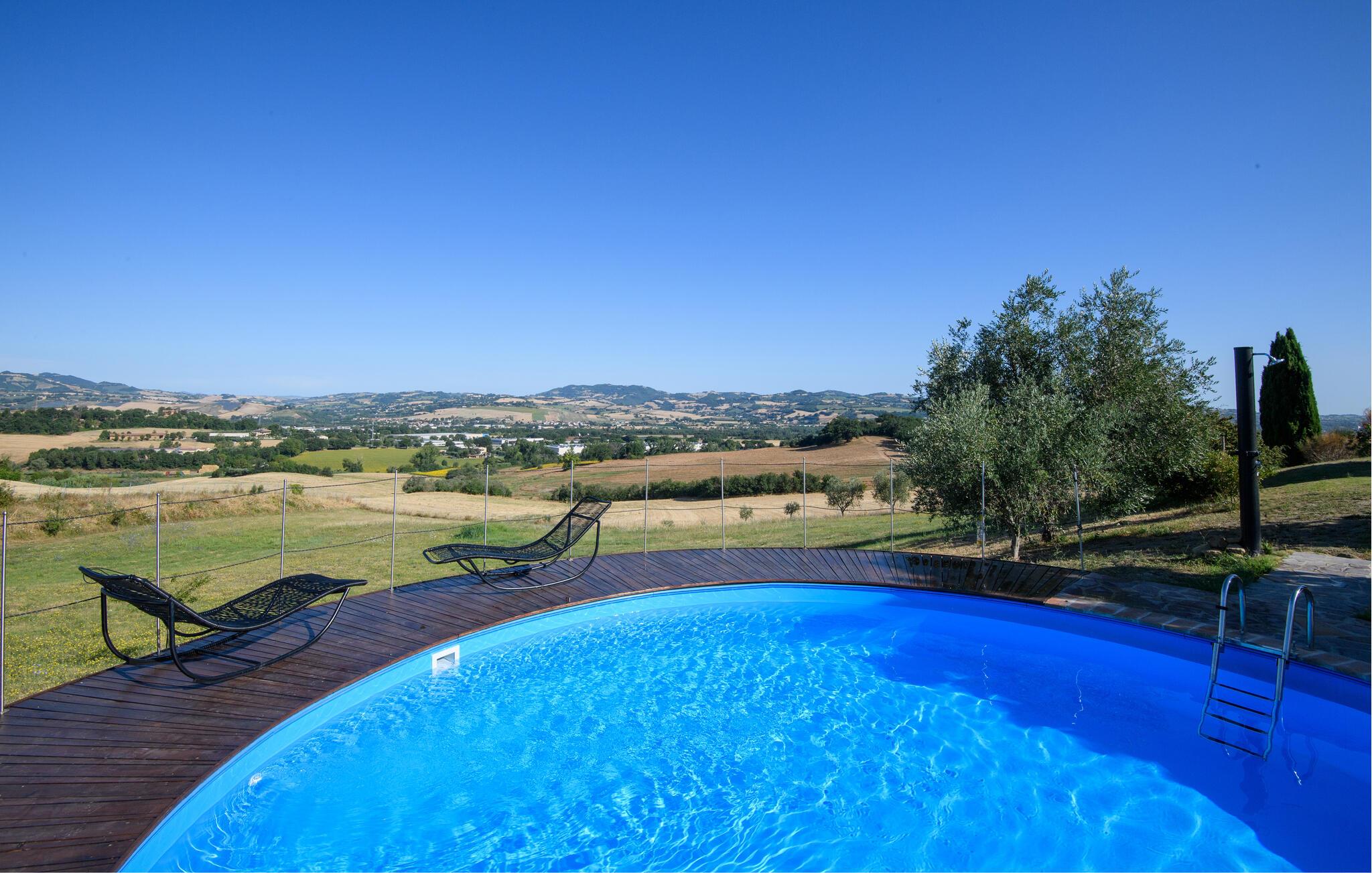 Slap af i denne charmerende ferielejlighed med have, pool og malerisk udsigt over Marche-bakkerne.
