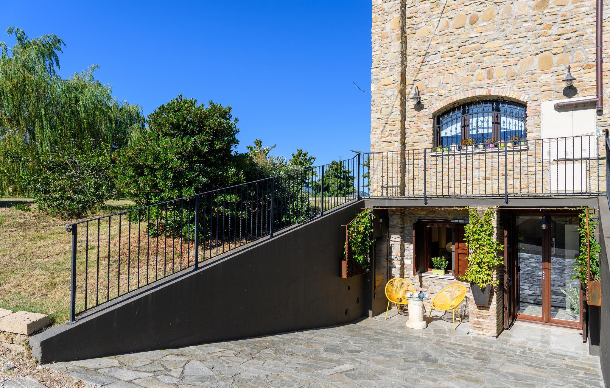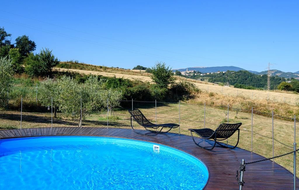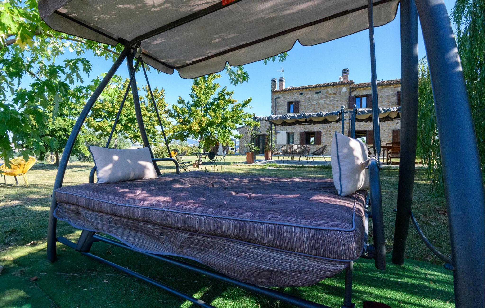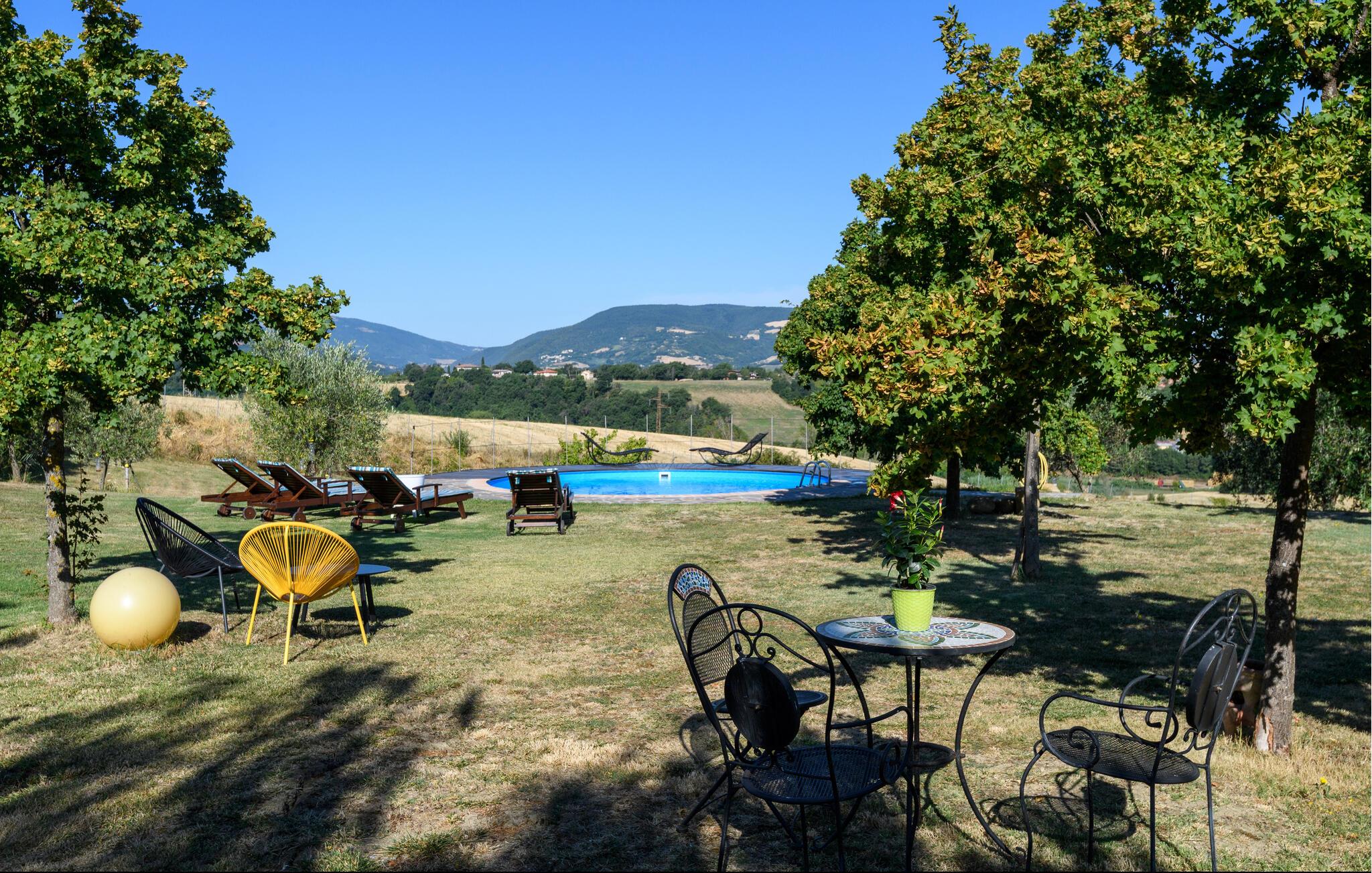 Slap af i denne charmerende ferielejlighed med have, pool og malerisk udsigt over Marche-bakkerne.