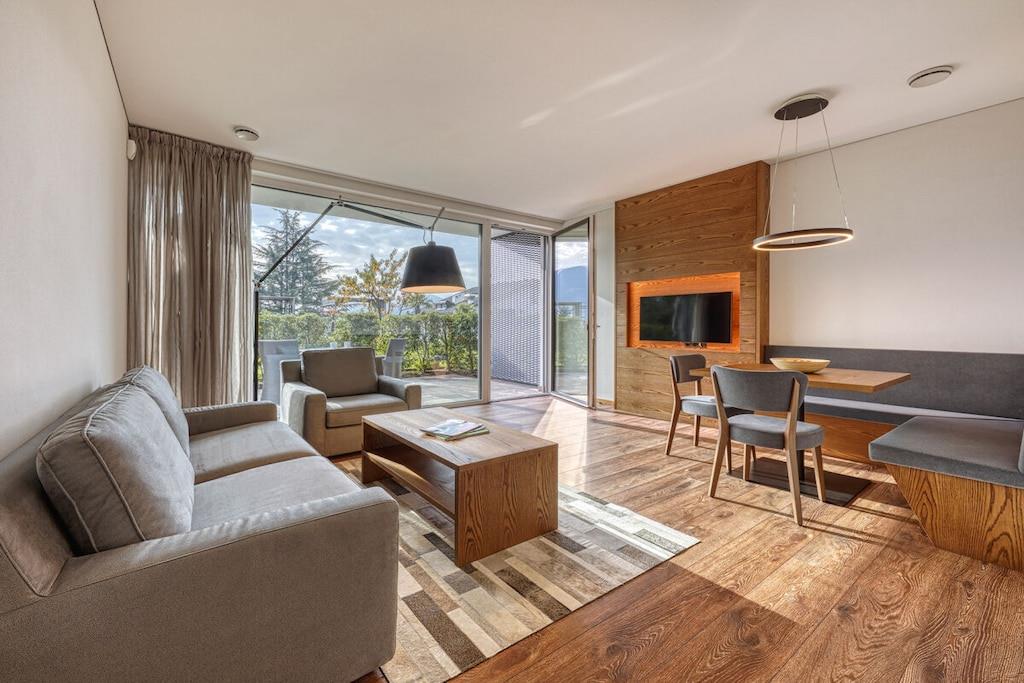 Ferielejligheden har et soveværelse med dobbeltseng og et fuldt udstyret køkken. Det rummelige badeværelse har bruser, toilet, hårtørrer og sminkespejl. Der er fladskærms-tv, Wi-Fi og telefon i den rummelige stue med en komfortabel sofa. Et ventilationssystem regulerer opvarmning og køling og sikrer et særligt behageligt indeklima. En stor sydvendt terrasse fuldender den komfortable opholdsoplevelse. Et opvarmet swimmingpoolkompleks med panoramalounge og en solterrasse i to niveauer samt en grustennisbane forbedrer yderligere dit velvære på vores resort. Der er et fitnessrum og en sauna i hovedbygningen.