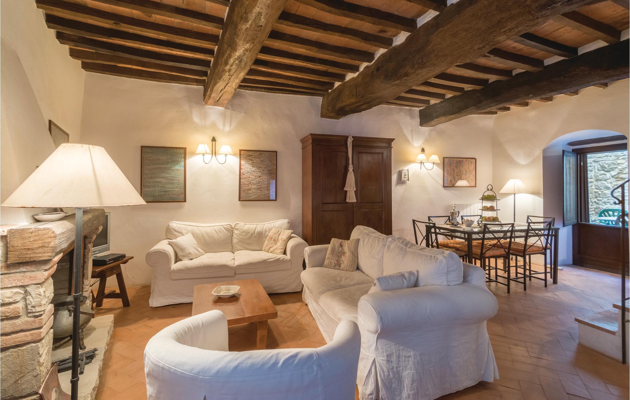 Dette karakteristiske rækkehus er en del af en smuk landsby fra 1500-tallet. Takket være den høje beliggenhed er der en smuk udsigt over det maleriske landskab hele vejen til Todi. Nyd komforten i det moderne køkken, mens I laver mad, og planlæg jeres aktiviteter under de varme træbjælker i den hyggelige opholdsstue.