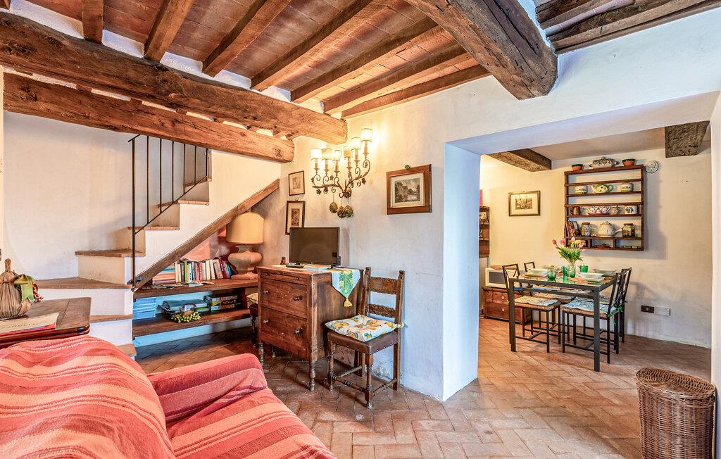 Fordyb jer i det stille liv i det fortryllende italienske landskab lige syd for Todi. Lejligheden er beliggende i en middelalderlig landsby bygget på resterne af en romersk bygning. Herfra har I en fantastisk panoramaudsigt over dalen. Ferielejligheden imponerer med sin autentiske stemning. Det varme farveskema i interiøret, rustikke træbjælker og traditionelle terracottagulve giver boligen en særlig flair. På mezzaninen indbyder stuen med direkte udgang til haven til at blive hængende. Brug det veludstyrede køkken til selv at tilberede regionale specialiteter og nyd jeres måltid enten ved det stilfuldt dækkede spisebord eller udenfor.
