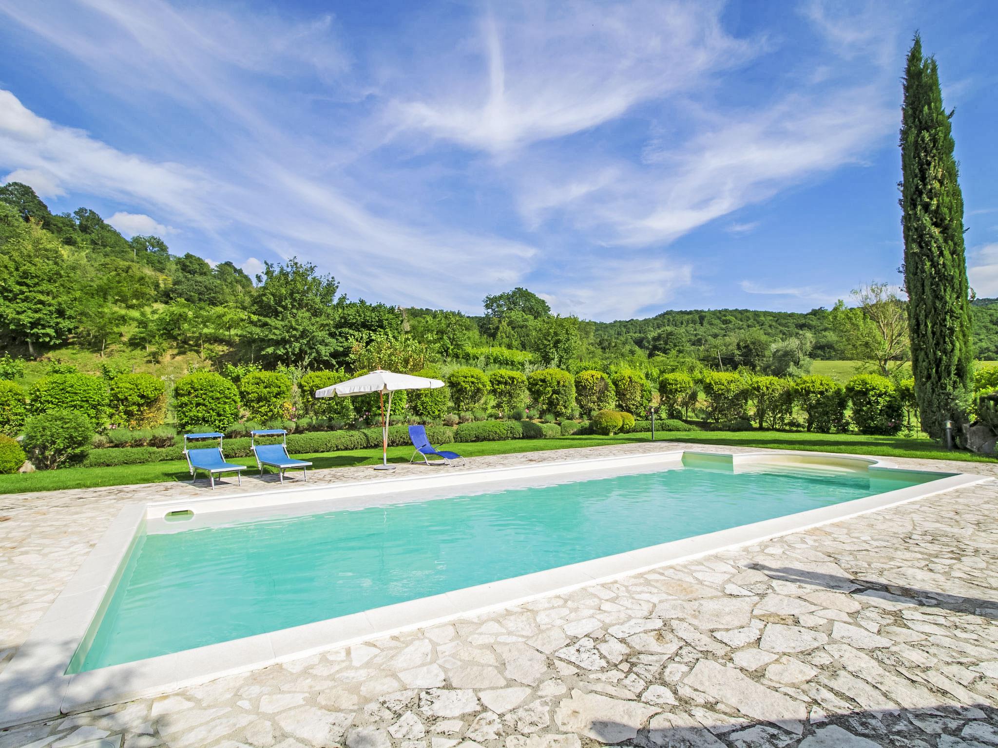 "Sunflower" is the farm house that is situated between Umbrian hills and overlooks on the beautiful Tevere valley and is situated between 2 important art cities like Todi (12km) and Orvieto (20km). Farmhouse has been recently completly restored by stones and has got elegent enclosed swimming pool and outside shower, beautiful garden with large porch and stone table, gazebo and the wooden log cabin. Farmhouse is surronded by 2 hectares of the ground, orchard, olive groves and vineyards. You can use big wooden owen. Rustic single-family house "Sunflower", 350 m a.s.l., detached. 15 km from the centre of Todi, 30 km from the centre of Orvieto. Private: property, beautiful garden to relax, swimming pool (12 x 6 m, depth 120 - 180 cm, seasonal availability: 16.May. - 30.Sep.). Outdoor shower, volleyball court patio, pergola, garden furniture, barbecue, children's playground, pool maintenance by the owner/gardener. In the house: internet access. Motor access (300 m via unmade road). Parking at the house. Supermarket 12 km, restaurant 4 km, bathing lake "Trasimeno" 56 km, lake Corbara 9 km. Nearby attractions: Tuscania 23 km, Perugia 52 km, Viterbo 57 km. Please note: car recommended.