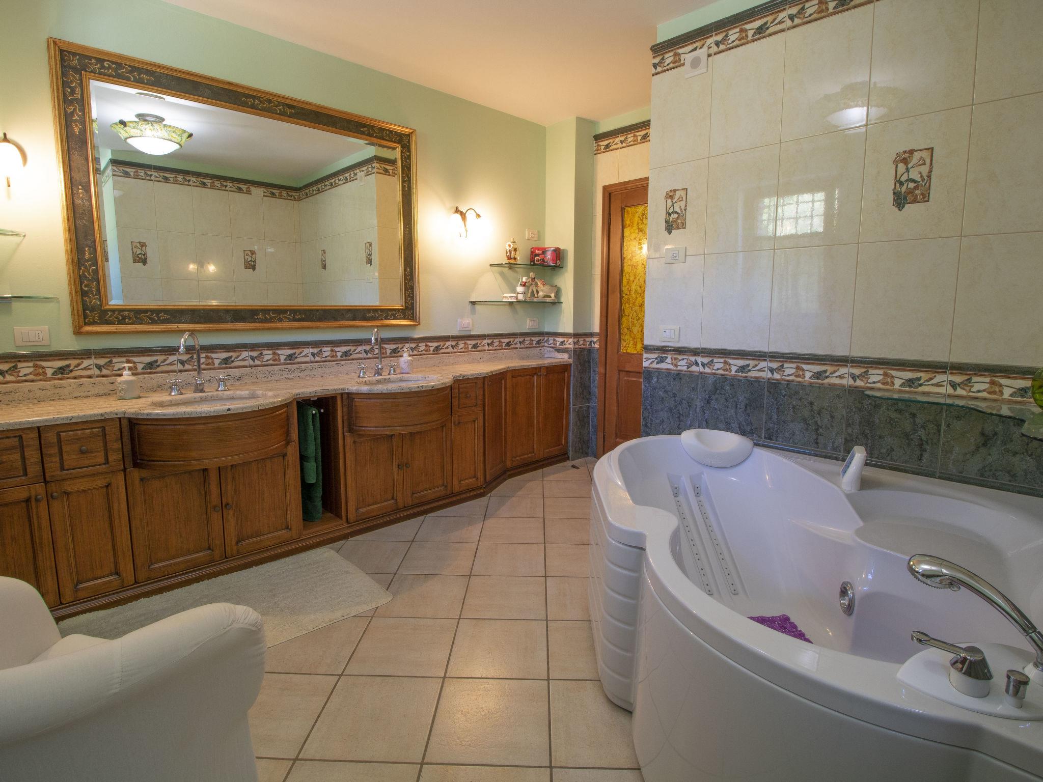 8-room villa 250 m2 on 2 levels. Practical and comfortable furnishings: open large living room with open-hearth fireplace, TV and flat screen. Open large dining room with TV and flat screen. Exit to the garden. 2 double bedrooms, each room with shower/bidet/WC, TV and flat screen. 1 large double bedroom with TV and flat screen. Large kitchen (5 hot plates, oven, dishwasher, freezer, electric coffee machine). Bath/bidet/WC, sep. WC, double hand-basin, hydro massage bath. Upper floor: open living room with sloping ceilings. Exit to the terrace. 1 room with sloping ceilings with 2 beds. 1 double bedroom with sloping ceilings with TV and flat screen. Exit to the terrace. Shower/bidet/WC. Air-conditioning. Panoramic view of the countryside. Facilities: washing machine, mosquito net, hair dryer. Internet (WiFi). Please note: non-smoking house. the owner does not accept groups of young people. When there are less than the maximum number of guests staying at the property, not all of the bedrooms will be available for use. IT054028C204030529