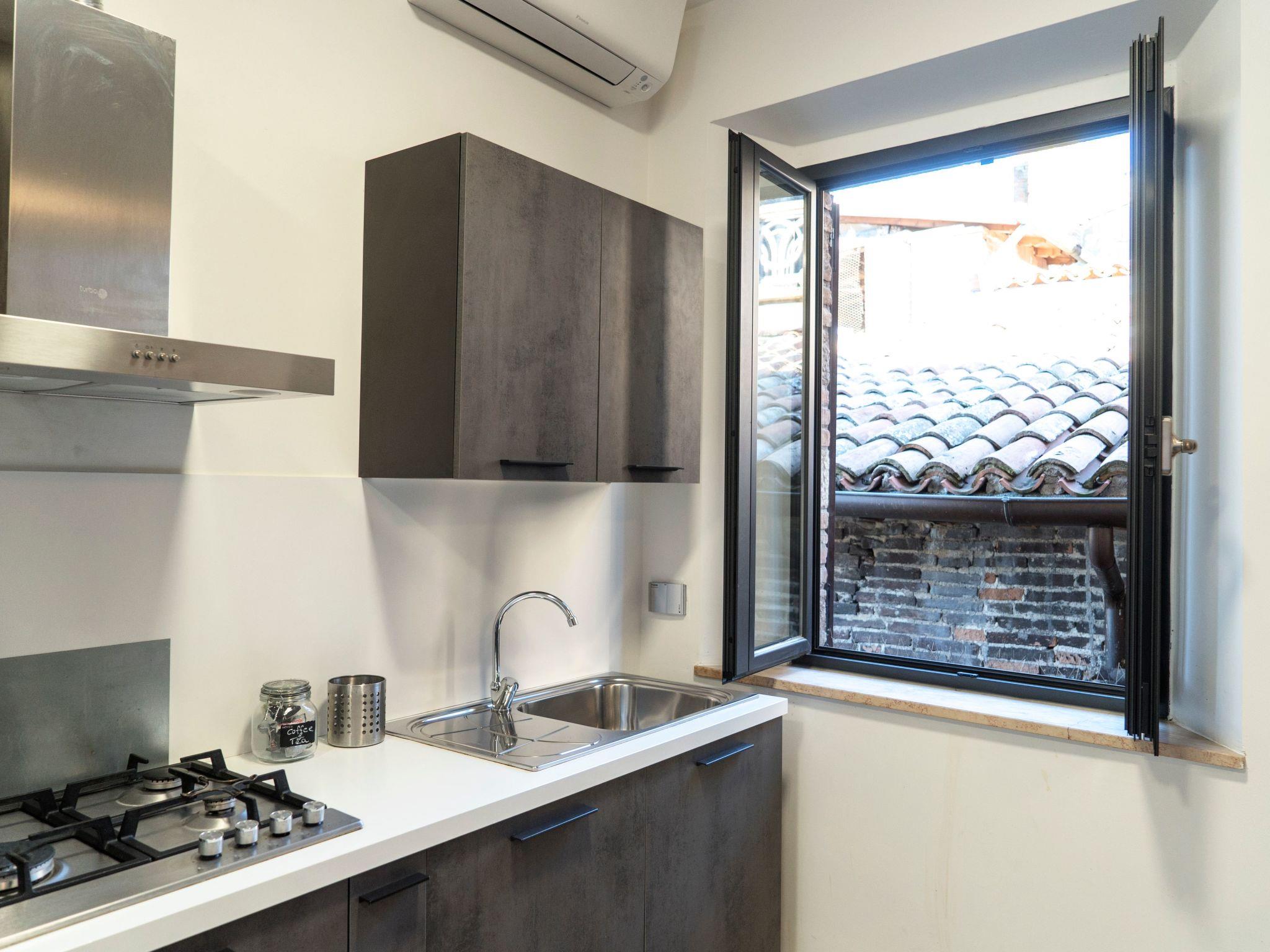 Internally, the flat boasts two finely decorated bedrooms that offer a charming view over the rooftops of Todi and the lively main street. The fully equipped kitchen is perfect for preparing delicious meals to be enjoyed on the wonderful terrace. The common room is spacious and bathed in light, embellished with carefully chosen furniture that combines elegance and warmth, creating a cosy and relaxing environment. The modern bathroom has a large and comfortable shower, making every aspect of your stay pleasantly comfortable.