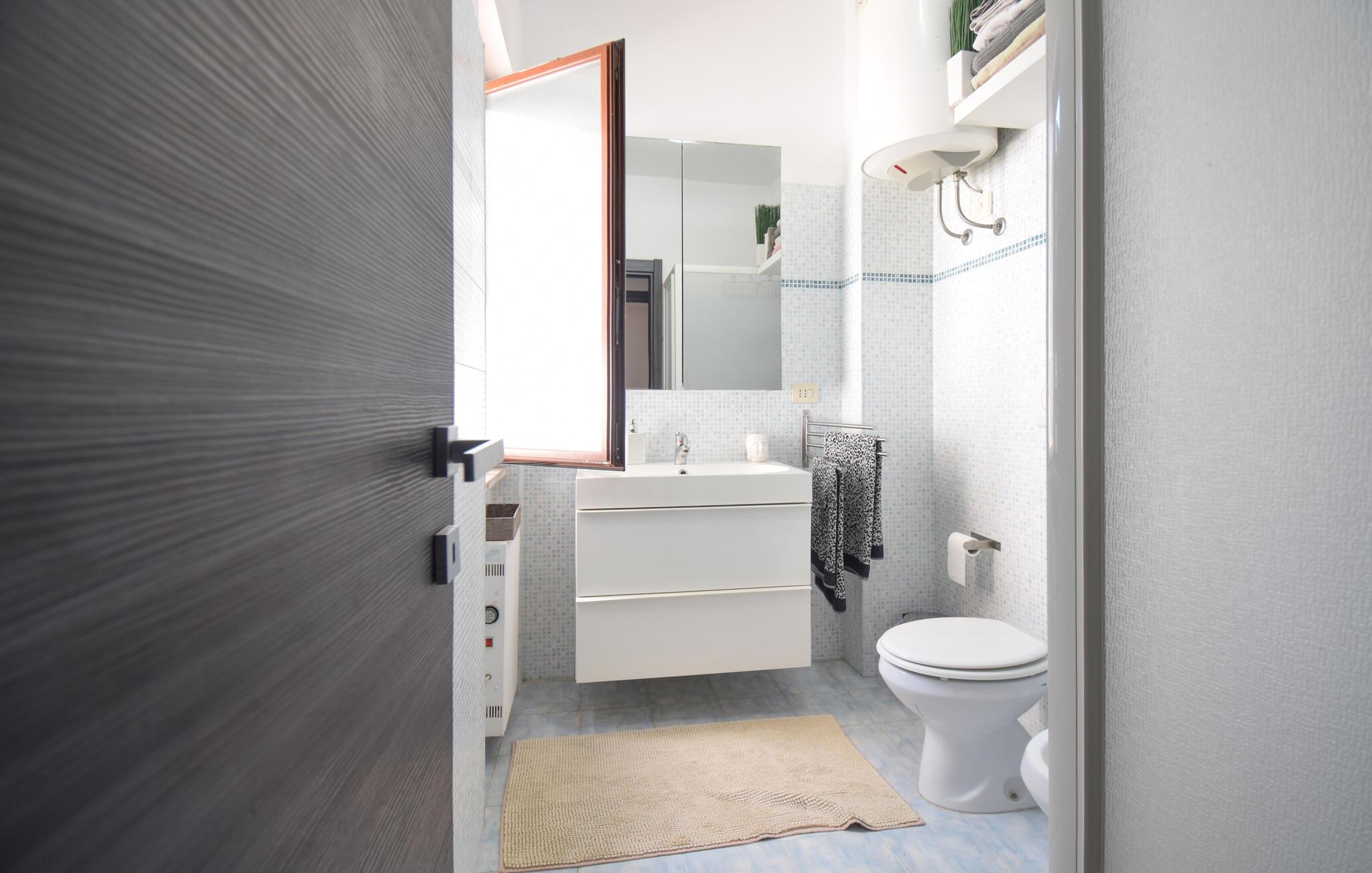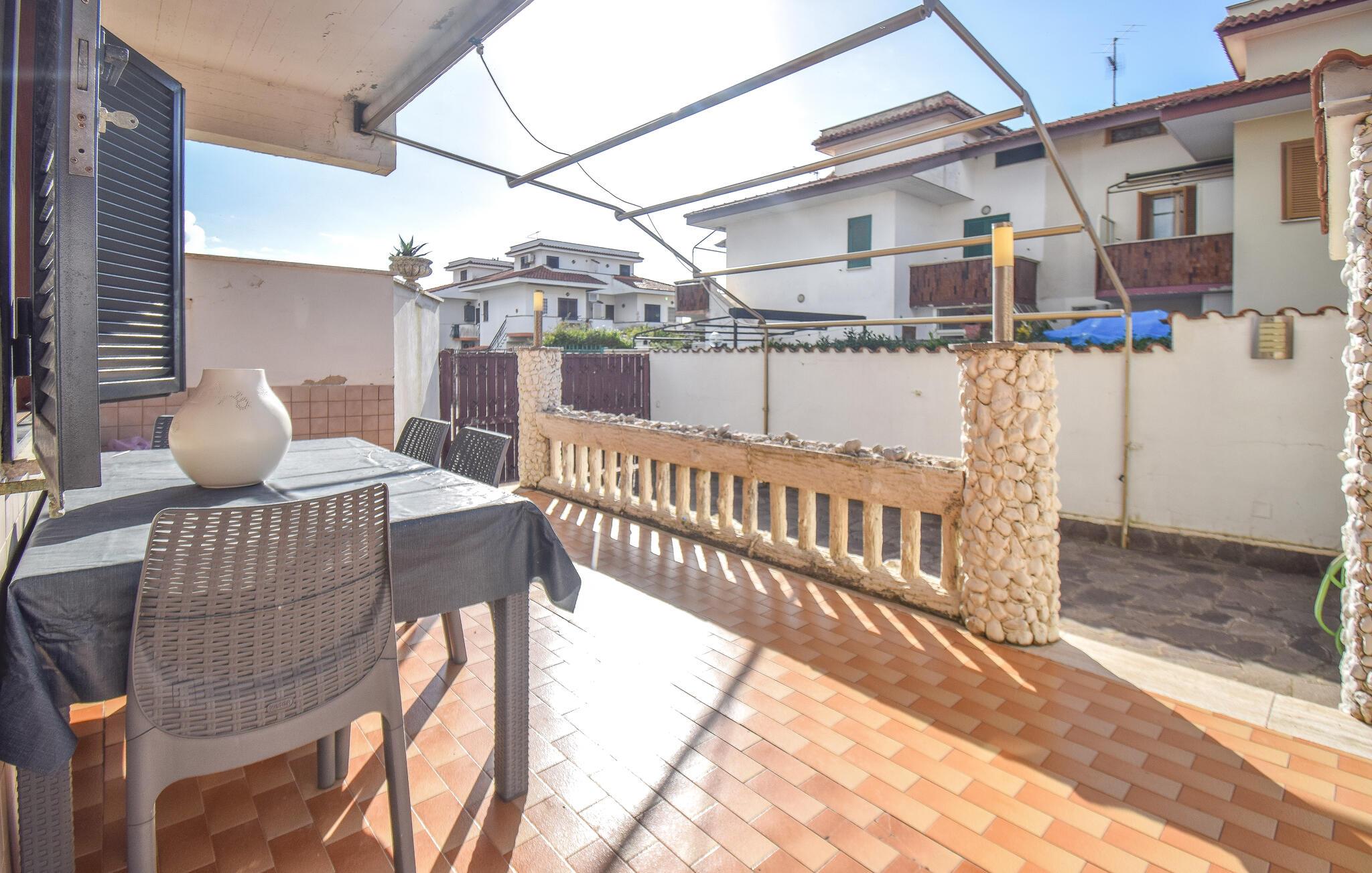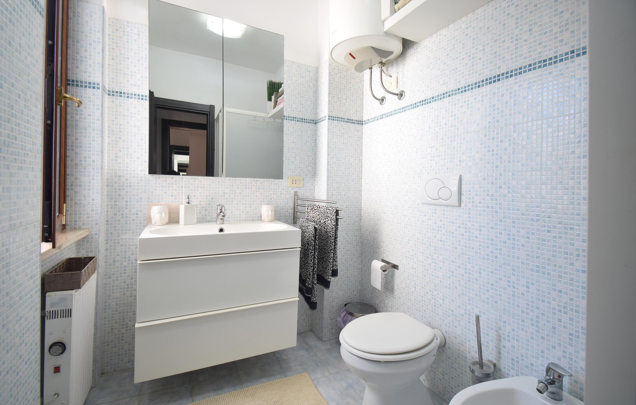 Under jeres ferie i denne lyse, moderne ferielejlighed, beslut jer spontant hver morgen, om I vil tilbringe en afslappende dag på stranden eller udforske Roms pulserende hovedstad. Føl jer hjemme, mens I laver jeres yndlingsretter i det veludstyrede køkken eller slapper af i den komfortable sofa med en god bog efter en begivenhedsrig udflugt.