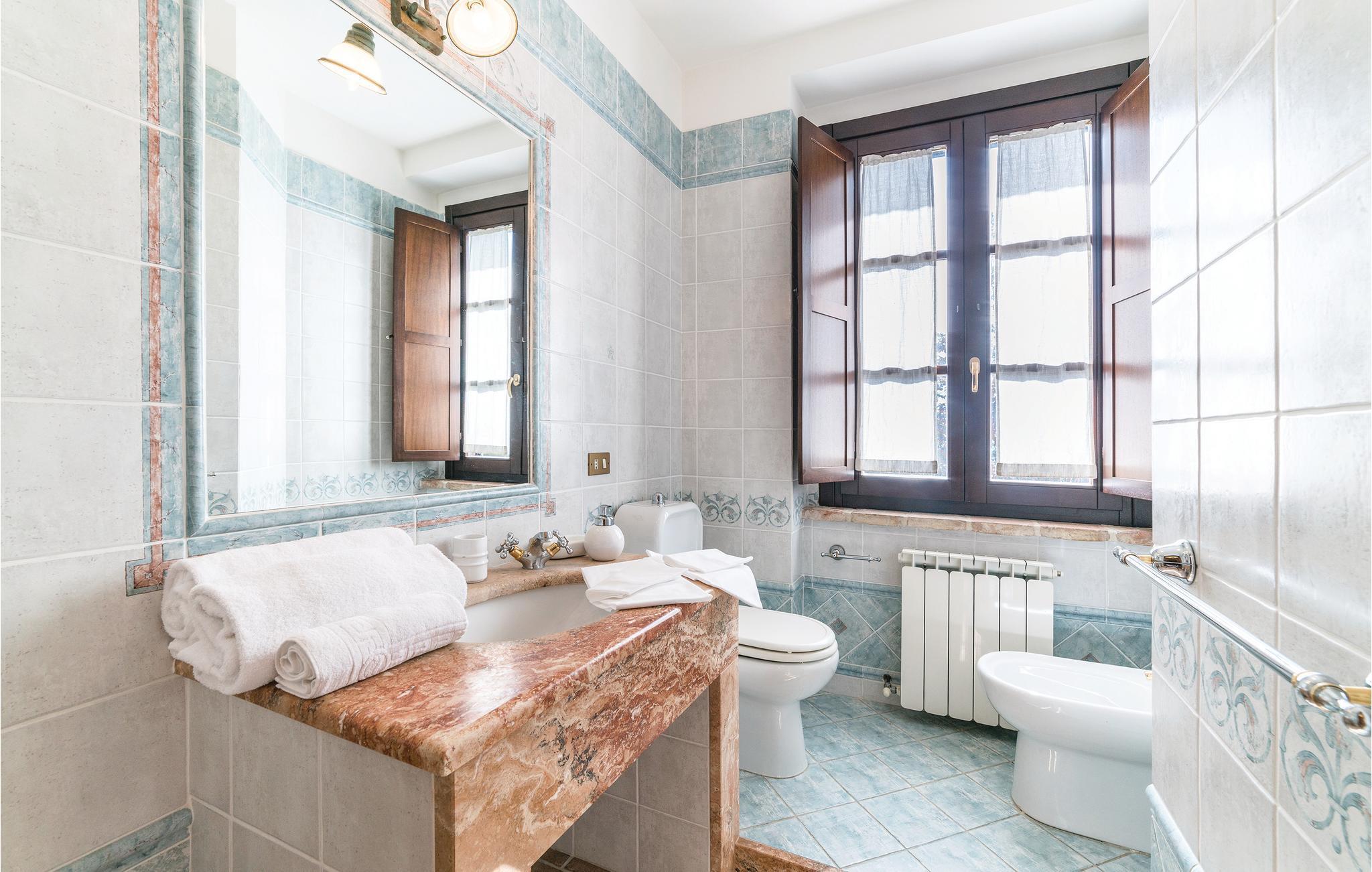 I bakkerne mellem Perugia og Assisi, ca. 2 km fra Torgiano, ligger dette antikke bondehus, er blevet forvandlet til en hyggelig ferieresidens med omhyggelige hensyn til bevaring af den originale struktur. Ideel beliggenhed til udflugter til de vigtigste turistbyer i omgivelserne, som Perugia, Assisi, Deruta med den antikke keramikproduktion og Todi med den gamle bydel fra middelalderen. På det dejlige, store, velholdte udeområde ligger poolen (dybde 1,5 m) med romersk trappe, omklædningsrum og brusebad, en stor terrasse med smuk udsigt over Assisi, en møbleret pergola med en brændeovn og grill, en møbleret panoramaterrasse til måltider i det fri, et område med frugttræer og en minifodboldbane med plæne. Afstande: 13 km til Perugia, 19 km til Assisi, 30 km til Trasimenosøen med sine bredde og øer. Indhegnet grund med automatisk indgangsport. Tre mountainbikes inklusive (ekstra kan lejes mod betaling på stedet). Hvis I spørger og mod betaling: Smagsprøver af lokale produkter (vin, olivenolie, ost, honning og marmelade). Massage. Mulighed for at leje to ekstra dobbeltværelser med brusebad (bekræftelse ved bestilling og betaling på stedet).