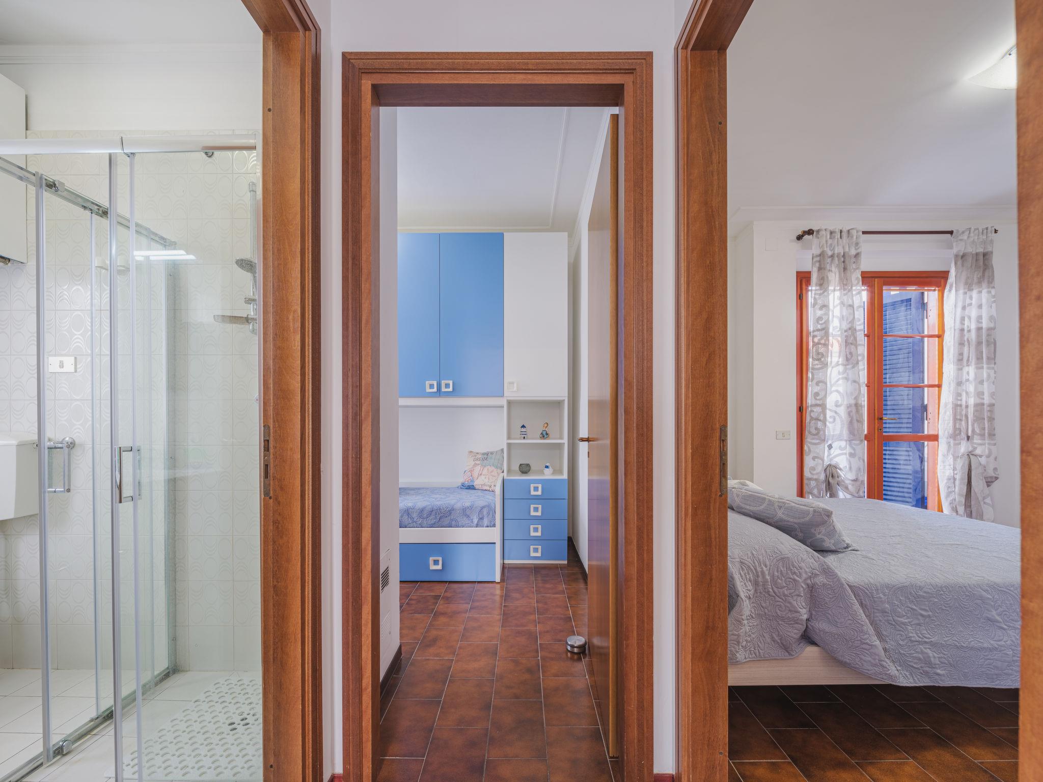 "Appartamento Athena", 3-room apartment 65 m2 on 1st floor. Bright, renovated, comfortable and tasteful furnishings: living/dining room with TV (flat screen), air conditioning. Exit to the terrace. 1 double bedroom. Exit to the terrace. 1 small room with 1 bed and 1 pull-out bed. Kitchenette (4 hot plates, oven, toaster, kettle, freezer) with dining table. Shower/bidet/WC. Gas heating, air-conditioning. Heating available only from 01.11. to 15.04. Large terrace. Terrace furniture, sitting area. Facilities: washing machine, iron, hair dryer. Internet (WiFi, free). Parking space n 2 (1 car) at the house. Maximum 1 pet/ dog allowed. IT046033C2XIRKAGHR