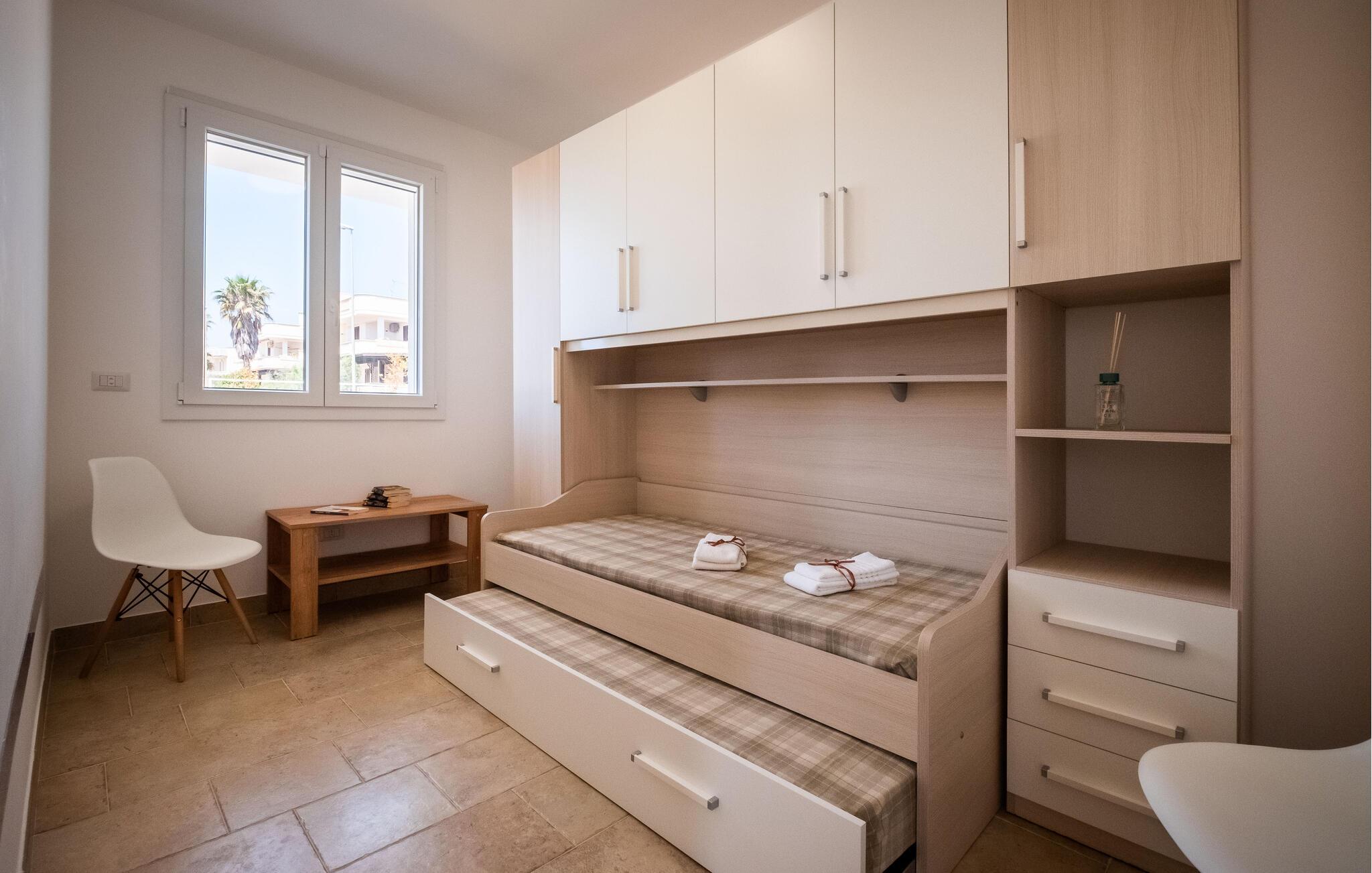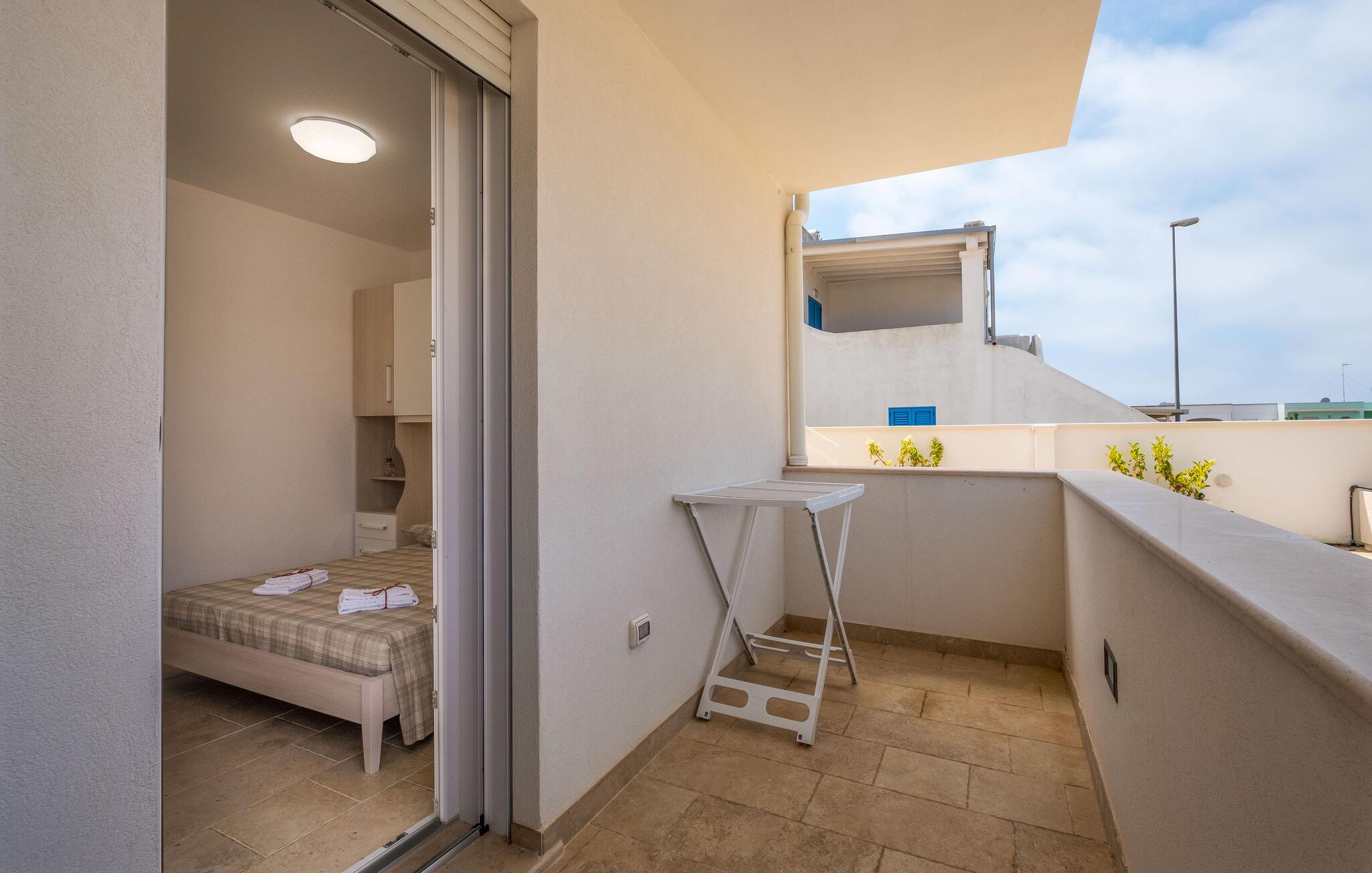 I den sydlige del af Puglia, i provinsen Lecce, finder du denne moderne, lyse lejlighed i en stille og rolig kystby. Med en harmonisk, varm indretning føler du dig hurtigt hjemme her. Lejligheden er velegnet til en lille familie, og du kan se frem til komfort og ubekymrede dage.