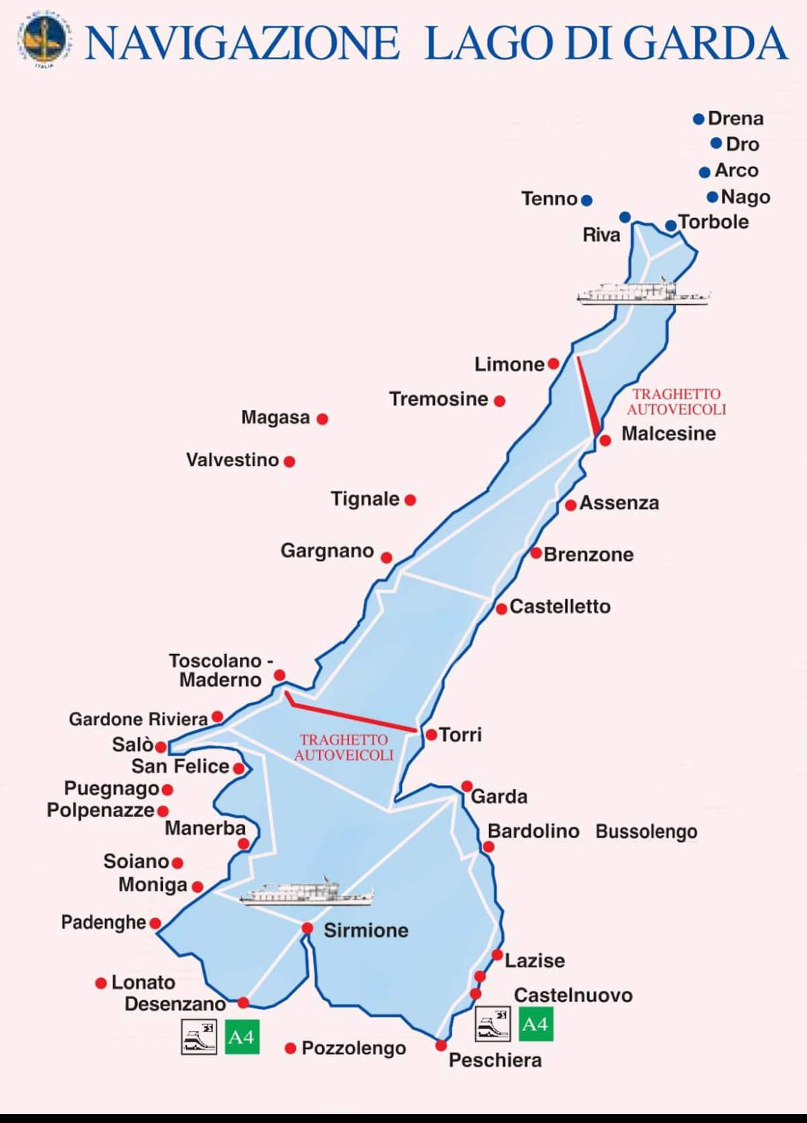Es sind nach Garda ca. 5 Kilometer und ca 9 Kilometer nach Bardolino. Das nördlich gelegene Malcesine ist ca. 20 Autominuten entfernt.