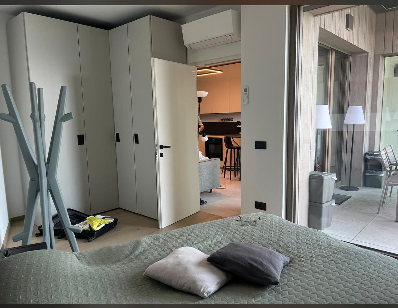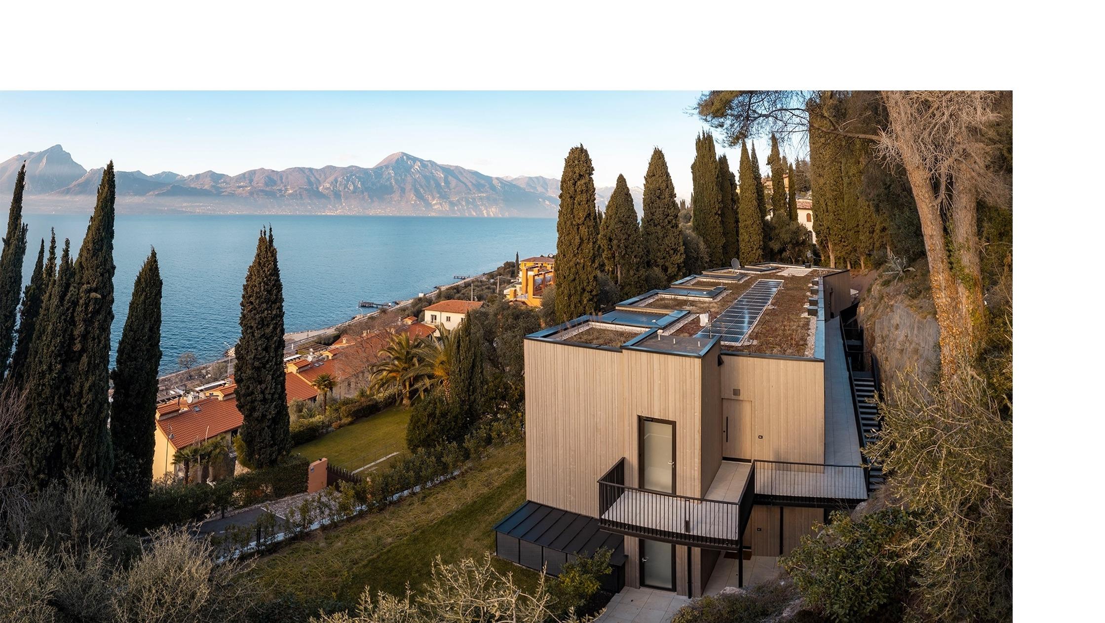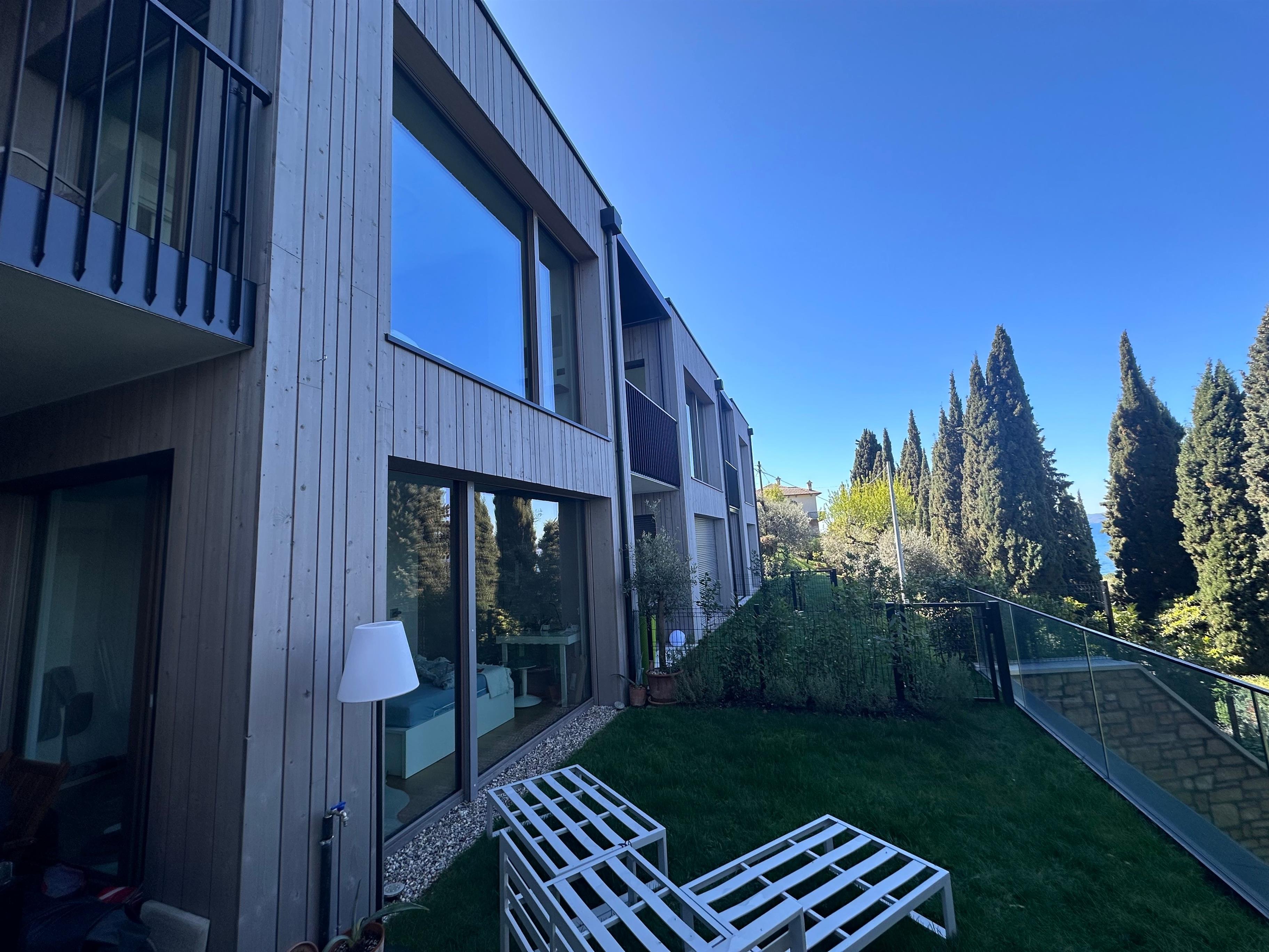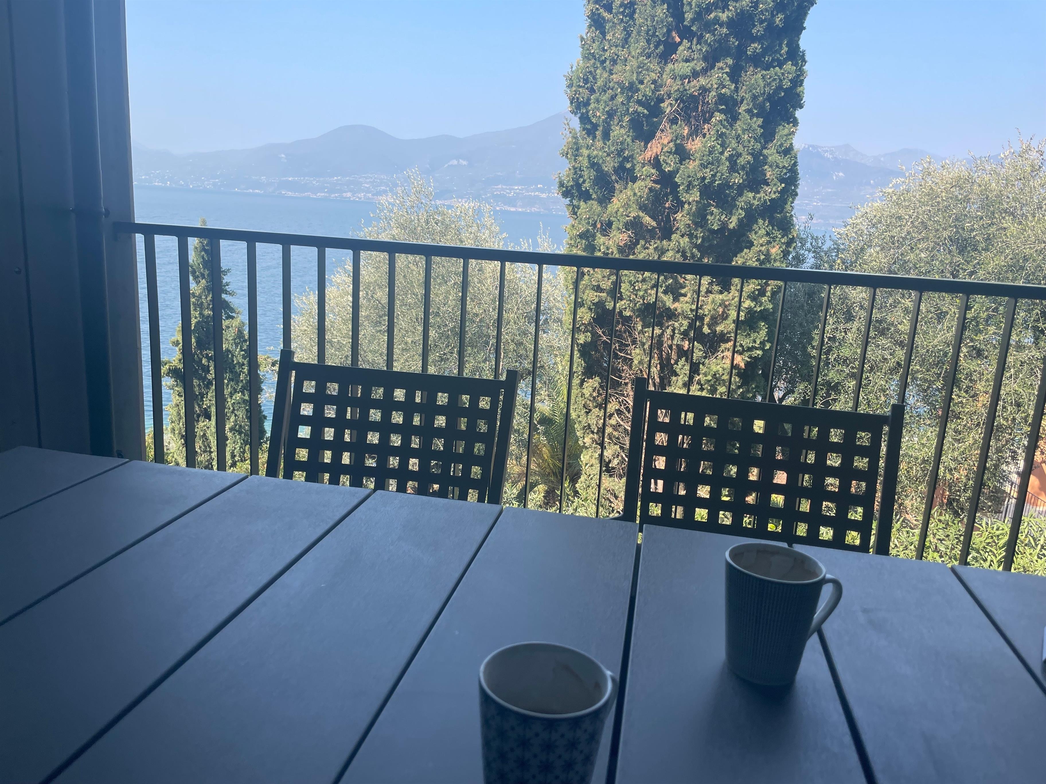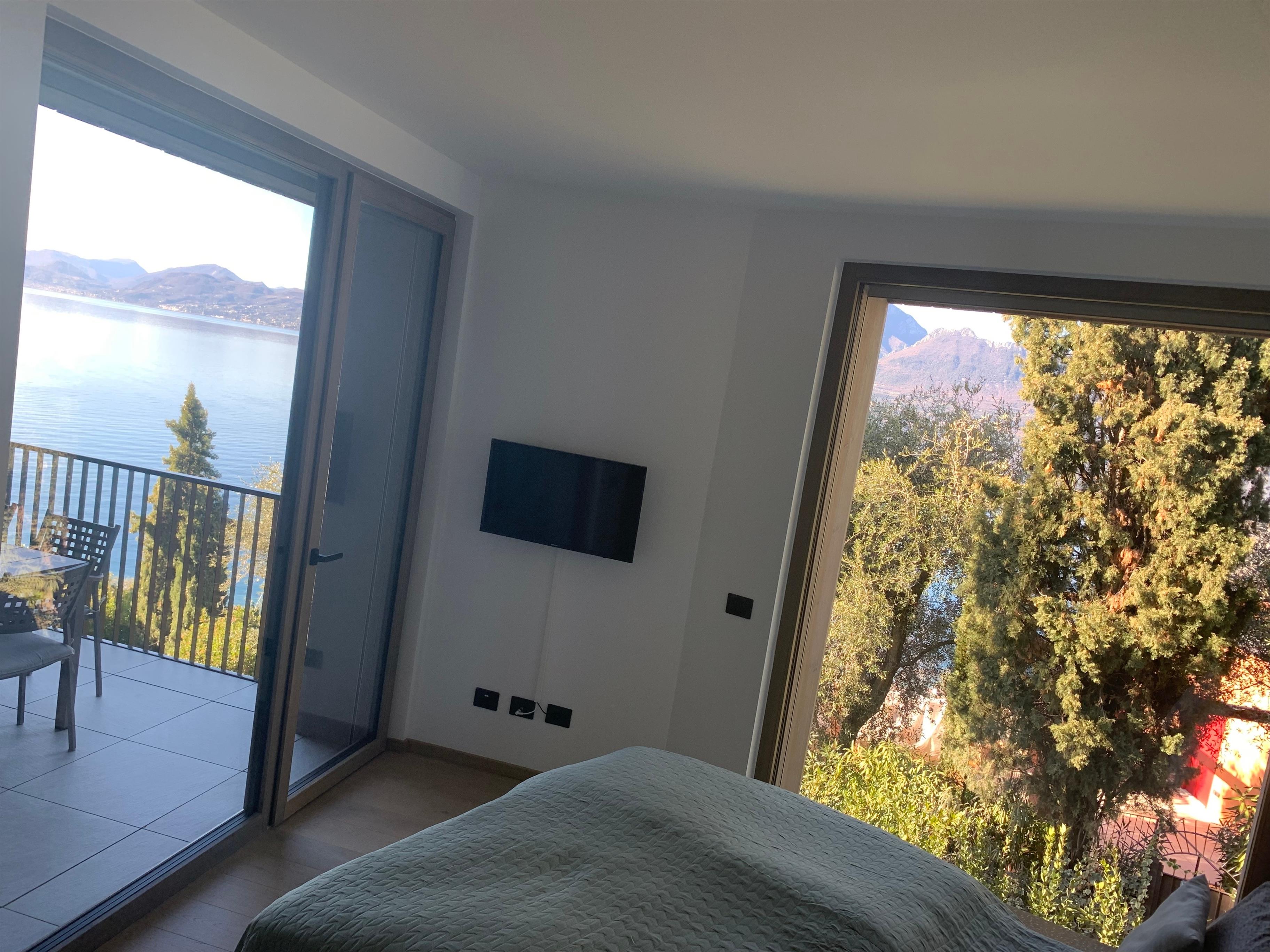 Das luxuriöse Ferienapartment ist eine von 8 Wohneinheiten der exklusiven Villa Inessa. Sie liegt direkt am Hang und bietet einen majestätischen Panoramablick auf den Gardasee und die umliegenden Berge.