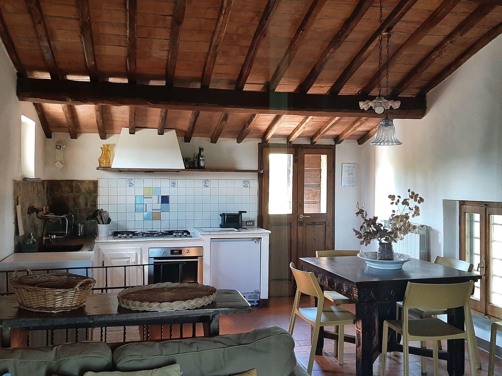 Six beds, approx. 90 sqm. It is the result of adaptations made over time on a 17th century turret. Restored in 1990, in the Tuscan tradition, and furnished with family furniture.Brief descriptionOther : Non-smoking houseBrief description1Other rooms : utility roomTotal kitchens : 1Kitchen 1Other kitchen equipment : the kitchen-diner has a seating corner in front of the fireplace, suitable for grilling.SurroundingsSports facilities nearby : Riding school/horse-riding possibilities, Canoeing, Bicycle tours, Mountain bikingRenting possibilities : Bicycle rentalSurroundings 1Garden and outdoor areasGarden equipment : Garden furniture available