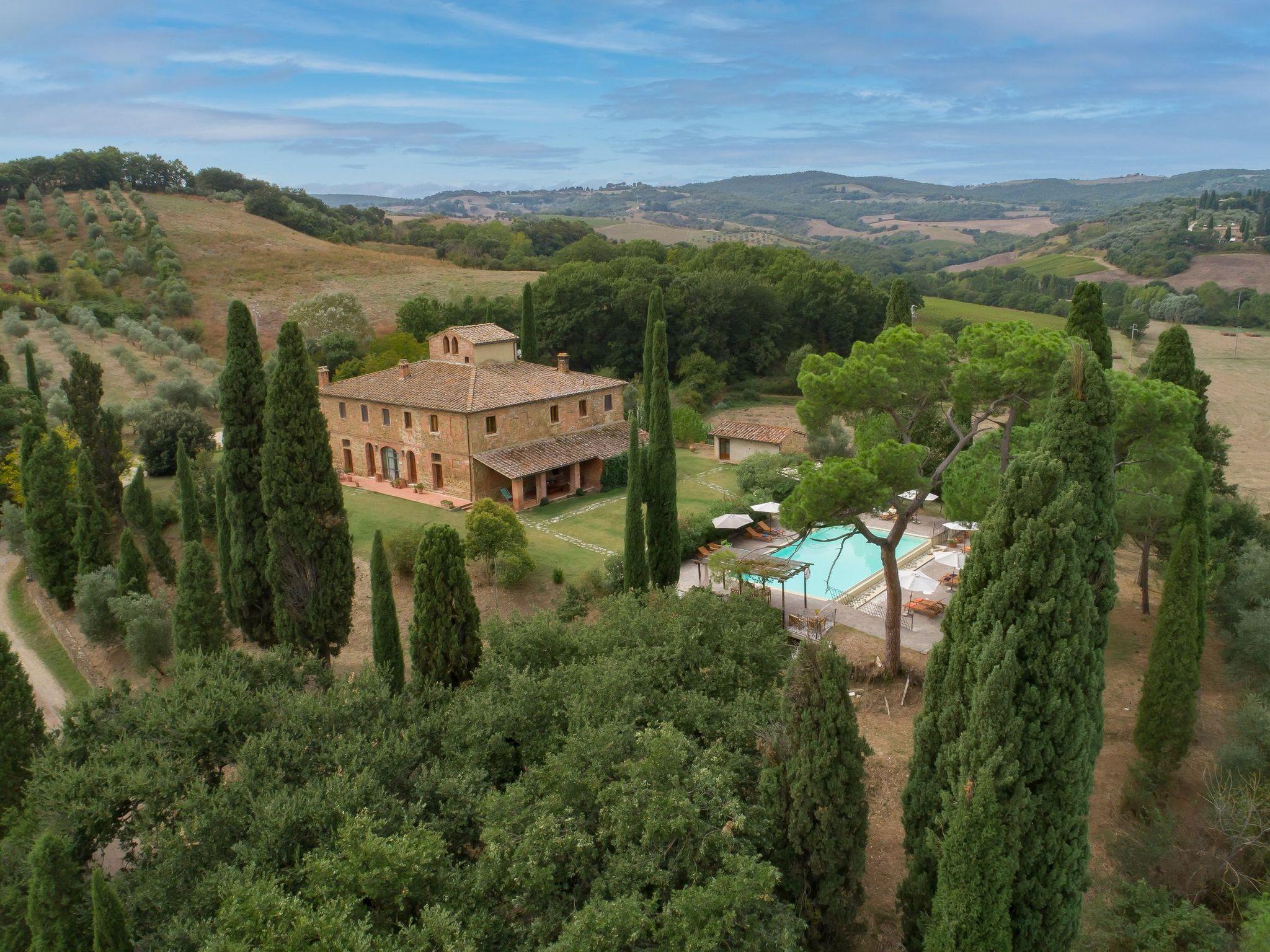 The exterior of the accommodation offers guests the opportunity to immerse themselves in the beauty of the surrounding nature. The small balcony invites you to relax in front of breathtaking views, while the communal garden is the ideal place to enjoy sunny days in the fresh air. In the beautiful garden, with panoramic views of the village of Torrita, there is a large infinity pool, open from May to October, with numerous gazebos for relaxing.