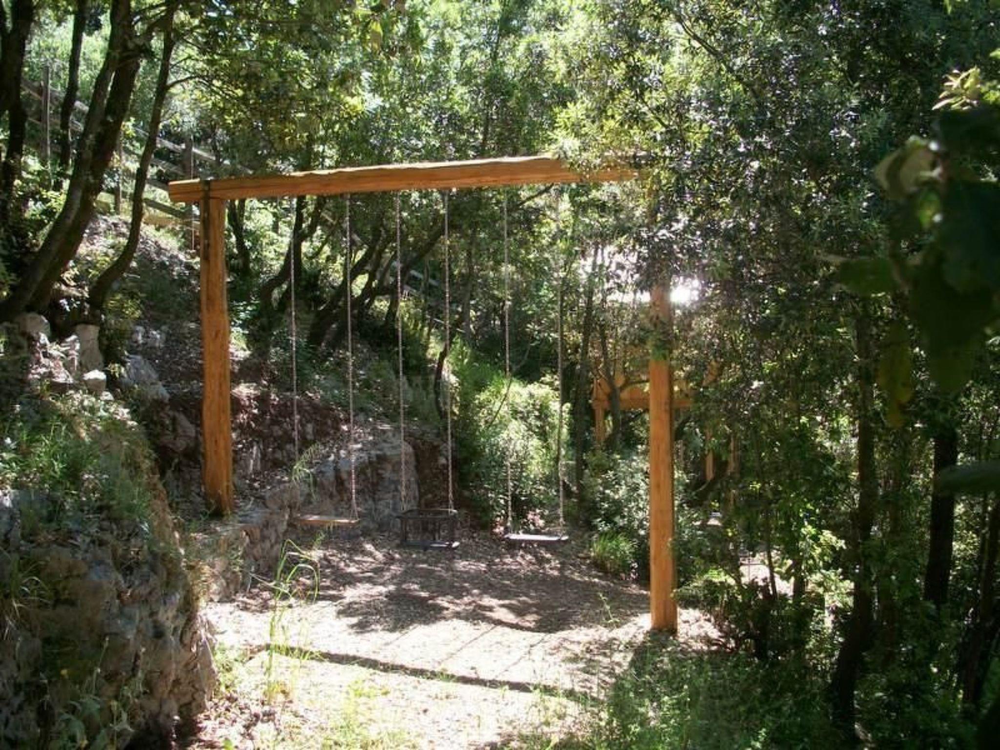 The terrain with meadow, vegetable garden and holm oak forest is terraced with stone walls; each accommodation unit has its own access and terraces with panoramic views over the mountains and valleys of the Golfo di Policastro and the sea on the horizon.