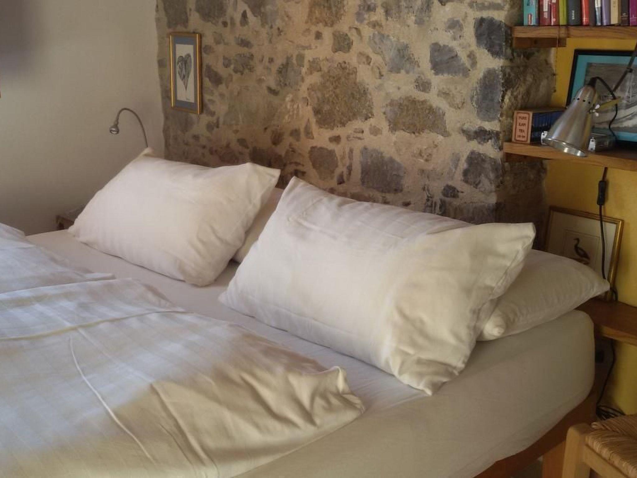 This holiday flat is located together with a larger holiday flat in a detached stone house and offers a good 40 m² of living space for up to three people. There are two other buildings on the 6000 square metre property that are available for rent.