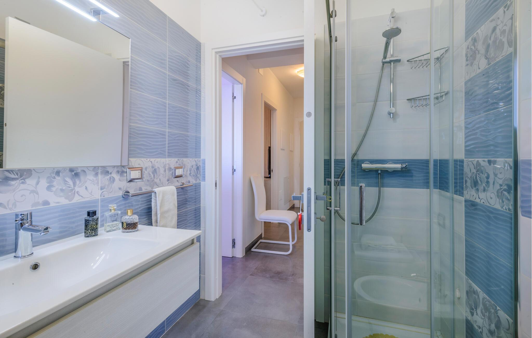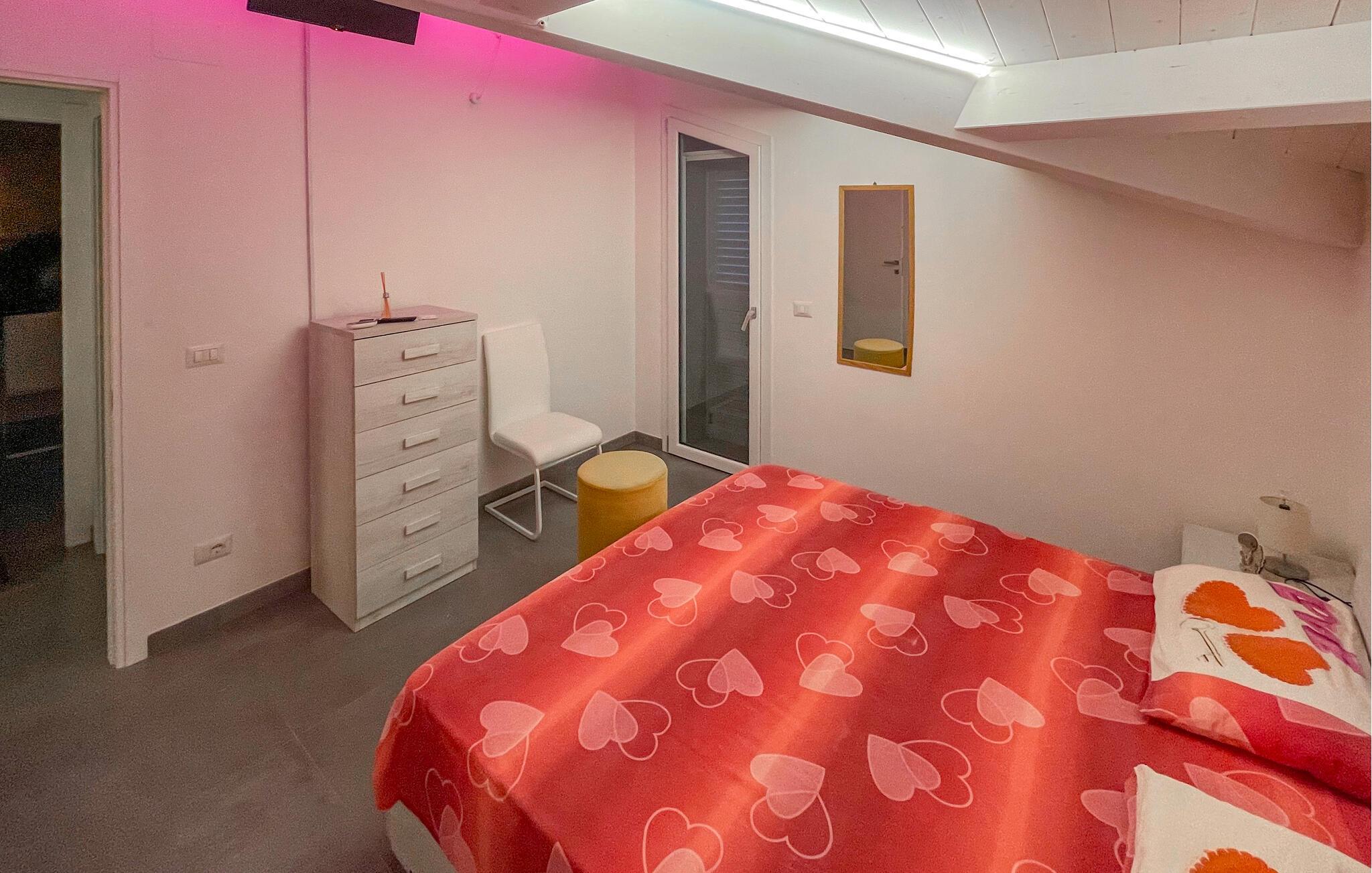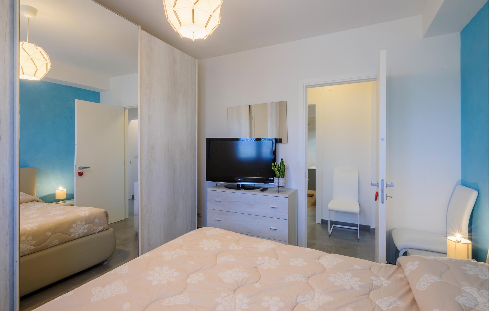 Oplev en afslappende ferie i denne moderne ferielejlighed i Tortoreto Lido. Her venter jer en stilfuld atmosfære med kærligt udvalgte detaljer og kvalitetsmøbler. De lyse rum skaber en indbydende stemning, hvor I kan nyde de fælles stunder med jeres familie. Lav mad sammen i det veludstyrede køkken, eller læn jer tilbage på sofaen efter en begivenhedsrig dag.