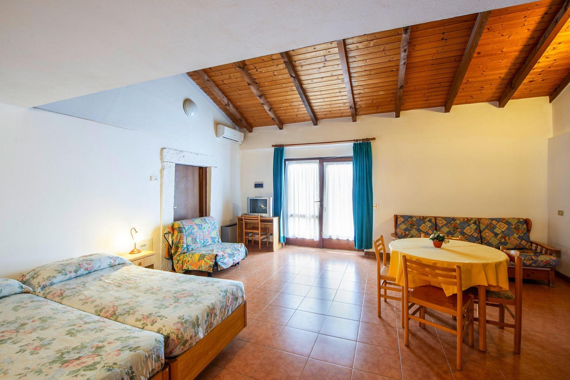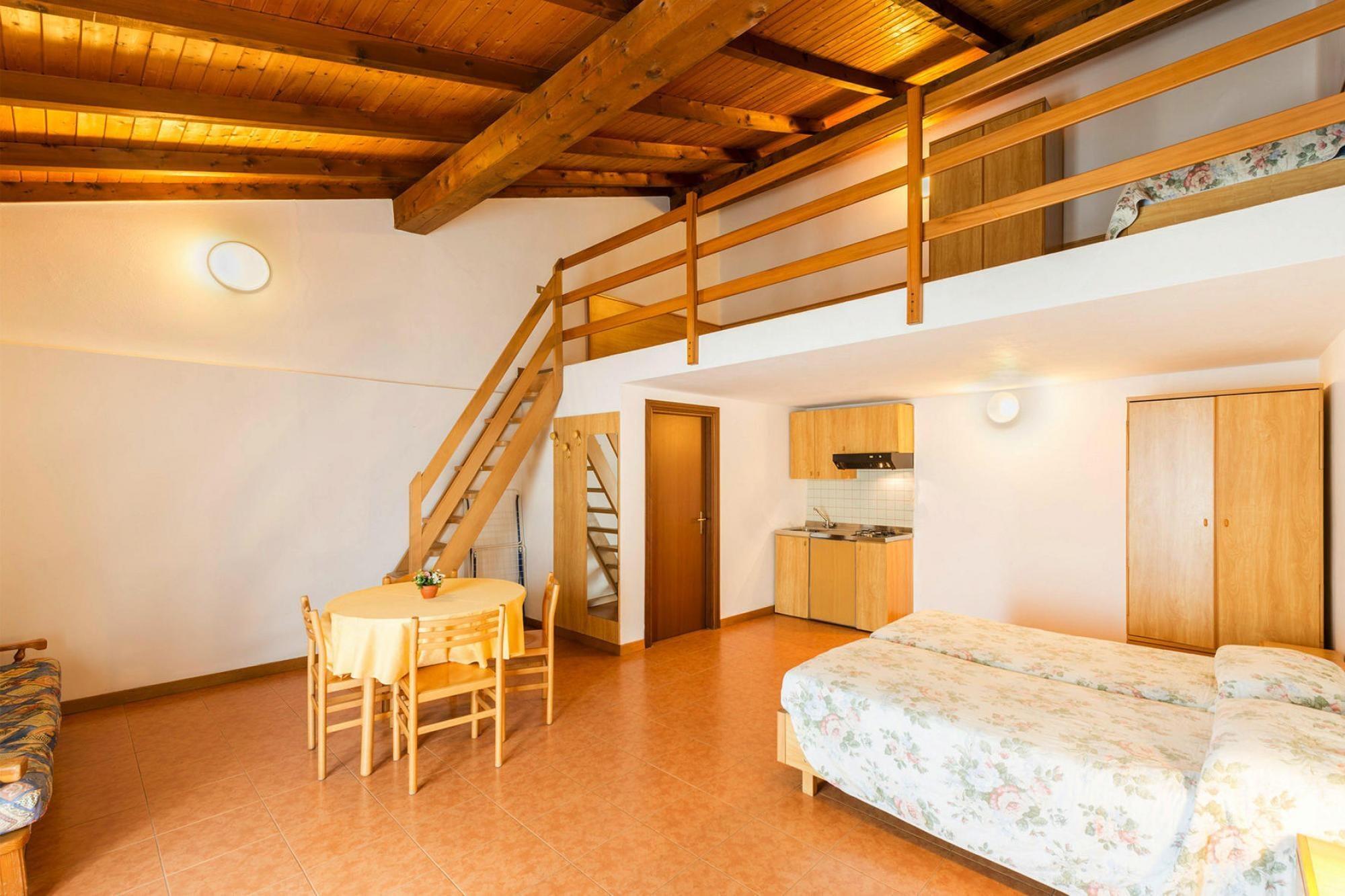 Tekøkken(kogeplade, mikrobølgeovn, køle-fryseskab), stue / spisestue(enkeltseng, enkeltseng, Fjernsyn(parabol)), svalegang soveværelse(dobbeltseng), badeværelse(bruser, toilet), Kiosk, Reception, Vaske faciliteter, Minimarked, Tennisbane, Cykeludlejning, Golfbane, Restaurant, Bar, vaskemaskine(deles med andre gæster, betalt), varme, klimaanlæg, terrasse(privat), terrasse(deles med andre gæster), havemøbler, parkering, liggestole, swimmingpool(deles med andre gæster, udendørs, opened from Apr upto and including Oct), Solcreme, baby crib(paid)