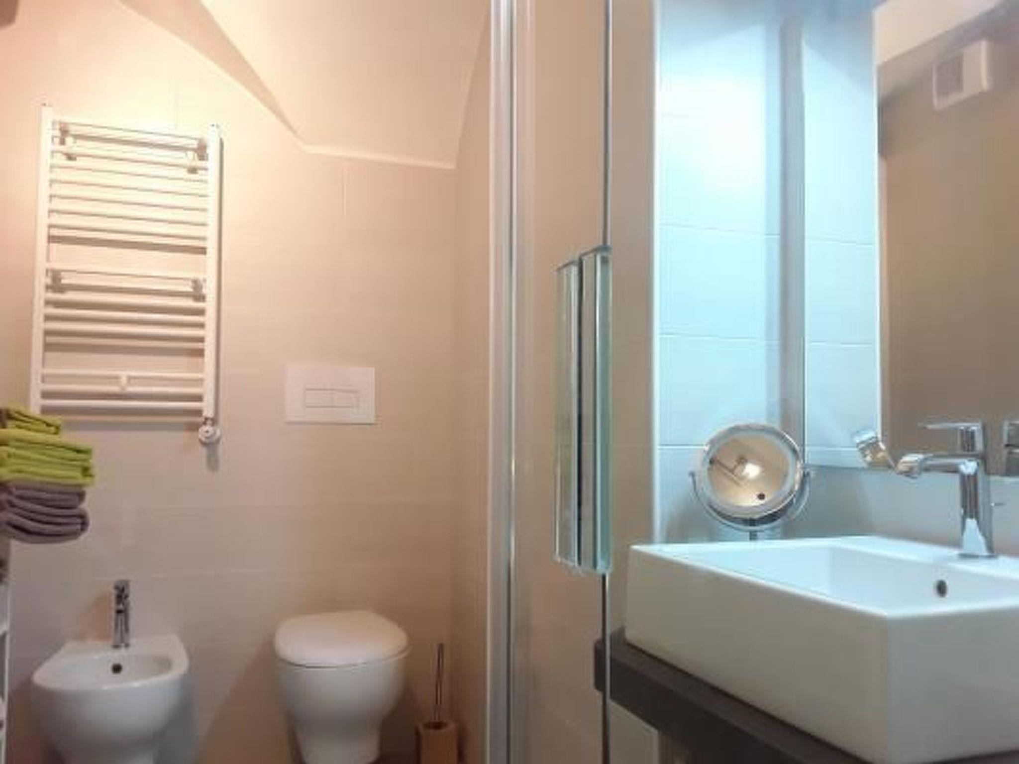 The holiday house is located in the historic centre of Maderno, only 500 metres from the lake, in a quiet yet central location. This modern flat with outdoor seating, shared courtyard and panoramic terrace is located in a guesthouse. Enjoy the Italian charm of the characteristic old town and the proximity to the lake with its many beautiful beaches. Explore the surroundings on long hikes, bike rides or mountain bike tours and end an eventful day with a pleasant meal of regional cuisine.