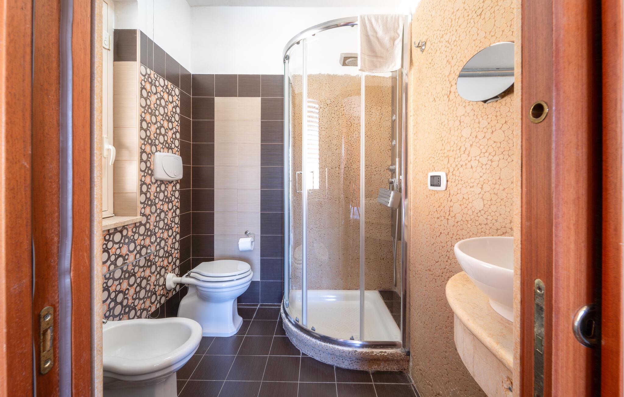 Badeværelse 8m2 (nr. 1) - WC. Varmt og koldt vand. Bruser og badekar