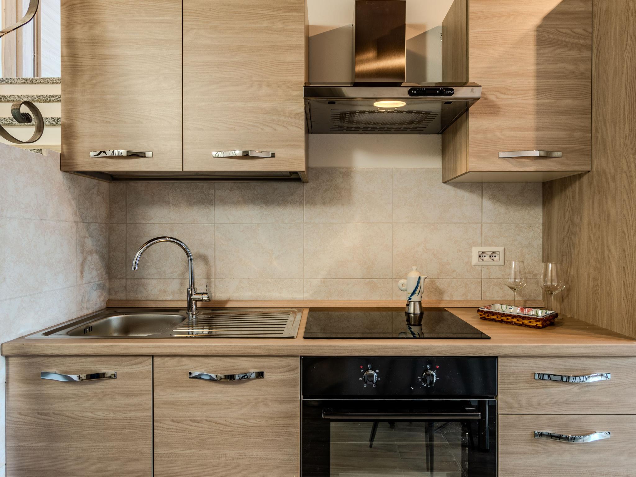"Apartment Vista Paradiso", 3-room apartment 70 m2 on 3rd floor. Fully renovated in 2024, comfortable and beautiful furnishings: open living/dining room with panoramic window with dining table and TV (flat screen), air conditioning. 1 double bedroom with TV (flat screen), air conditioning. Open kitchen (oven, dishwasher, 4 induction hot plates, toaster, kettle, freezer, electric coffee machine). Shower/bidet/WC. Air-conditioning, forced-air heating. Heating available only from 15.10. to 15.04. Upper floor: 1 room with sloping ceilings with 2 beds and TV (flat screen), air conditioning. Natural stone floors. Marvellous panoramic view of the lake, the mountains and the resort. Facilities: washing machine, hair dryer. Internet (WiFi, free). Parking (roofed, 1 car). Please note: non-smokers only. No lift. IT013252C2JQVBC2B2