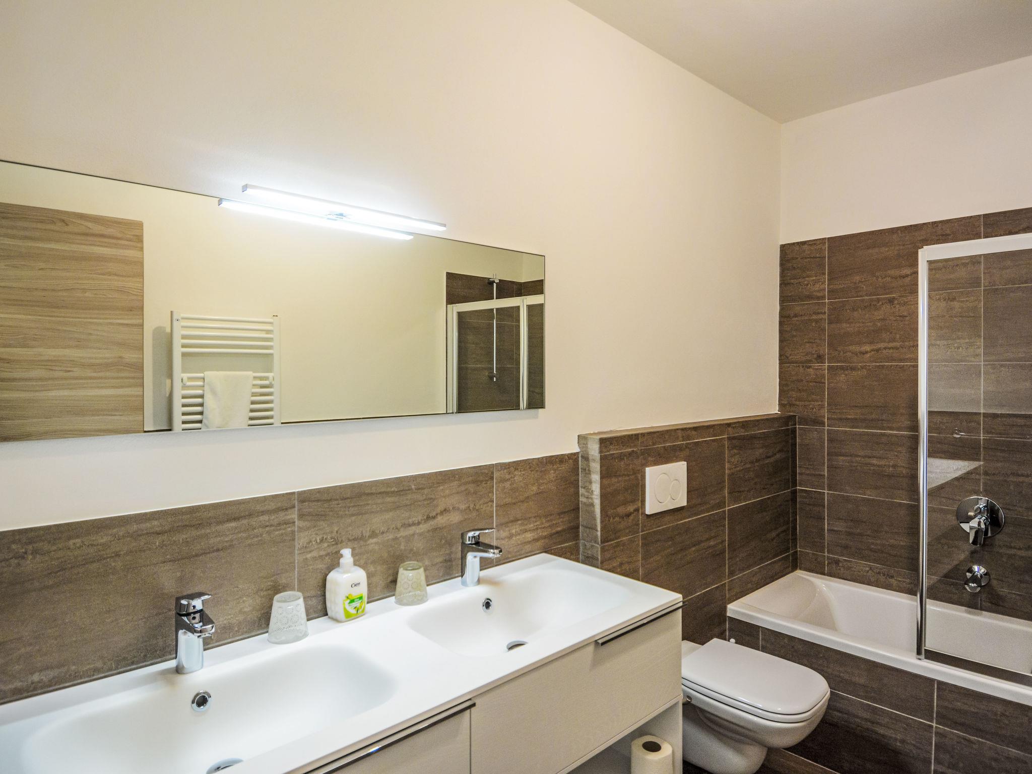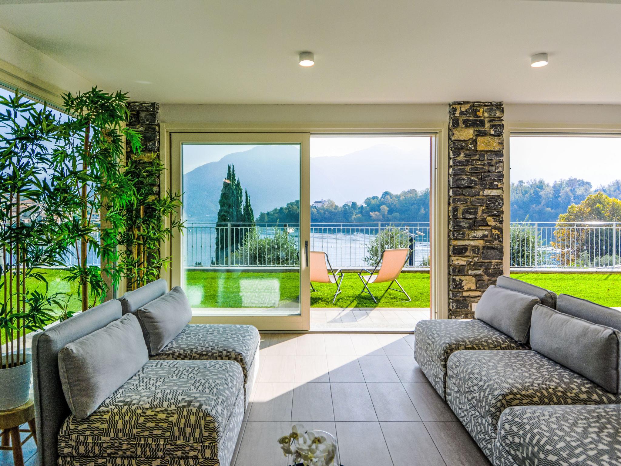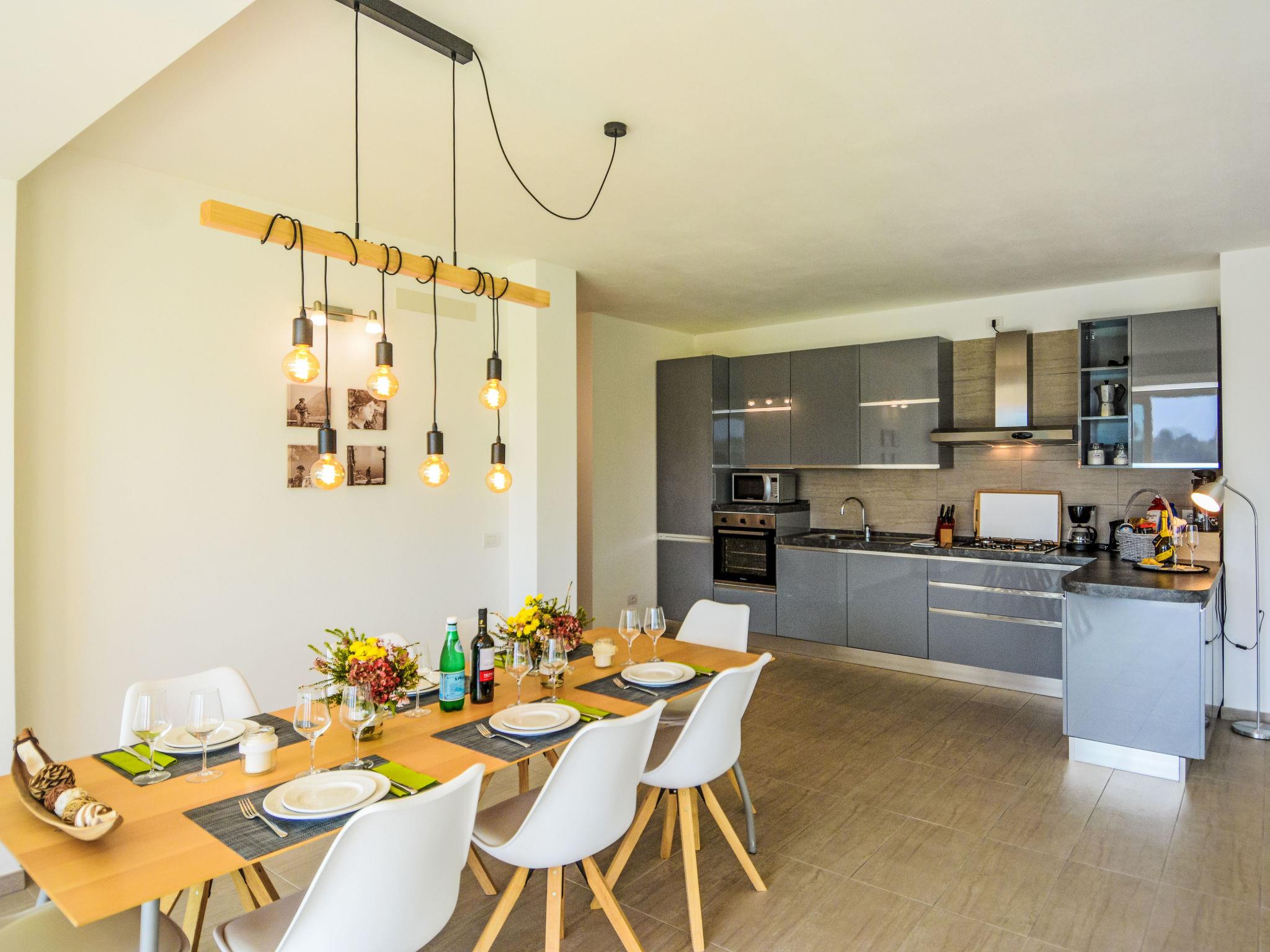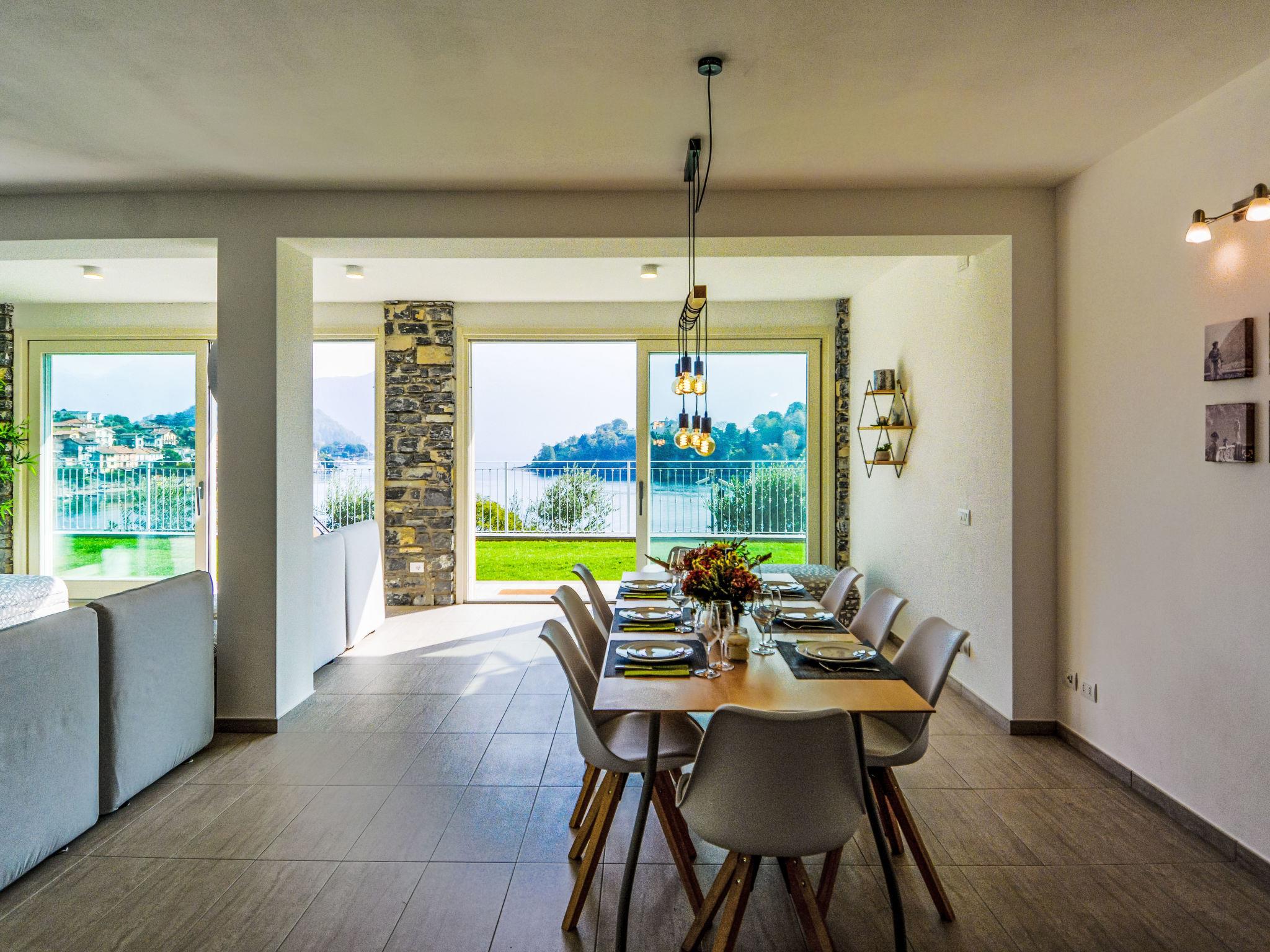 "The View 1", 5-room apartment 200 m2, on the ground floor. Modern and stylish furnishings: living/dining room with dining table and TV. 1 room with 1 double bed and bath/WC. 1 room with 1 double bed and shower/WC. 1 room with shower/WC. 1 room with 2 beds. Open kitchen (oven, dishwasher, Gas stove, toaster, kettle, microwave, freezer, electric coffee machine). Shower/WC. Electric heating, gas heating, air-conditioning, floor heating. Solar power. Terrace 20 m2, roofed. Terrace furniture. Panoramic view of the lake and the mountains. Facilities: washing machine, dryer, safe, iron, children's high chair, baby cot. Internet (WiFi, free). Please note: non-smokers only. Fire extinguisher. IT013252B4UPUUCA8X