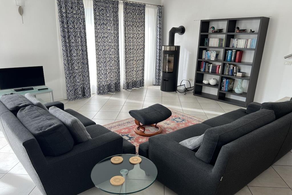 Huset ligger for enden af en blind vej, der er tilgængelig via en olivenlund, i en førsteklasses beliggenhed med udsigt over Gardasøen. Der er parkering i den underjordiske garage med automatisk rulleport. Cykler kan også opbevares sikkert. En rummelig terrasse med markise og havemøbler står til din rådighed. Vi er kun 3 km fra Limone med dens restauranter ved søen og travle menneskemængder, men alligevel en verden væk i fred og ro i uspoleret natur med en fantastisk udsigt over søen og bjergene. Der er hotelpools i nærheden (10 minutter væk). Vi udlejer privat, og huset er særligt velegnet til naturelskere som base for vandreture, klatring og cykelture. Huset ligger oven over Limone. Limone kan nås på cykel eller i bil på få minutter. Derfra kan du tage en båd til Riva eller Malcesine. Huset har 3 soveværelser, alle med fantastisk udsigt over søen, en stor stue med brændeovn, 2 badeværelser og et fuldt udstyret køkken med opvaskemaskine, Nespresso-maskine, brødbagemaskine, ismaskine og foodprocessor. Der er også vaskemaskine og tørretumbler.