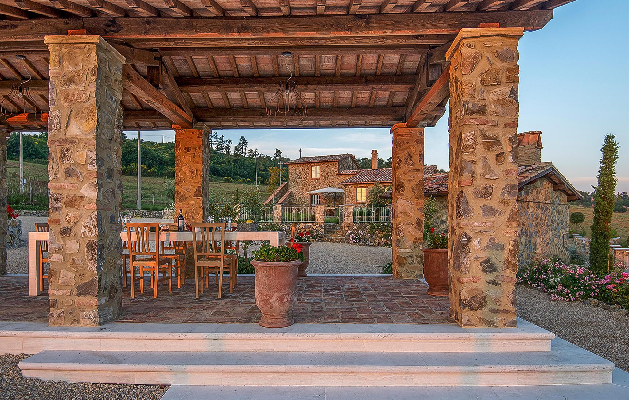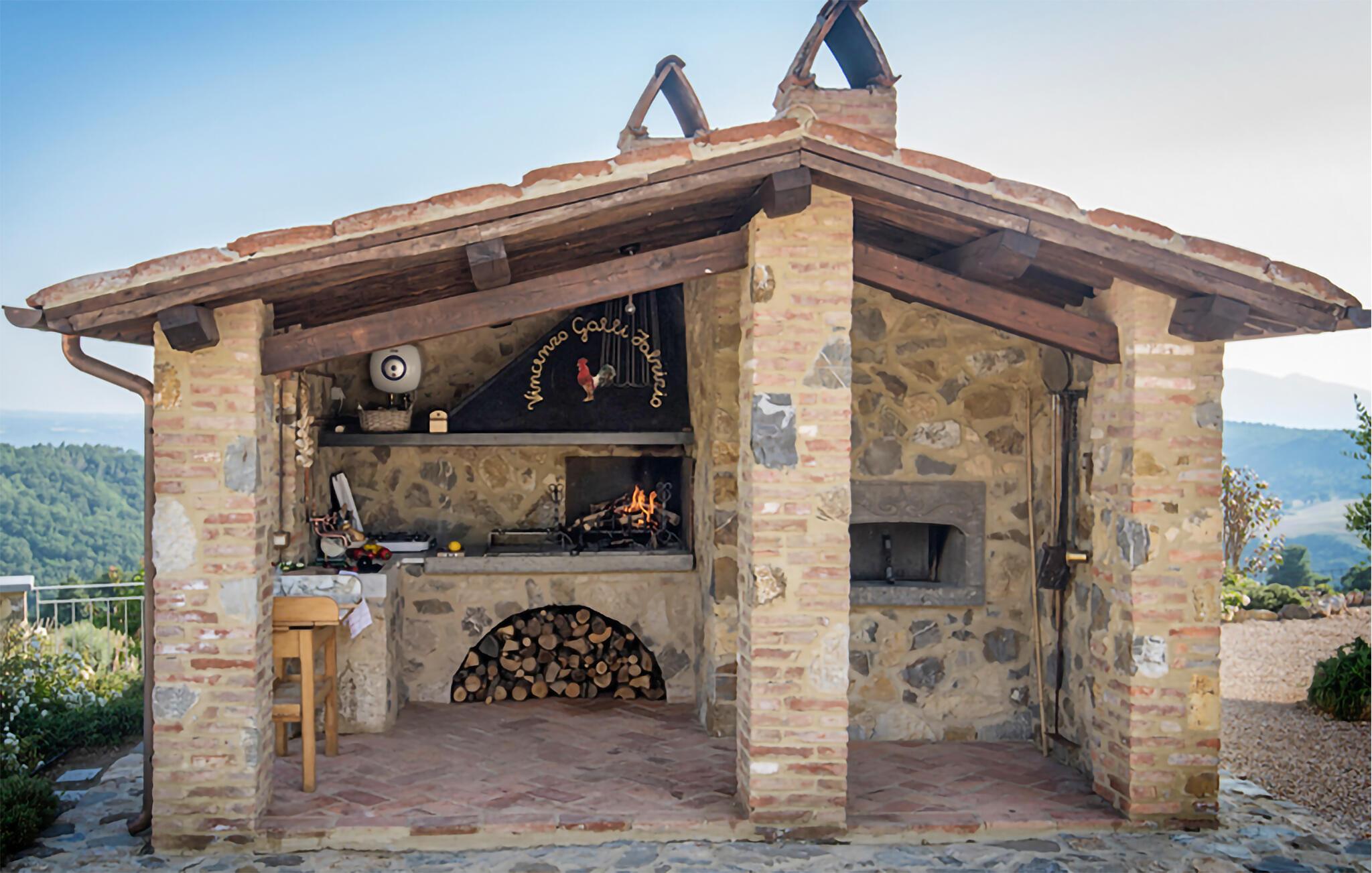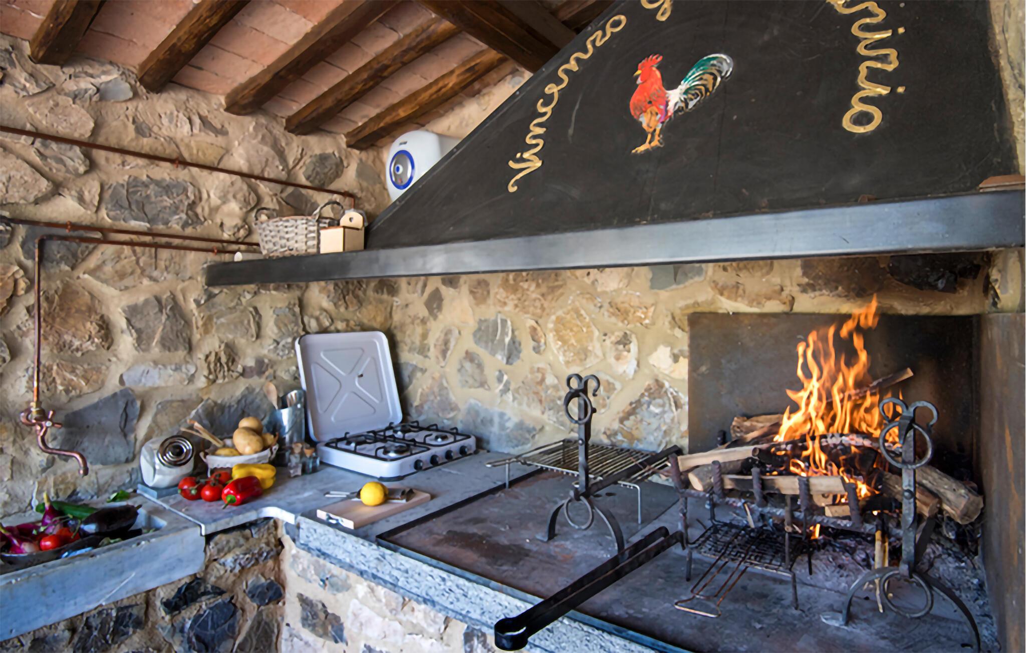 Fra det velholdte, rummelige udeareal kan I nyde en smuk udsigt over landskabet. Spis morgenmad udendørs, snup en frisk dukkert i poolen og brug sommerkøkkenet til at tilberede lækre retter på grillen.