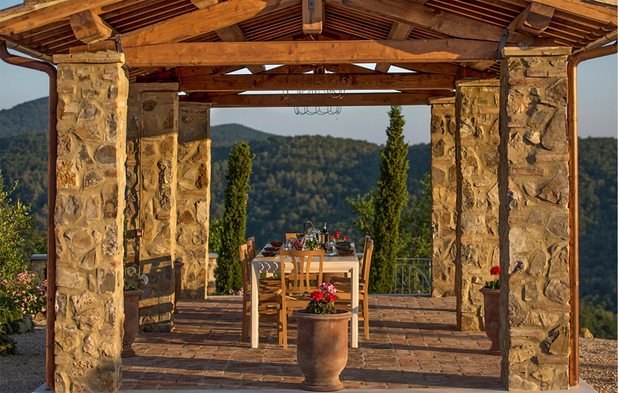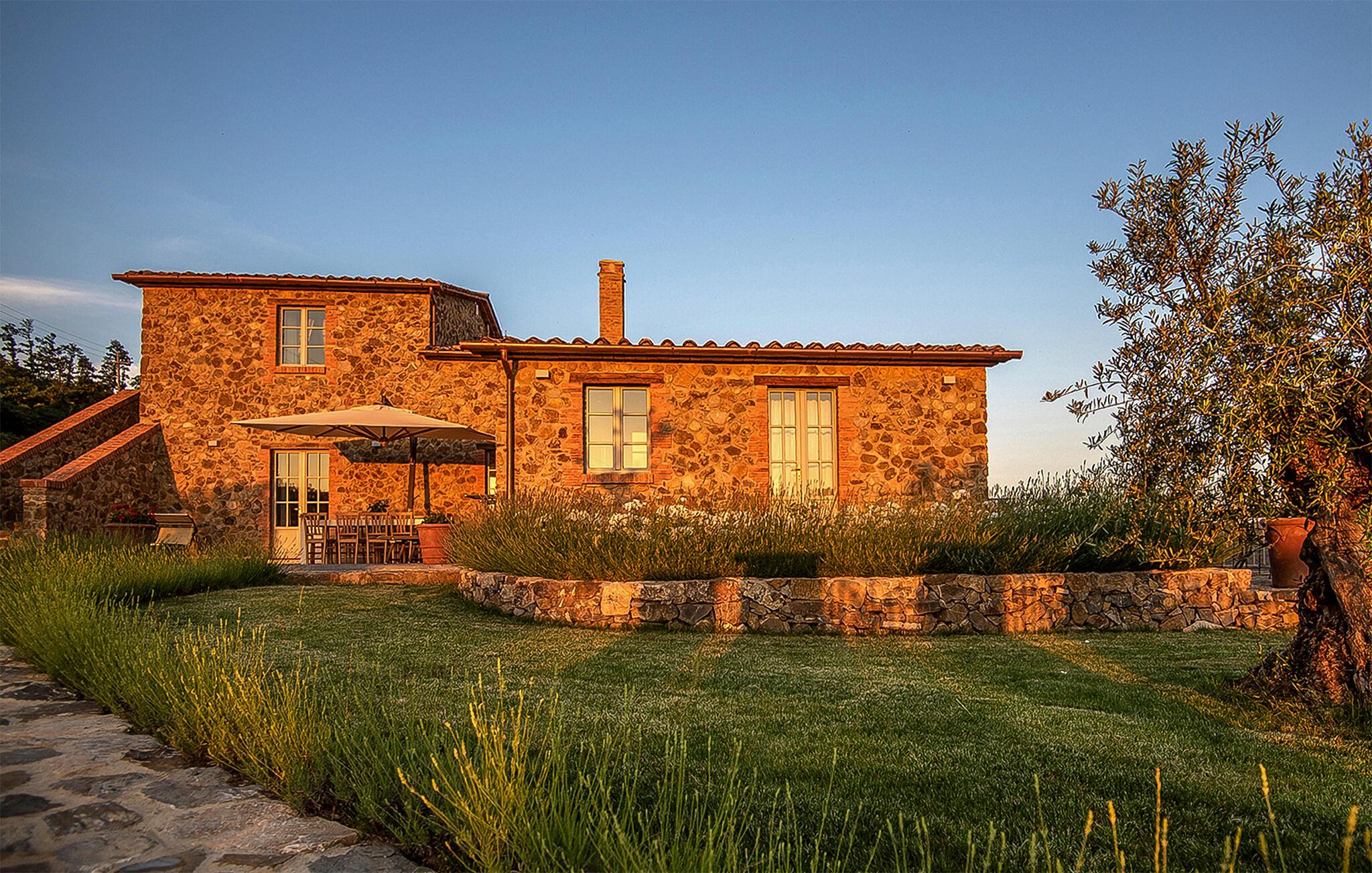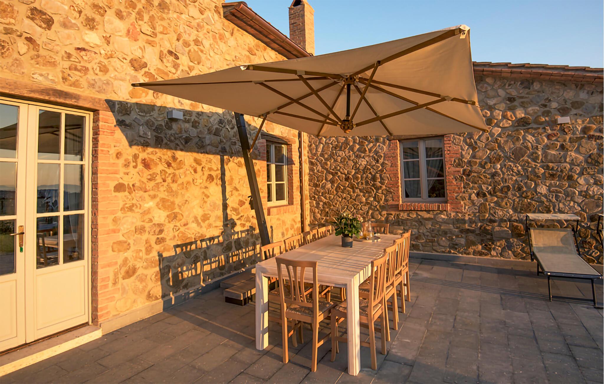Fra det velholdte, rummelige udeareal kan I nyde en smuk udsigt over landskabet. Spis morgenmad udendørs, snup en frisk dukkert i poolen og brug sommerkøkkenet til at tilberede lækre retter på grillen.
