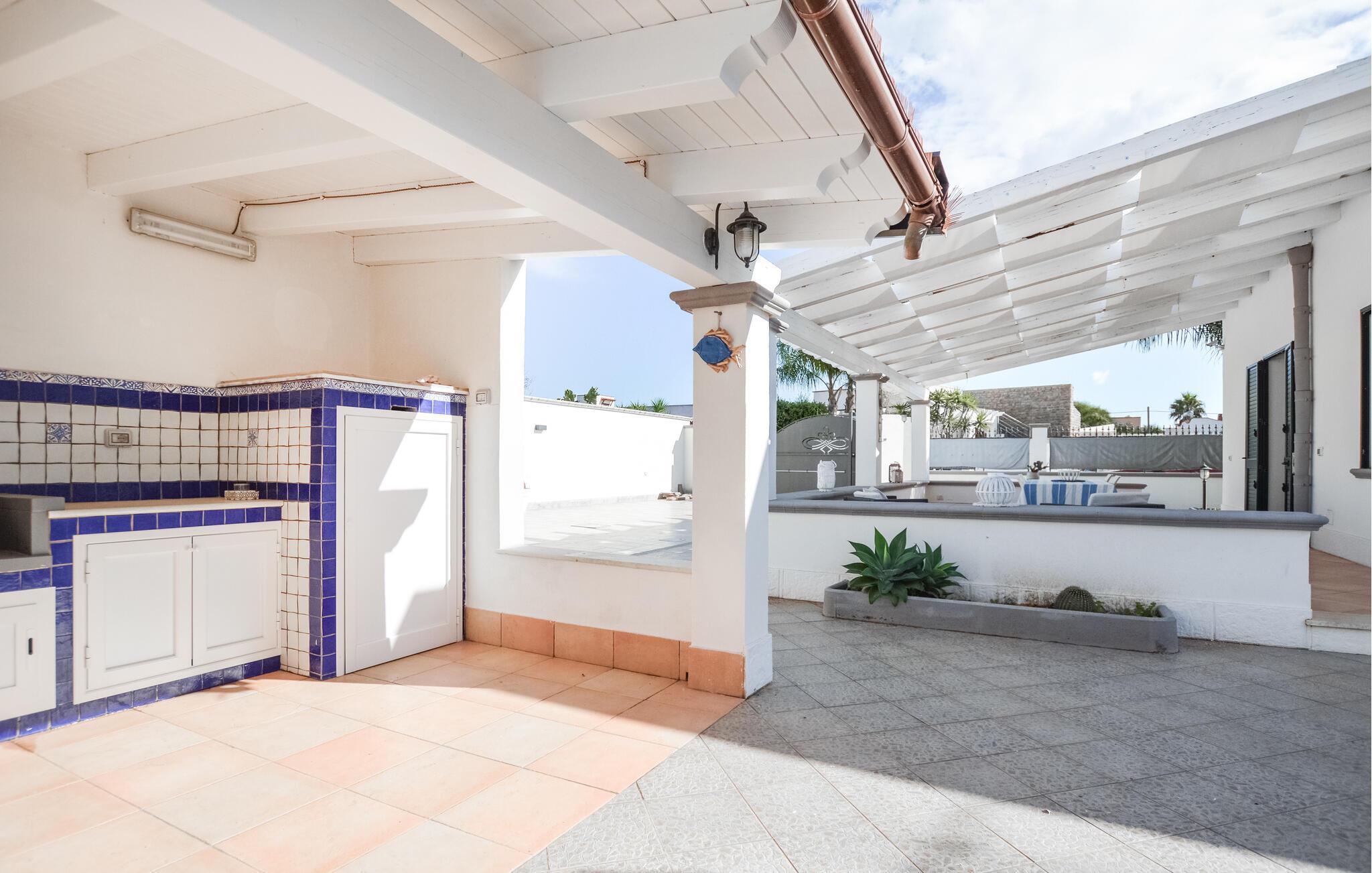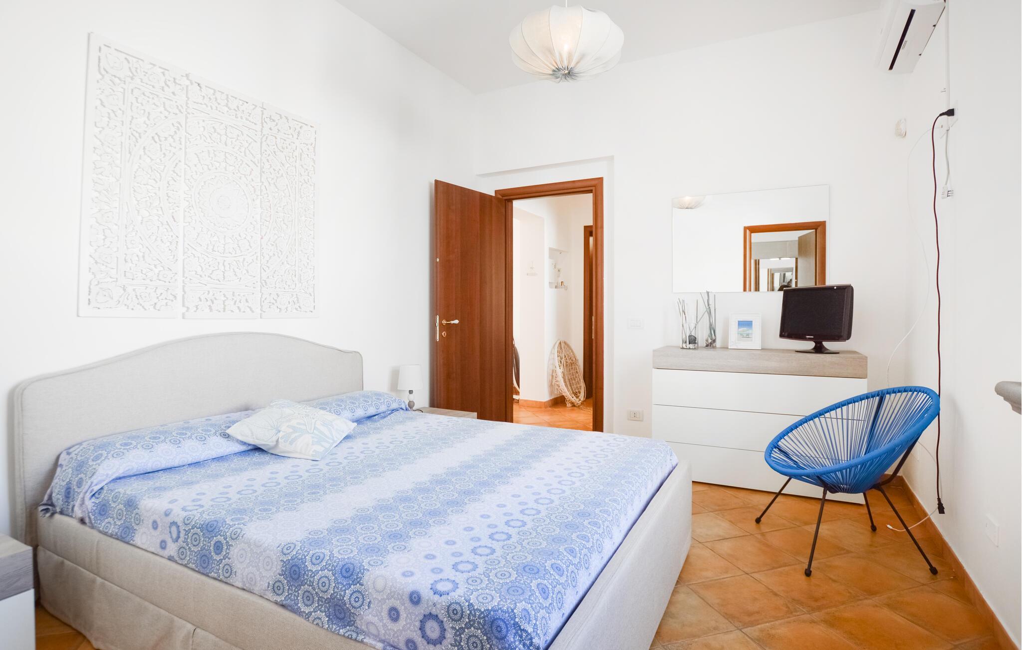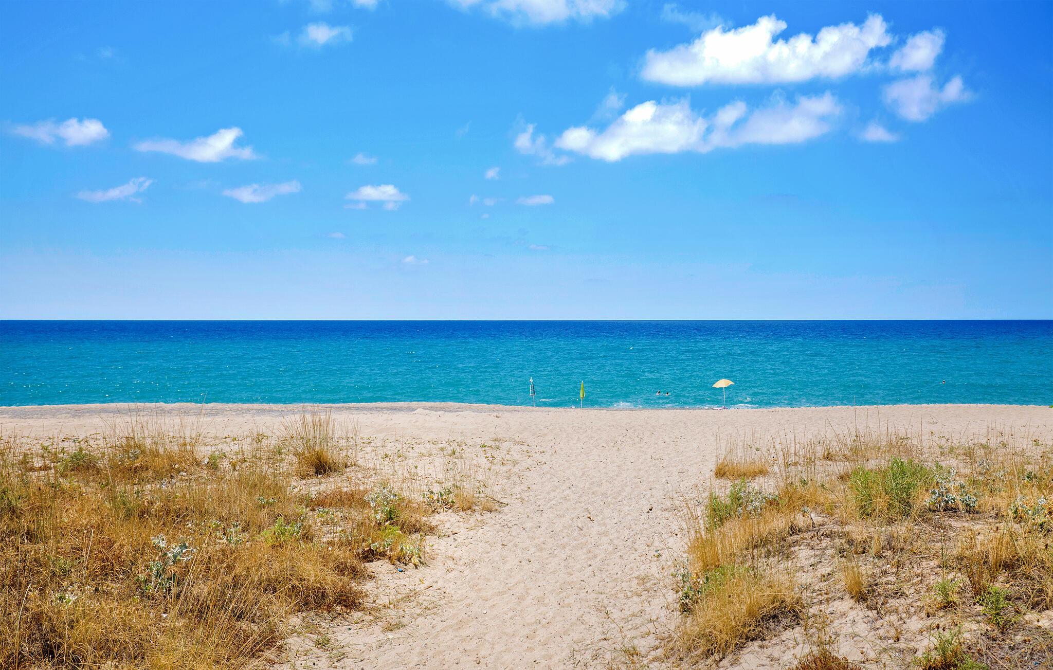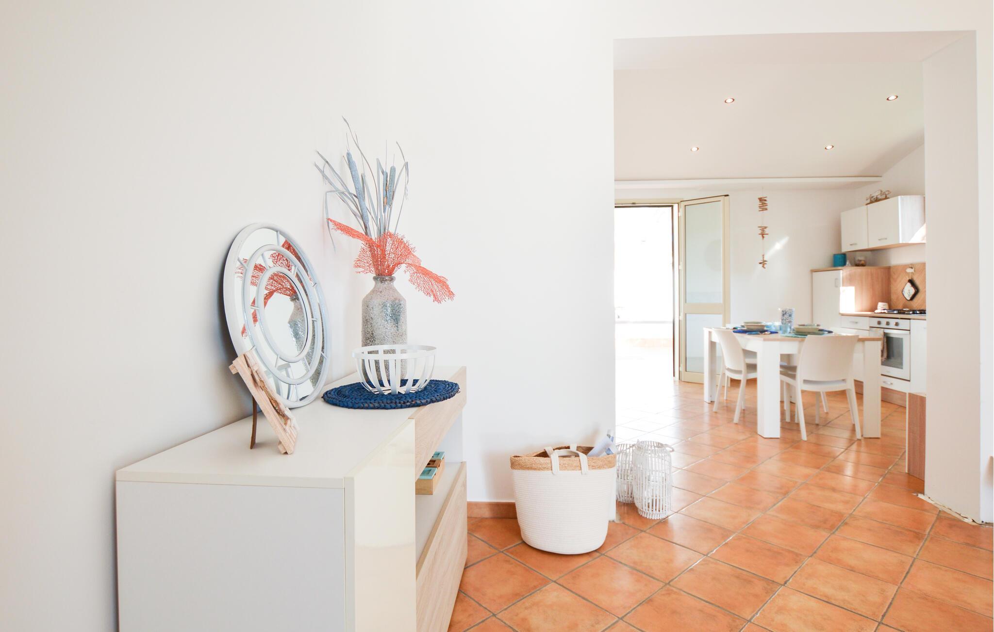 En middelhavs, lysfyldt atmosfære byder jer velkommen til dette indbydende feriehus ved kysten, hvor I kan tilbringe en afslappende ferie tæt på stranden. På varme dage kan I tage afslappende siestaer i de behageligt kølige lokaler og bruge det rummelige, fuldt udstyrede køkken til at fremtrylle kulinariske højdepunkter sammen.