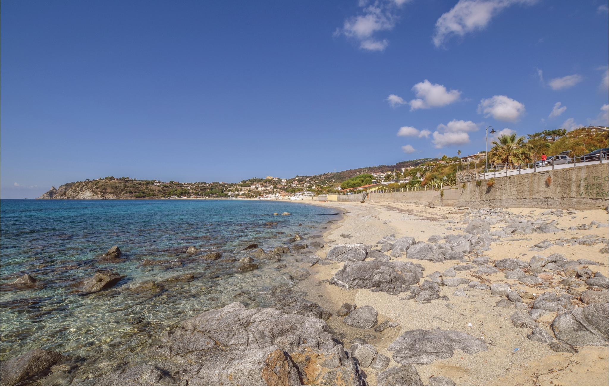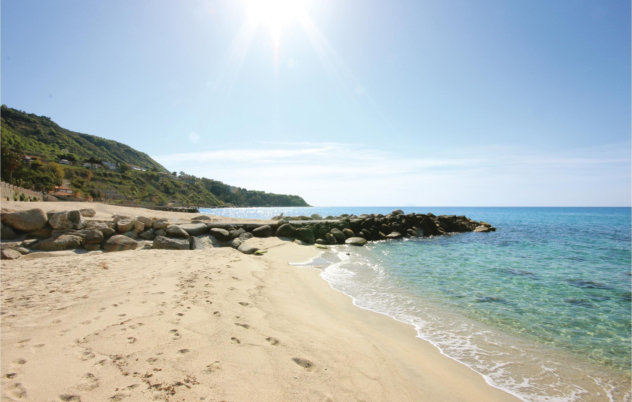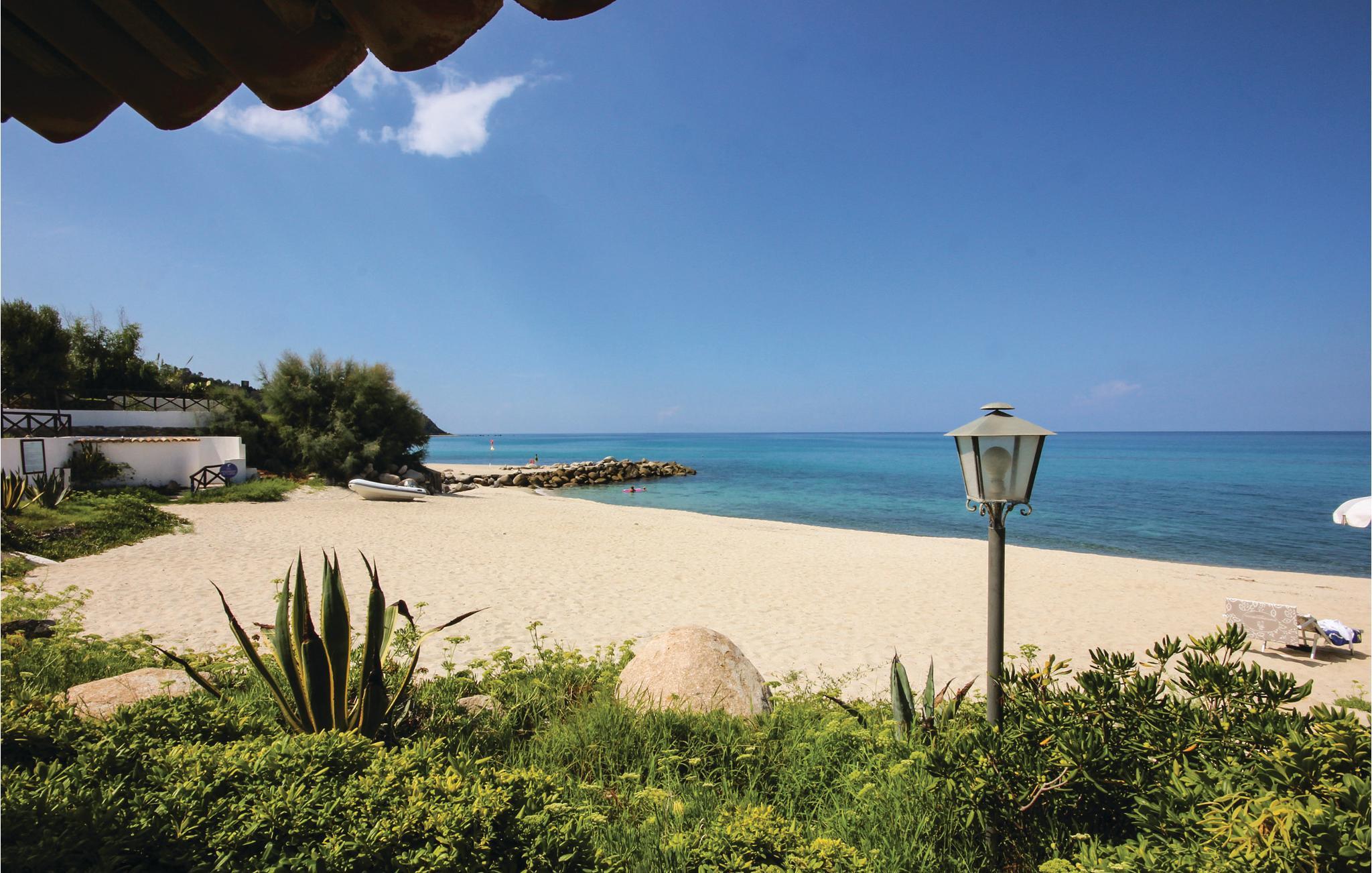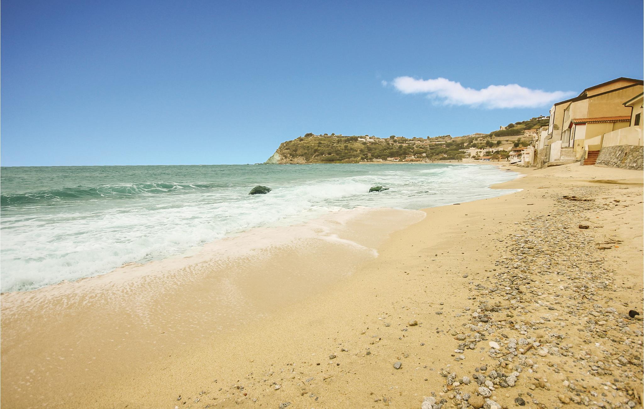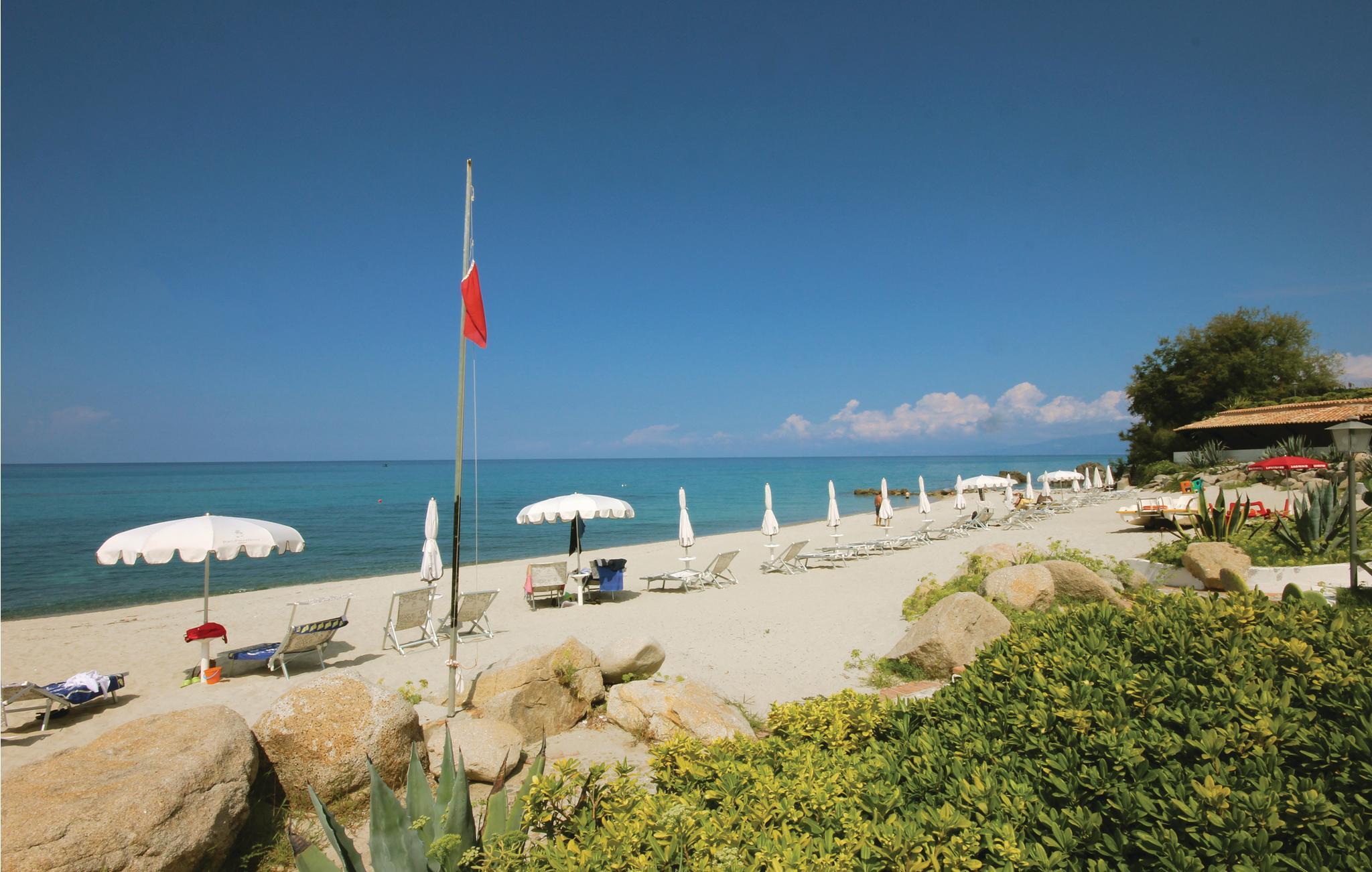 Feriehus i Parghelia, 3,5 km fra Tropea og 100 m fra havet. Huset ligger i et ferieområde med privat sandstrand, som egner sig godt til familier. Det lyse og indbydende hus består af tre soveværelser, to badeværelser, køkken og en stue. I har havudsigt fra den delvist overdækkede terrasse. I den kendte ferieby Tropea kan I svømme i det krystalklare vand, besøge valfartskirken Santa Maria dell'Isola eller smage den røgede pølse 'Nduja og andre delikatesser. Fra Tropea kan I sejle til de andre æoliske øer. Fra Leuchtturm i Capo Vaticano (15 km) kan man på skyfrie dage se til de fjerne øoliske øer. Capo Vaticano 15 km, Vibo Velentina 20 km.