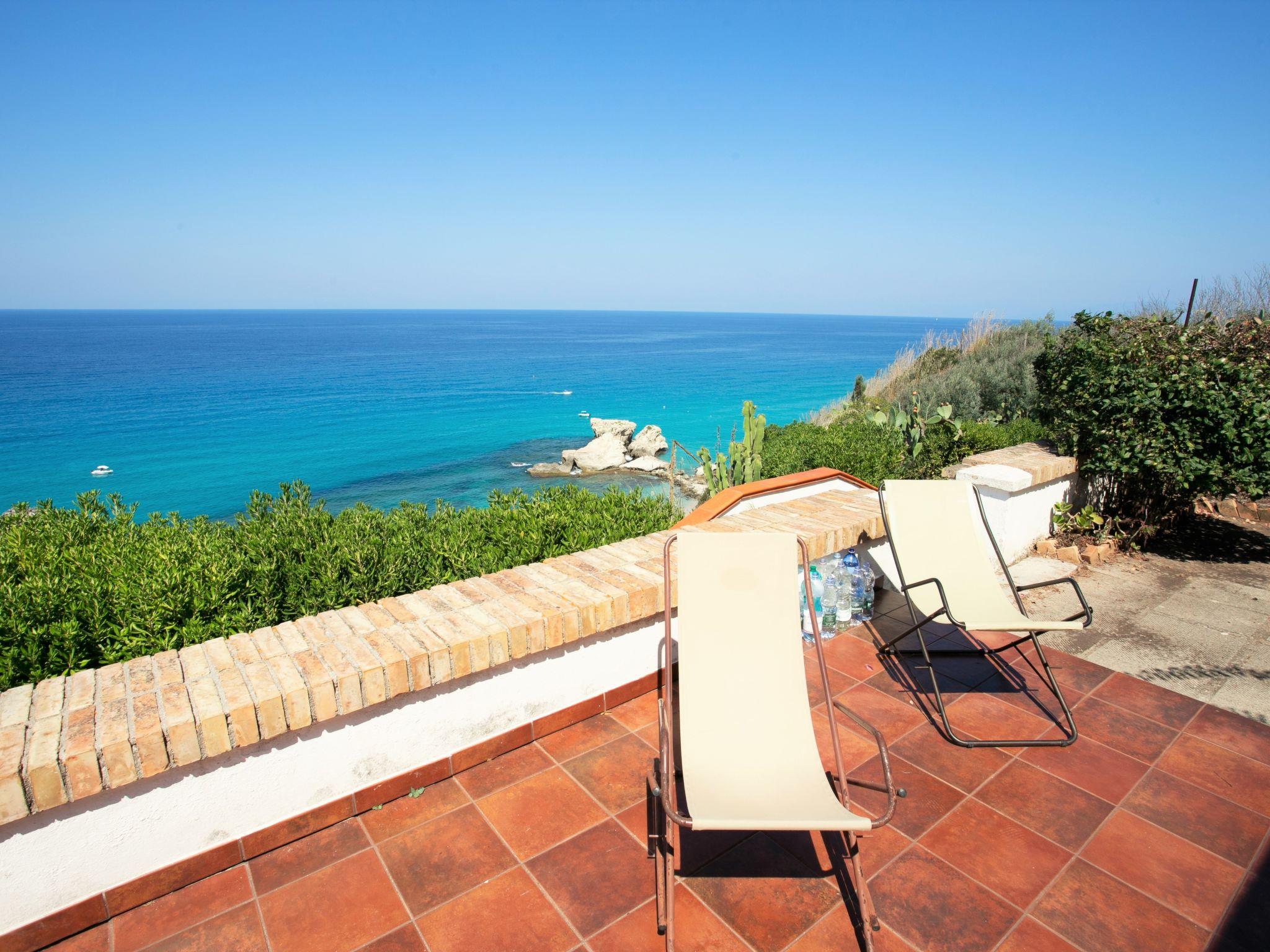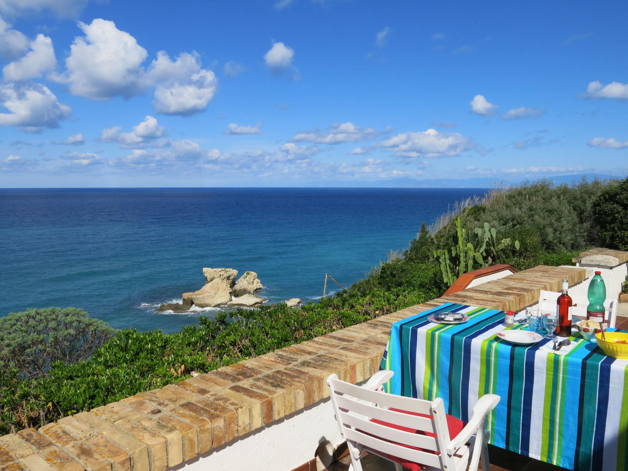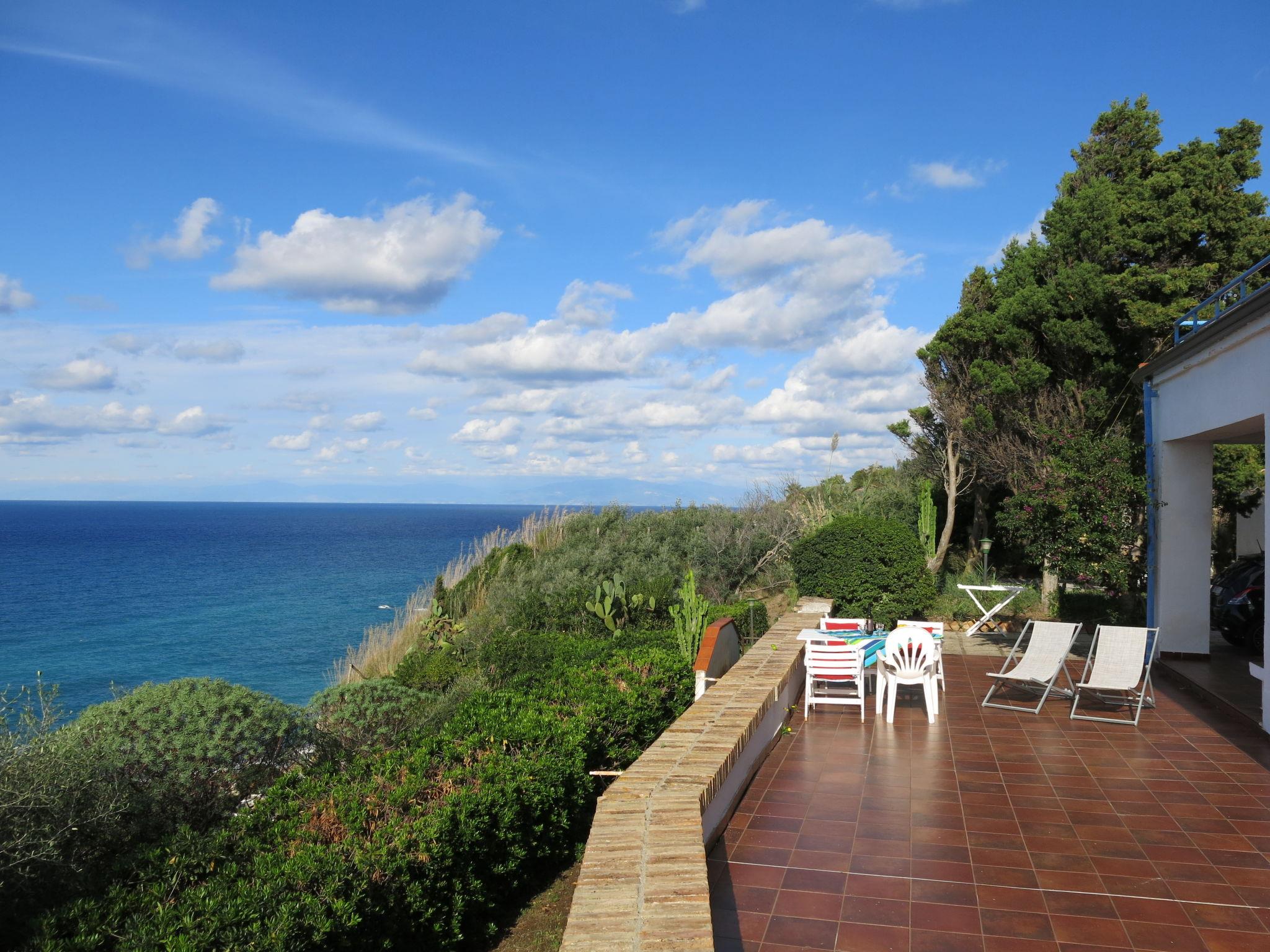 2-family house "Sulla Scogliera", 40 m a.s.l., surrounded by trees and fields. In the district of Riaci 2.5 km from the centre of Tropea, 10 km from the centre of Capo Vaticano, 30 km from the centre of Vibo Valenzia, in an elevated position on a slope, 700 m from the sea, direct access to the beach. For shared use: terraced garden, 3 ha with trees, natural garden, orchard. 100 m long motor access (via unmade road). Supermarket 2.5 km, restaurant, bar 700 m, bus stop 1 km, railway station "Ricadi" 1 km, ferry "Tropea - Isole Eoliche" 2.5 km, sandy beach 700 m. Please note: the owner lives on the same property. The owner lives in the same residence. Railway line 50 m from the property.
