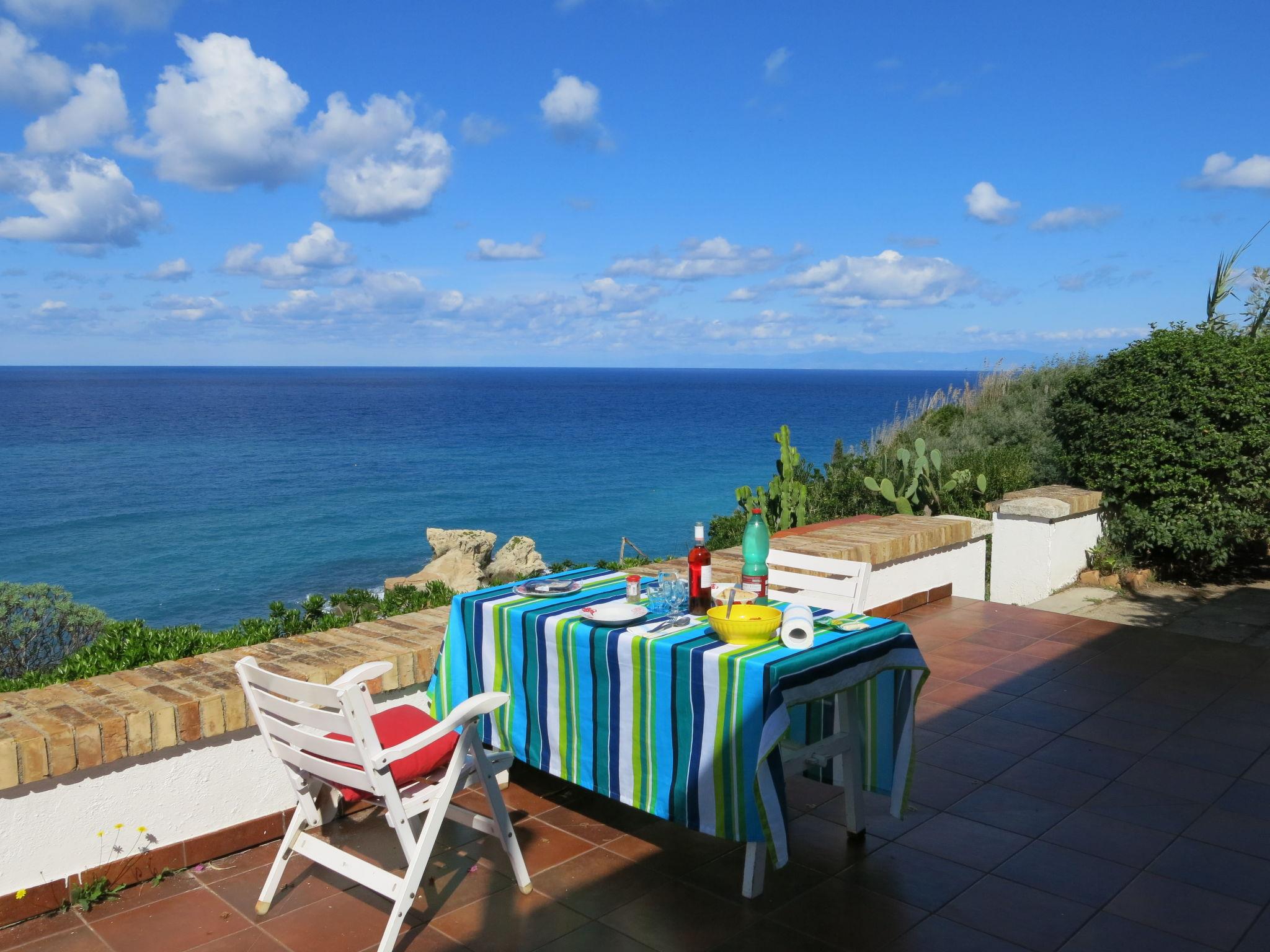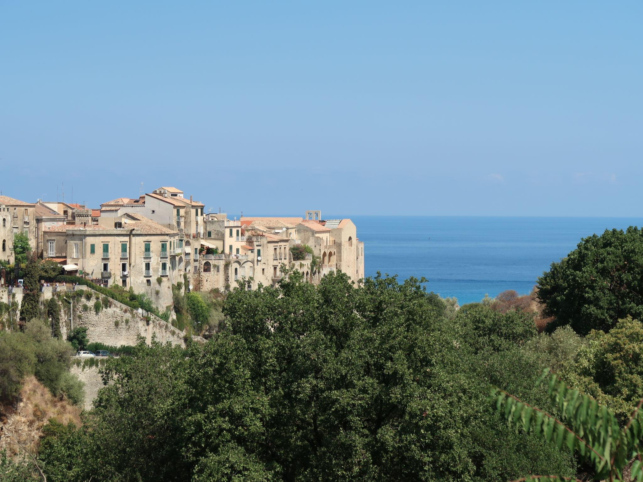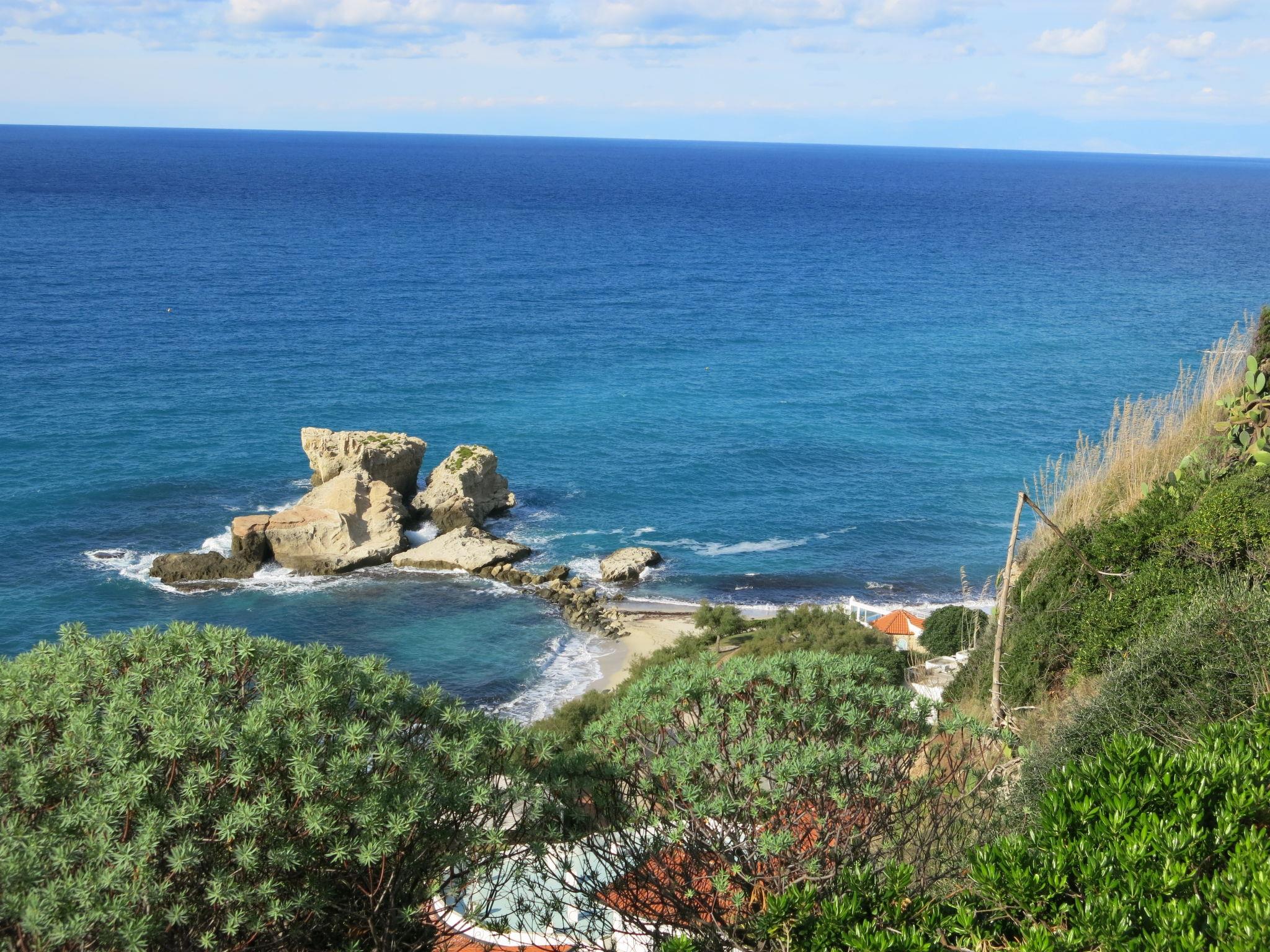2-family house "Sulla Scogliera", 40 m a.s.l., surrounded by trees and fields. In the district of Riaci 2.5 km from the centre of Tropea, 10 km from the centre of Capo Vaticano, 30 km from the centre of Vibo Valenzia, in an elevated position on a slope, 700 m from the sea, direct access to the beach. For shared use: terraced garden, 3 ha with trees, natural garden, orchard. 100 m long motor access (via unmade road). Supermarket 2.5 km, restaurant, bar 700 m, bus stop 1 km, railway station "Ricadi" 1 km, ferry "Tropea - Isole Eoliche" 2.5 km, sandy beach 700 m. Please note: the owner lives on the same property. The owner lives in the same residence. Railway line 50 m from the property.