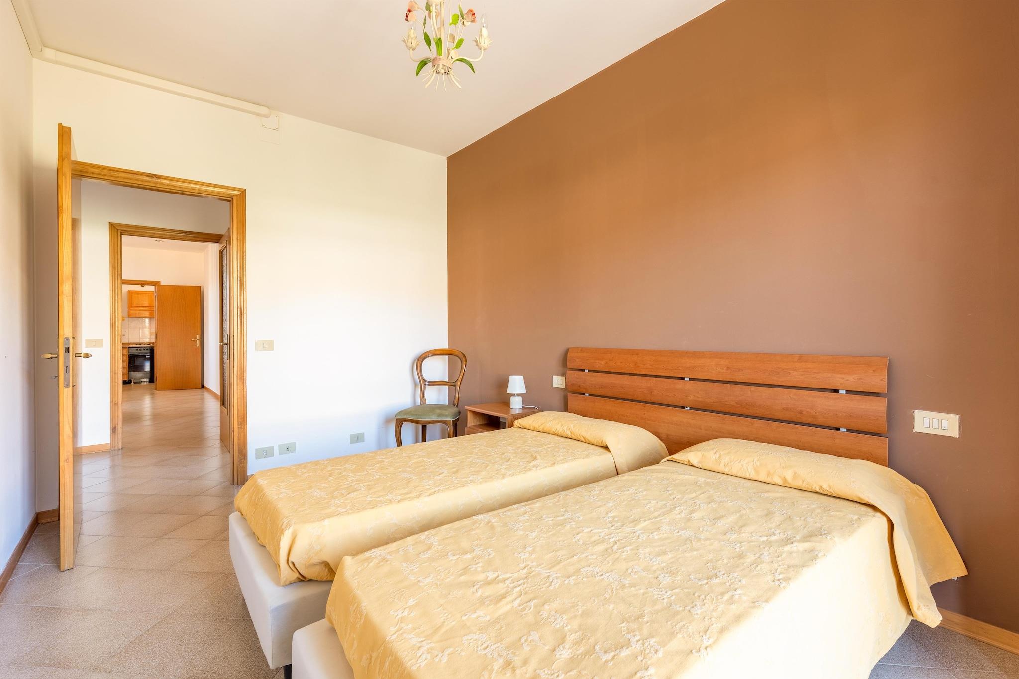 Beliggende i den charmerende by Tuoro sul Trasimeno tilbyder denne kæledyrsvenlige lejlighed et komfortabelt tilflugtssted for op til seks gæster. Første sal har en rummelig opholds- og spisestue med en dobbelt sovesofa, hvilket skaber et afslappende sted at slappe af. Et fuldt udstyret køkken - inklusive kogeplader, kaffemaskine, ovn og køleskab med fryser, giver alt det nødvendige for nem tilberedning af måltider. To hyggelige soveværelser - et med en dobbeltseng og et andet med en fleksibel opsætning af enten en dobbeltseng eller to enkeltsenge, sikrer afslappende nætter. Det moderne badeværelse, komplet med bruser, håndvask, toilet og bidet, tilføjer bekvemmelighed, mens et separat vaskerum med vaskefaciliteter gør lange ophold problemfrie. Træd udenfor på den private terrasse, perfekt til at nyde frisk luft og naturskønne omgivelser. Den fælles have, der er møbleret med udendørs siddepladser, inviterer gæsterne til at nyde solen, mens swimmingpoolen (åben maj til september) tilbyder en forfriskende flugt. Til fitness og underholdning inkluderer lejligheden et legerum og fitnessrum, ideelt til at forblive aktiv. Lago Trasimeno ligger blot 1 km derfra og byder på sandstrande og en betagende udsigt over søen, hvor gæsterne kan nyde svømning, sejlads og spise ved vandet. For eventyrelskere er der cykeludlejning til rådighed 300 meter derfra, og der ligger et ridecenter kun 800 meter fra ejendommen. Tennisentusiaster kan gøre brug af nærliggende baner kun 100 meter væk. Lokale retter er kun en kort gåtur væk, med restauranter kun 300 meter fra lejligheden, der serverer autentiske toscanske retter. Gæsterne kan også udforske den rige kulturelle arv fra nærliggende destinationer som Siena, Assisi, Cortona og Arezzo, hver inden for en times kørsel. Uanset om man nyder udsøgte italienske retter, begiver sig ud på udendørs eventyr eller slapper af ved poolen, er denne lejlighed den perfekte blanding af fritid og opdagelse.