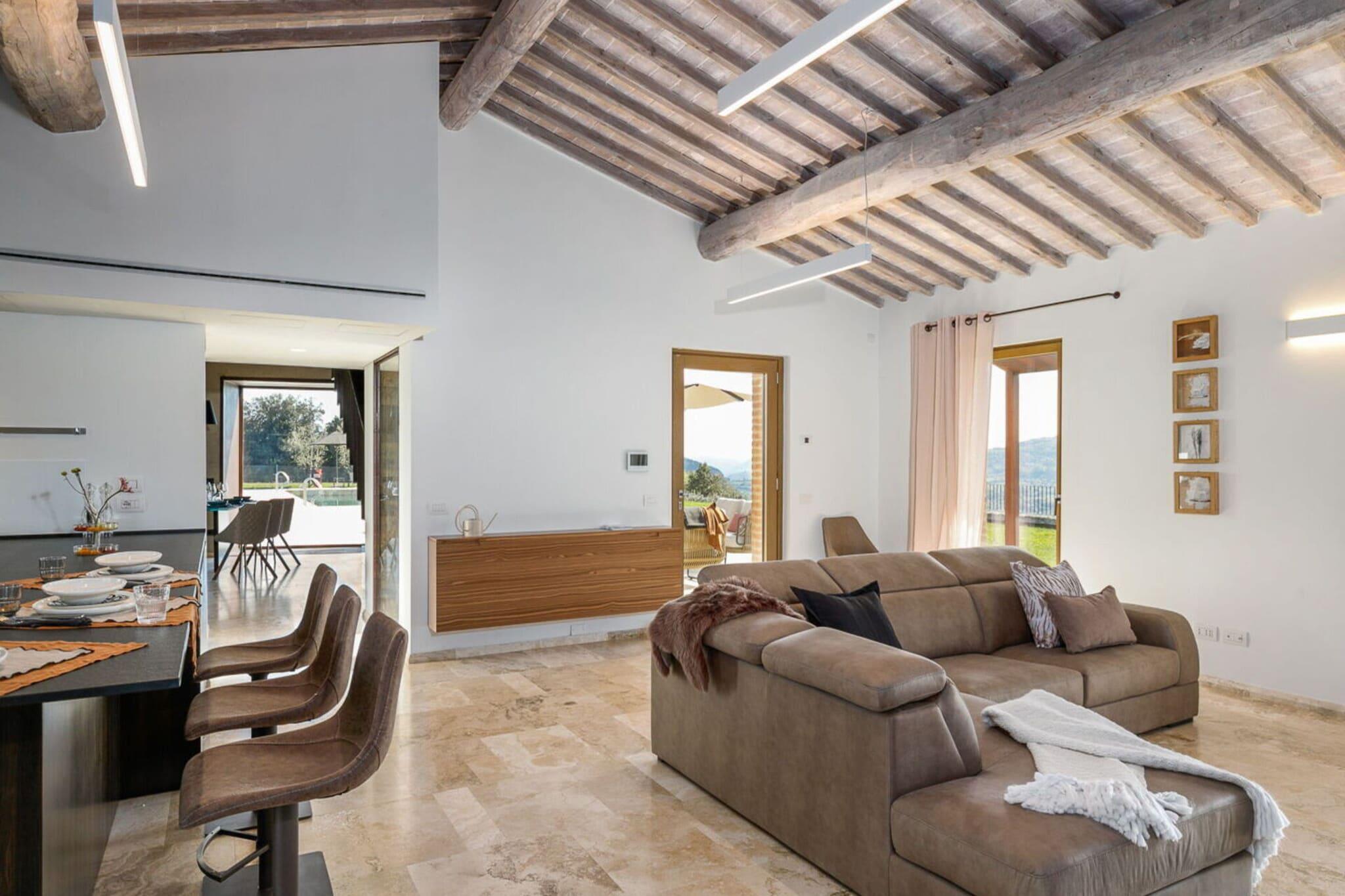Beliggende i hjertet af det toscanske landskab tilbyder denne elegante villa i Ulignano (Volterra) et fredfyldt tilflugtssted for op til 6 gæster. Ejendommen er omgivet af bølgende bakker og vinmarker og blander moderne komfort med rustik charme, med en privat swimmingpool, have med liggestole, et grillområde og rigelig udendørs siddepladser. Indenfor indeholder stueetagen en rummelig stue/spisestue med satellit-tv, en hyggelig pejs, aircondition og et fuldt udstyret åbent køkken med induktionskomfur, espressomaskine, opvaskemaskine, ovn, mikroovn og alt det nødvendige til hjemmelavet mad. To dobbeltværelser med en-suite badeværelser (et med bruser, det andet med bidet og hårtørrer) giver komfort og privatliv. Ovenpå fuldender et tredje soveværelse med dobbeltseng og et ekstra komplet badeværelse layoutet. En vaskemaskine, høj stol, strygejern og alarmsystem er også til rådighed for din bekvemmelighed. Beliggende kun 14 km fra Volterra og tæt på ikoniske byer som San Gimignano (18 km) og Siena (60 km), tilbyder villaen nem adgang til Toscanas bedste kulturelle og kulinariske oplevelser. Uanset om du slapper af ved poolen eller udforsker regionen, er denne villa en perfekt hjemmebase for en fredelig italiensk flugt.