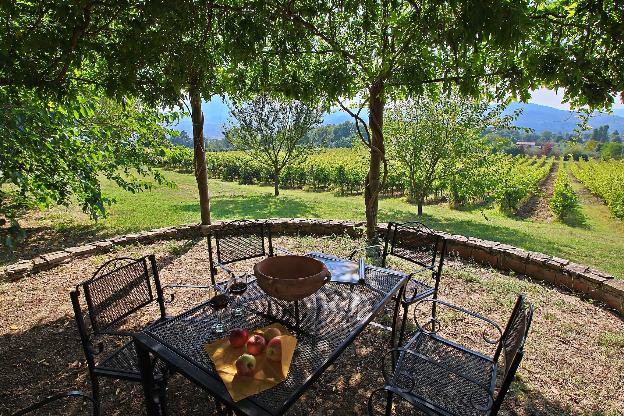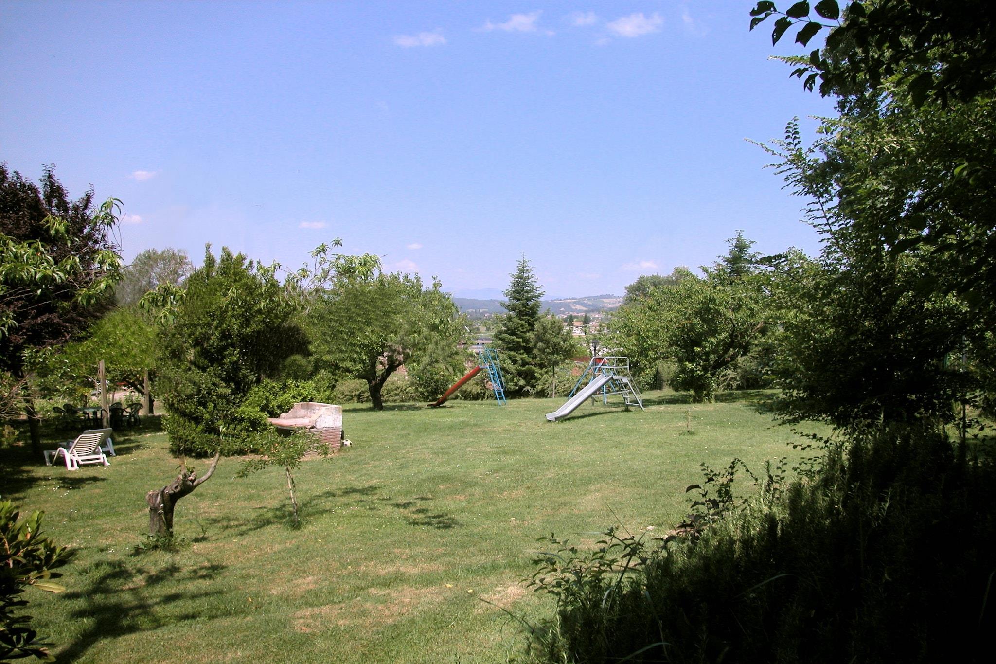 Denne charmerende bondegårdslejlighed i Umbertide tilbyder en fredelig flugt for op til fem gæster. Beliggende på 2. sal i en traditionel ejendom, den har terracottagulve, synlige bjælker, et rummeligt køkken og hyggelige soveværelser. Gæsterne har adgang til en panoramisk swimmingpool og en naturskøn udsigt over landskabet, perfekt til at slappe af med kæledyr eller deres kære. Kun 1 km væk kan du udforske Umbertides historiske centrum med butikker og markeder, eller spise på Locanda Appennino og Ristorante Calagrana for at få autentiske umbriske smagsoplevelser. Vinelskere kan nyde smagsprøver på ejendommens egen vingård, mens golfspillere vil sætte pris på den nærliggende Antognolla Golfklub. Besøg Perugia, Assisi eller Gubbio for at få kultur, og gå ikke glip af lokale perler som La Rocca, Museo Civico di Santa Croce og Centro di Equitazione Marana2. Spisemuligheder omfatter også C'era una volta, Osteria Del Boccajolo og Tipico Osteria dei Sensi i det nærliggende Montone5. Med naturstier, vinmarker og nem adgang til Toscana er dette bondehus en perfekt base for at udforske Umbriens skønhed og charme.